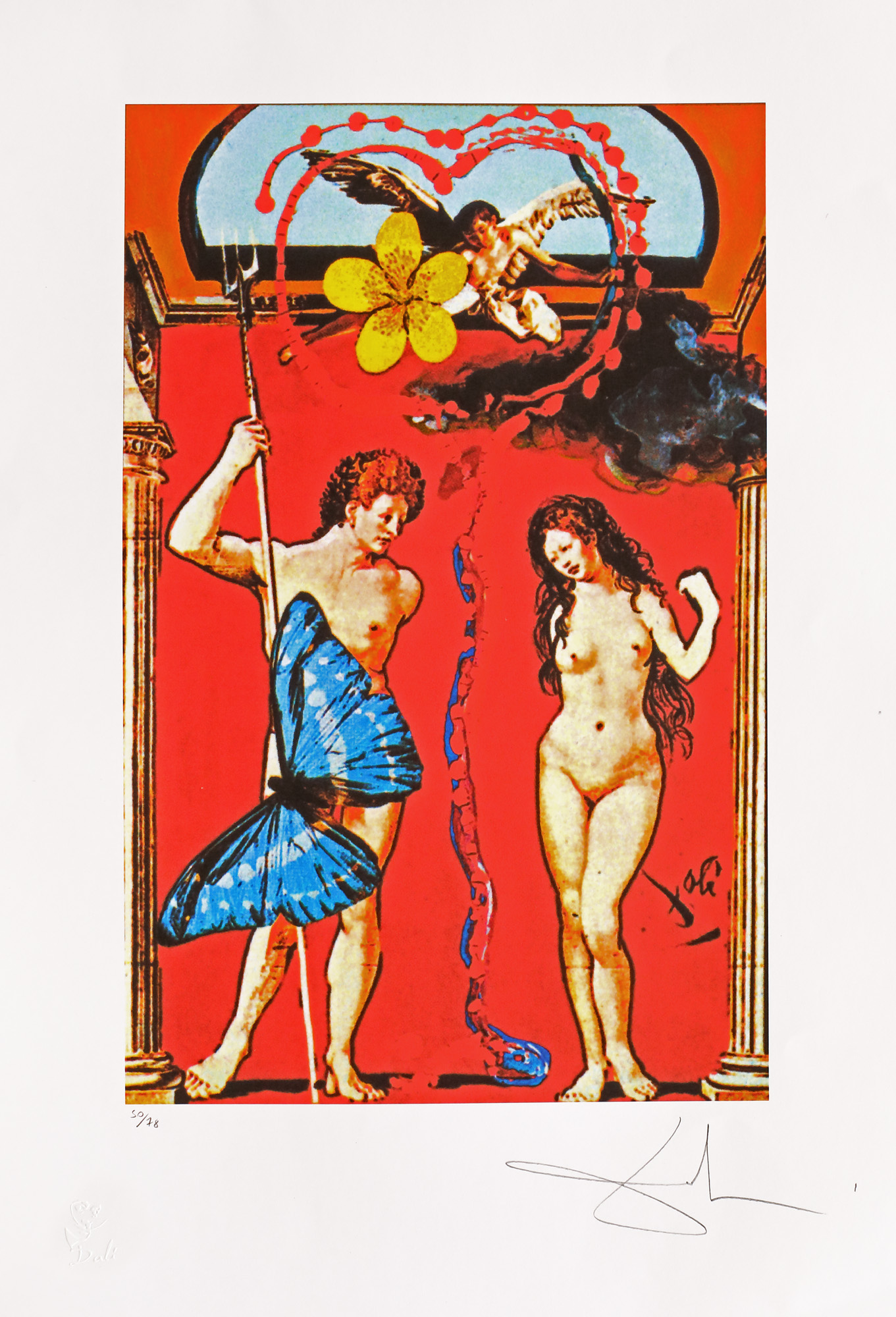 semnat dreapta jos, sub cadru, în creion, "Dali"; numerotat stânga jos, sub cadru, în creion, "50/78"; stânga jos, ștampila editurii, "G. Dali"