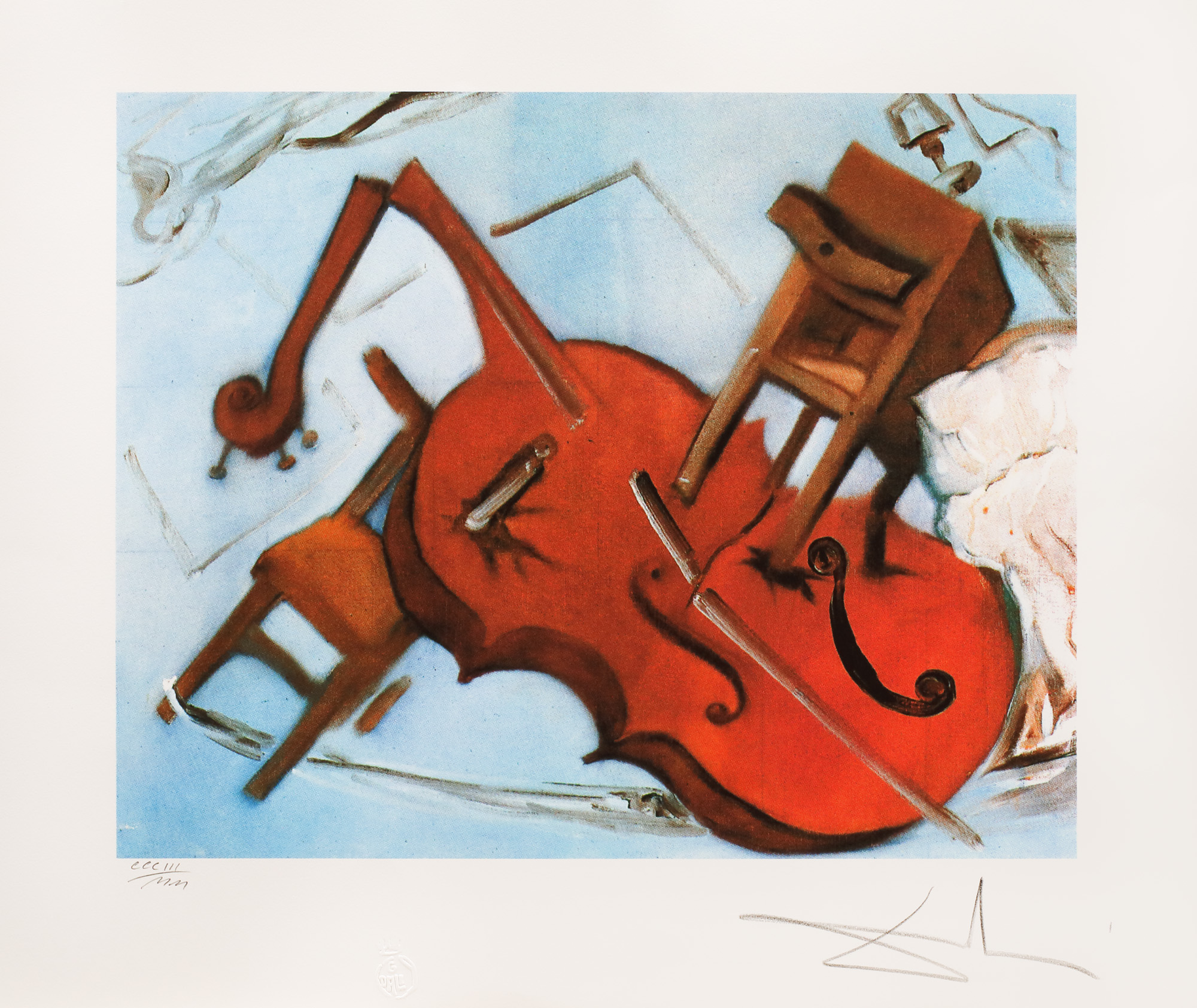 semnat dreapta jos, sub cadru, în creion, "Dali"; numerotat stânga jos, sub cadru, în creion, "CCCIII/MM"; stânga jos, ștampila editurii, "G. Dali"
