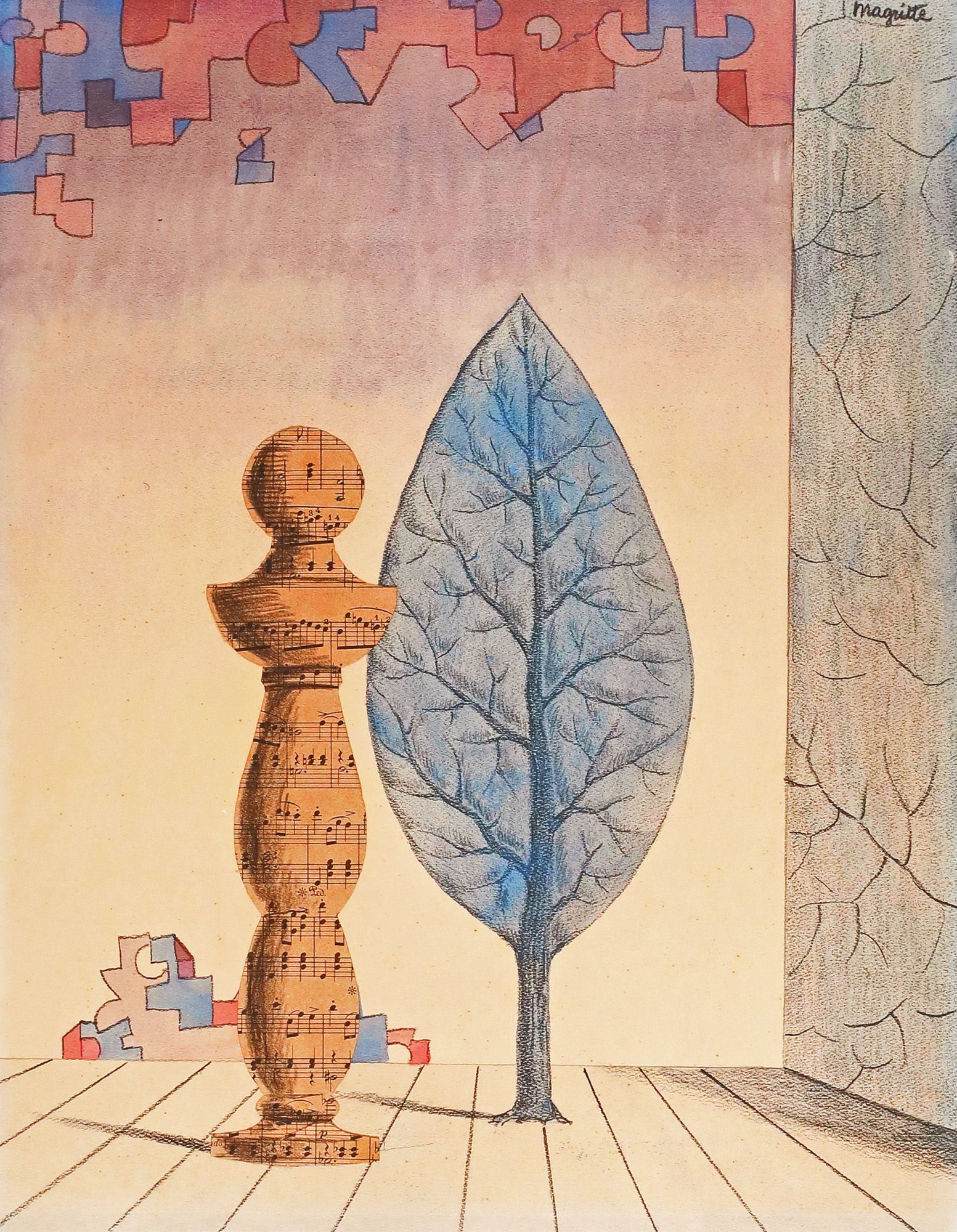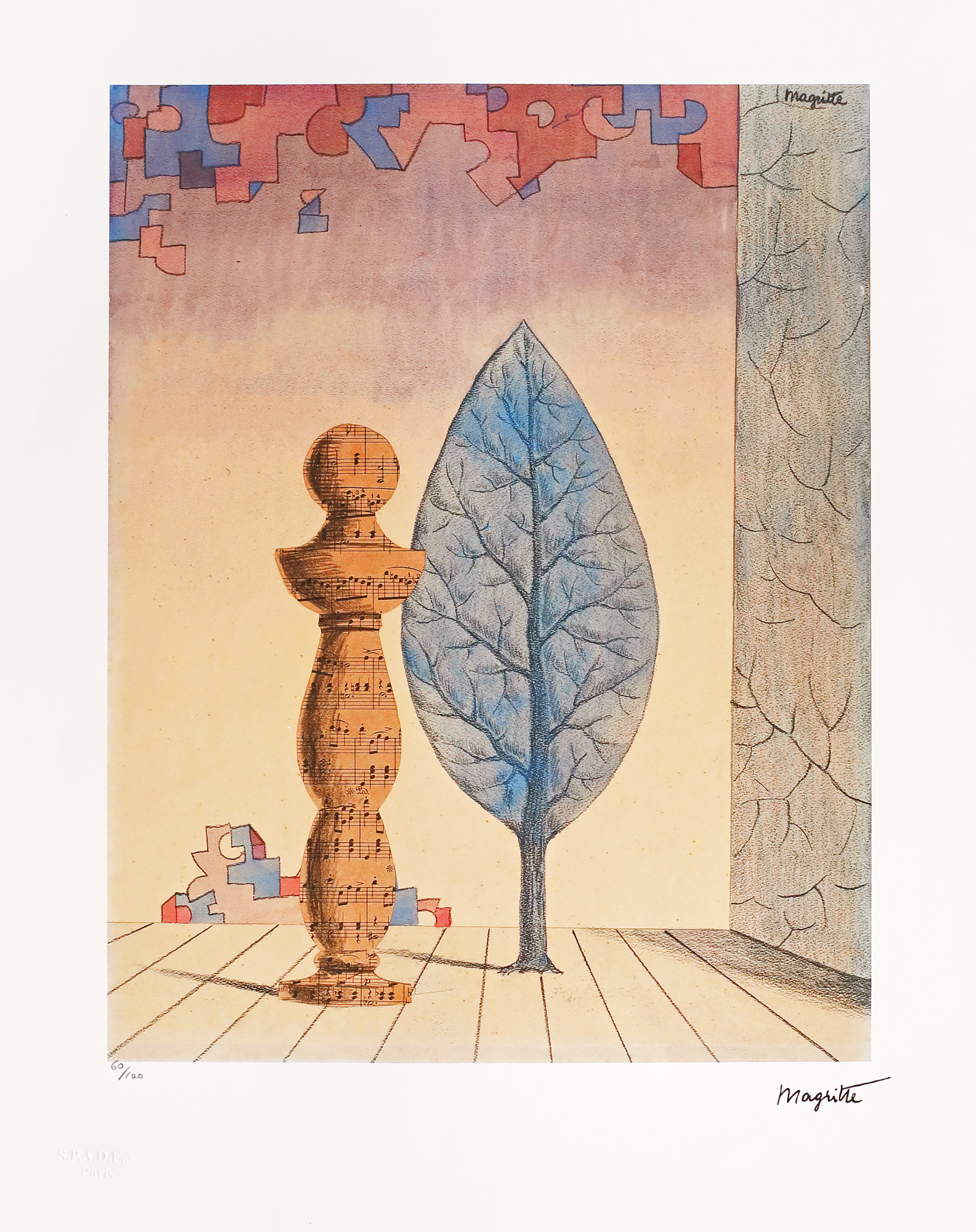 semnat dreapta sus și dreapta jos, sub cadru, "Magritte"; numerotat stânga jos, sub cadru, în creion, "60/100"; stânga jos, ștampila editurii, "SPADEM Paris"