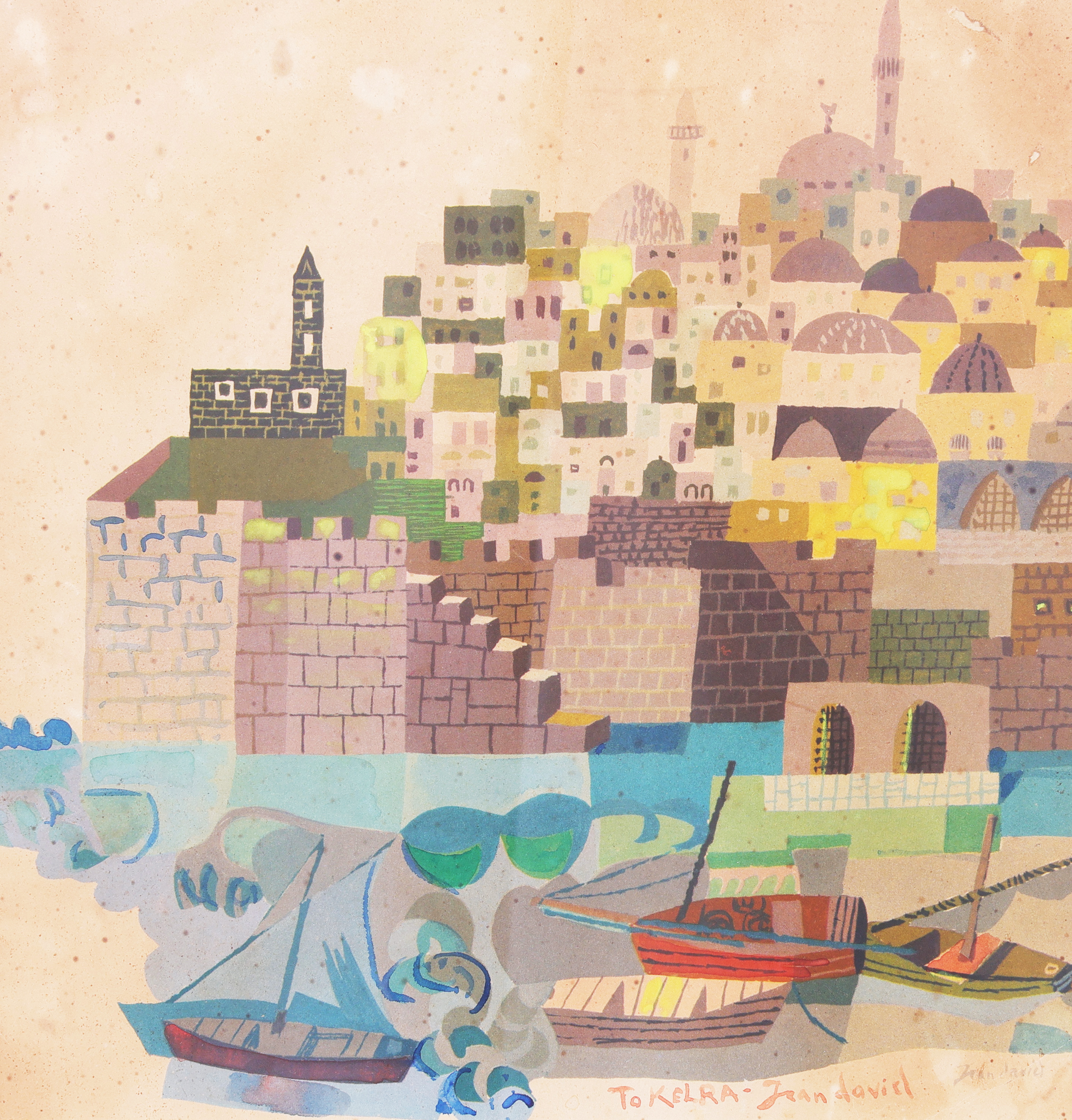 semnat dreapta jos, în placă, "Jean David"; semnat și dedicat dreapta jos, cu roșu, "Jean David, To Kelra"