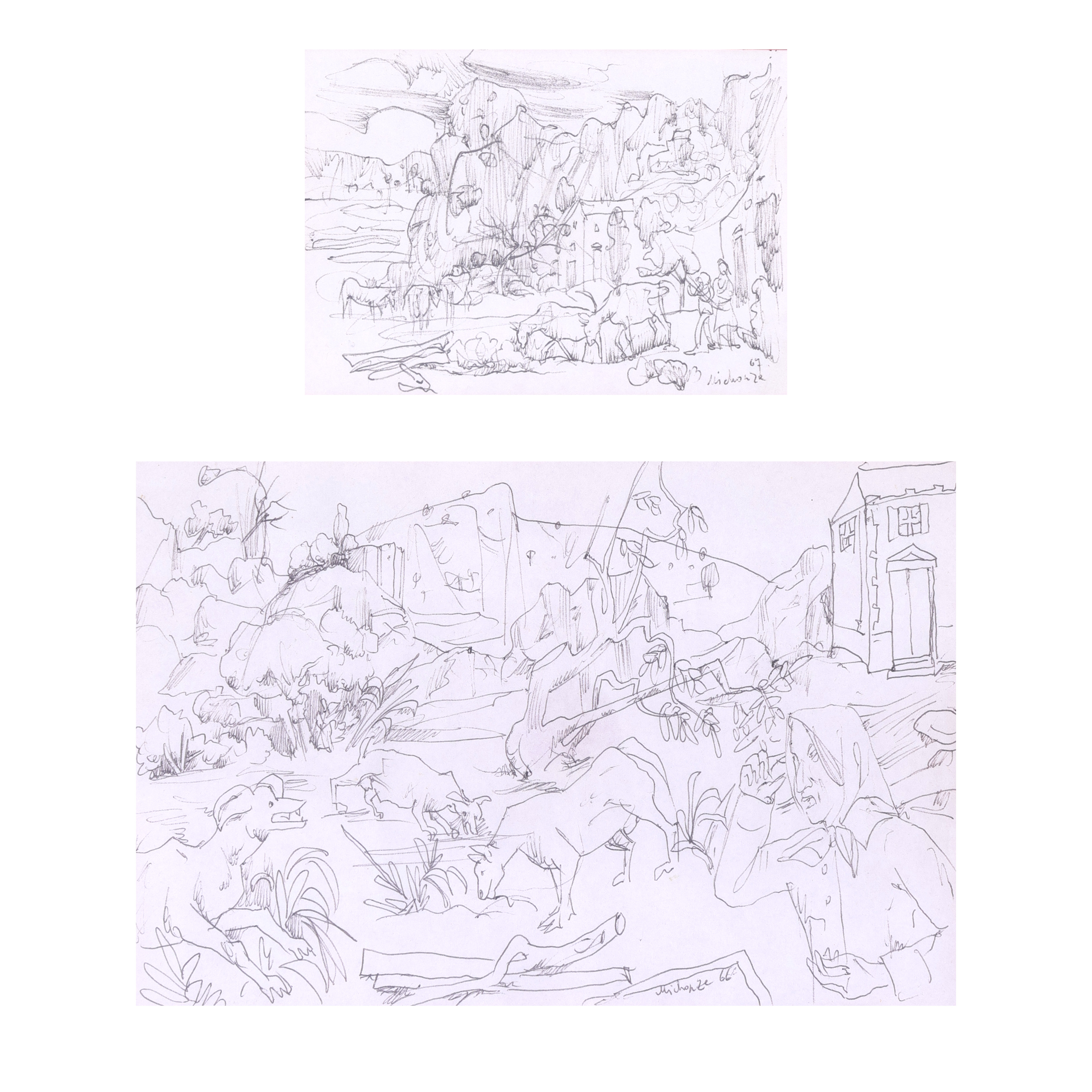 1. semnat și datat dreapta jos, cu negru, "Michonze (19)67"; 2. semnat și datat dreapta jos, cu negru, "Michonze (19)66"
