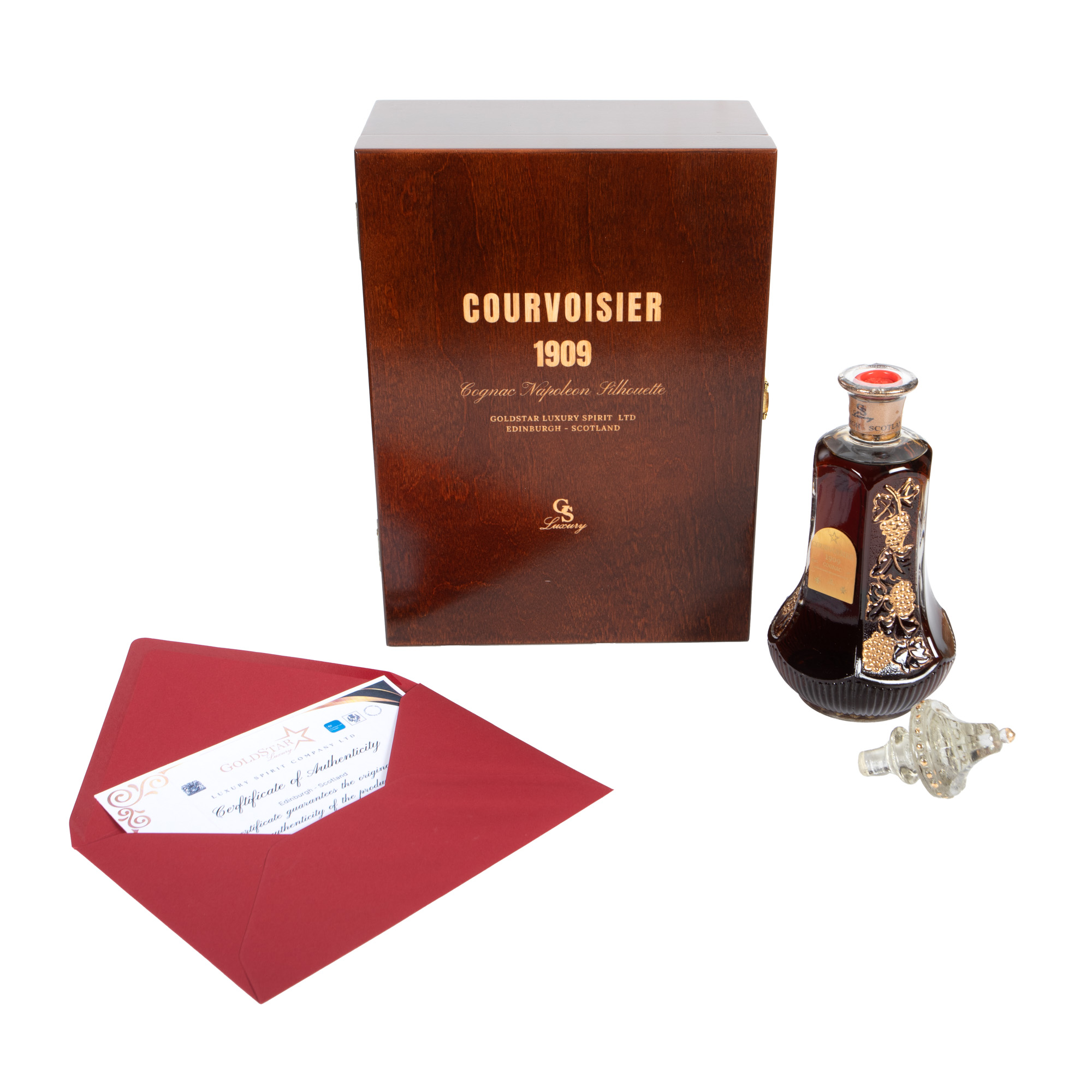 52. Cognac Napoleón Courvoisier 1909, 1st x 0,60l, reîmbuteliat în decantor din cristal