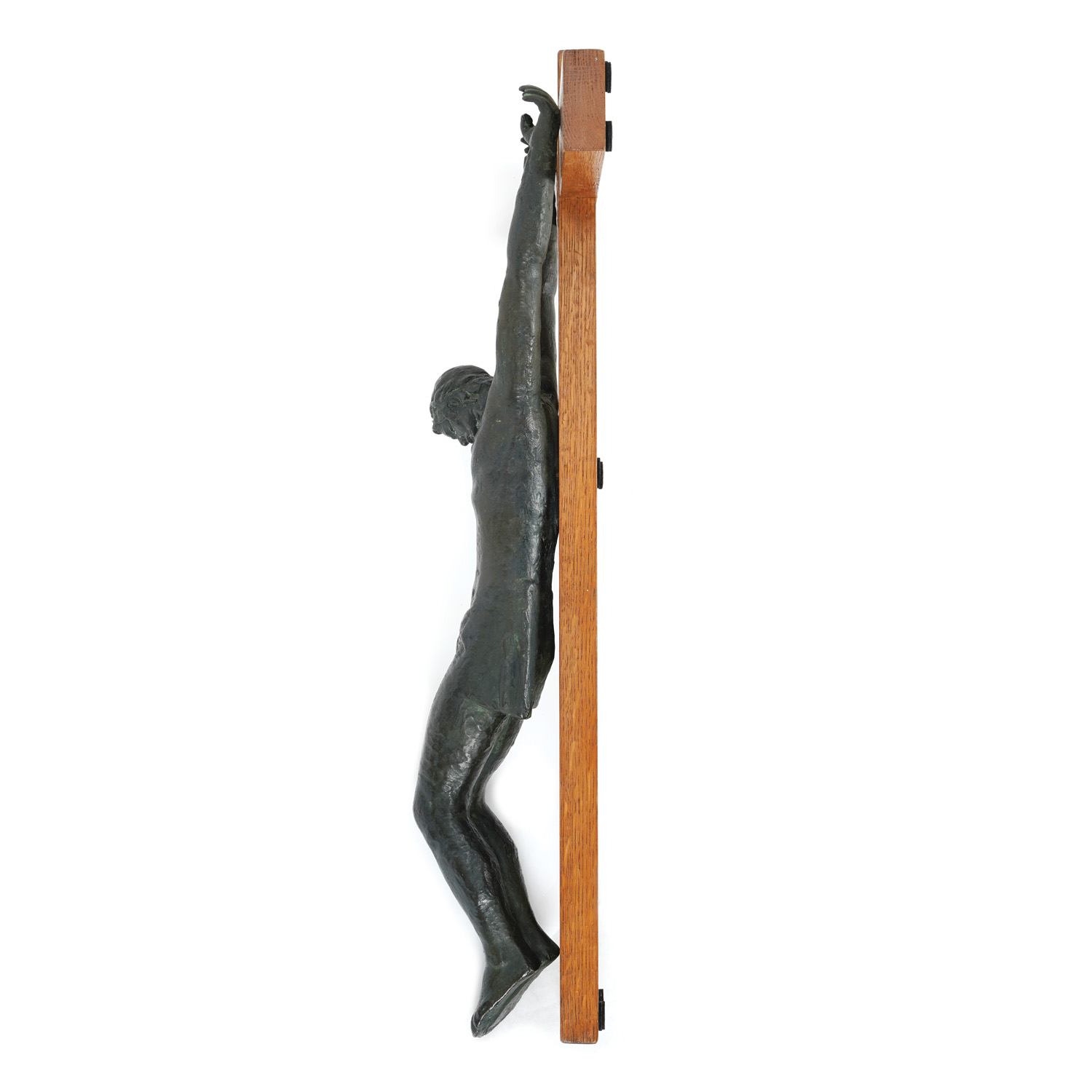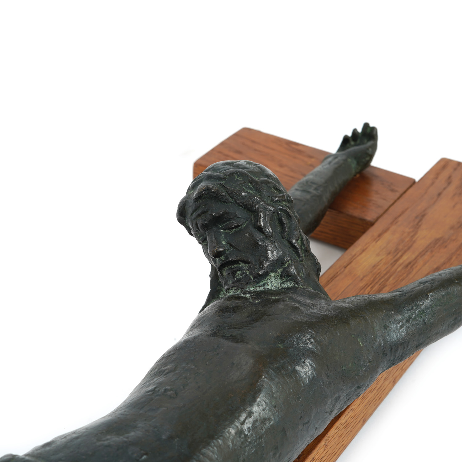 Frano Kršinić (Lumbarda, 1897 – Zagreb, 1982) was one of the most important Croatian sculptors of the 20th century and a prominent representative of modern sculpture. His interest in stone and sculpture followed him from his childhood days on Korčula, where he acquired his first lessons. He studied in the Czech Republic, in Hořice and Prague, where he adopted classical sculpture techniques and a modernist expression. From 1924 he was a professor at the Zagreb Academy of Fine Arts, and from 1947 also the head of the Master's workshop, thus educating generations of young sculptors. He was one of the founders of the group "Zemlja" and a member of the "Independent Group of Croatian Artists". Kršinić is recognizable by his gentle, lyrical sculptures, with a lasting inspiration from the female nude, from a young and erotic female body to motifs of motherhood. In the late 1920s, he developed his own lyrical expression, but in his works, the influences of Prague education, modern French sculptors and I. Meštrović are occasionally visible. His sculptures stand out with elegance, sophistication and idealized beauty, simple lines and harmonious wholes, while in his oeuvre there are also works of local, portrait and monumental themes. During his career, he also created works of a sacred theme, such as "Saint Sebastian", "Madonna with Child" and "Christ" in the baptistry of the Korčula cathedral. The sculpture Crucifix, executed in bronze on a wooden cross, embodies Kršinić's ability to combine classical tradition with modernist simplicity. The figure of Christ, reduced to purified and elegant lines, exudes calmness and deep spirituality. With its harmony of shapes and universal symbolism, this sculpture illustrates Kršinić's contribution to modern sacred sculpture.
