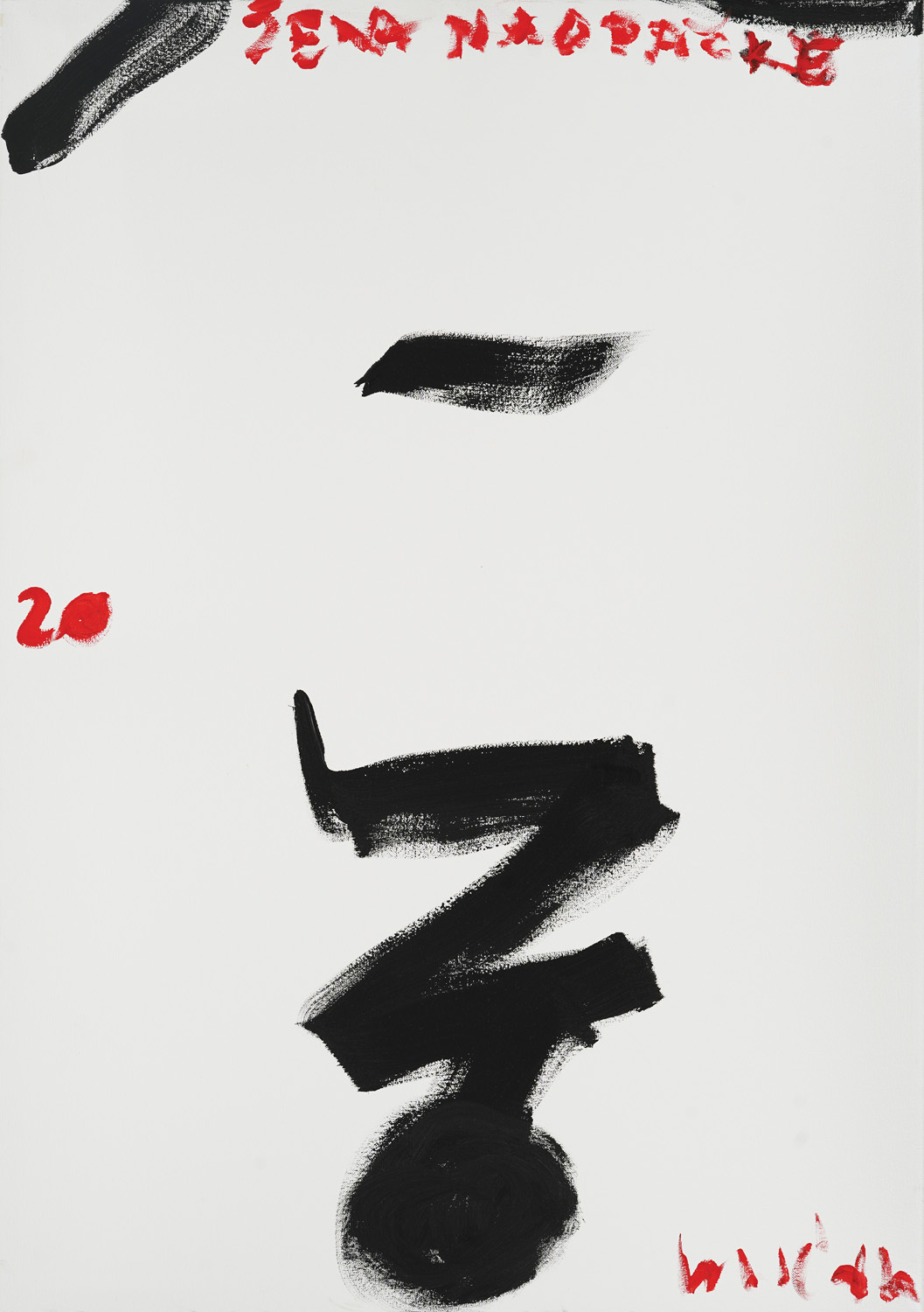 signed lower right, in red, "Bućan"; titled middle top, in red, "WOMAN UPSIDE DOWN"; dated middle left, in red, "(20)20"