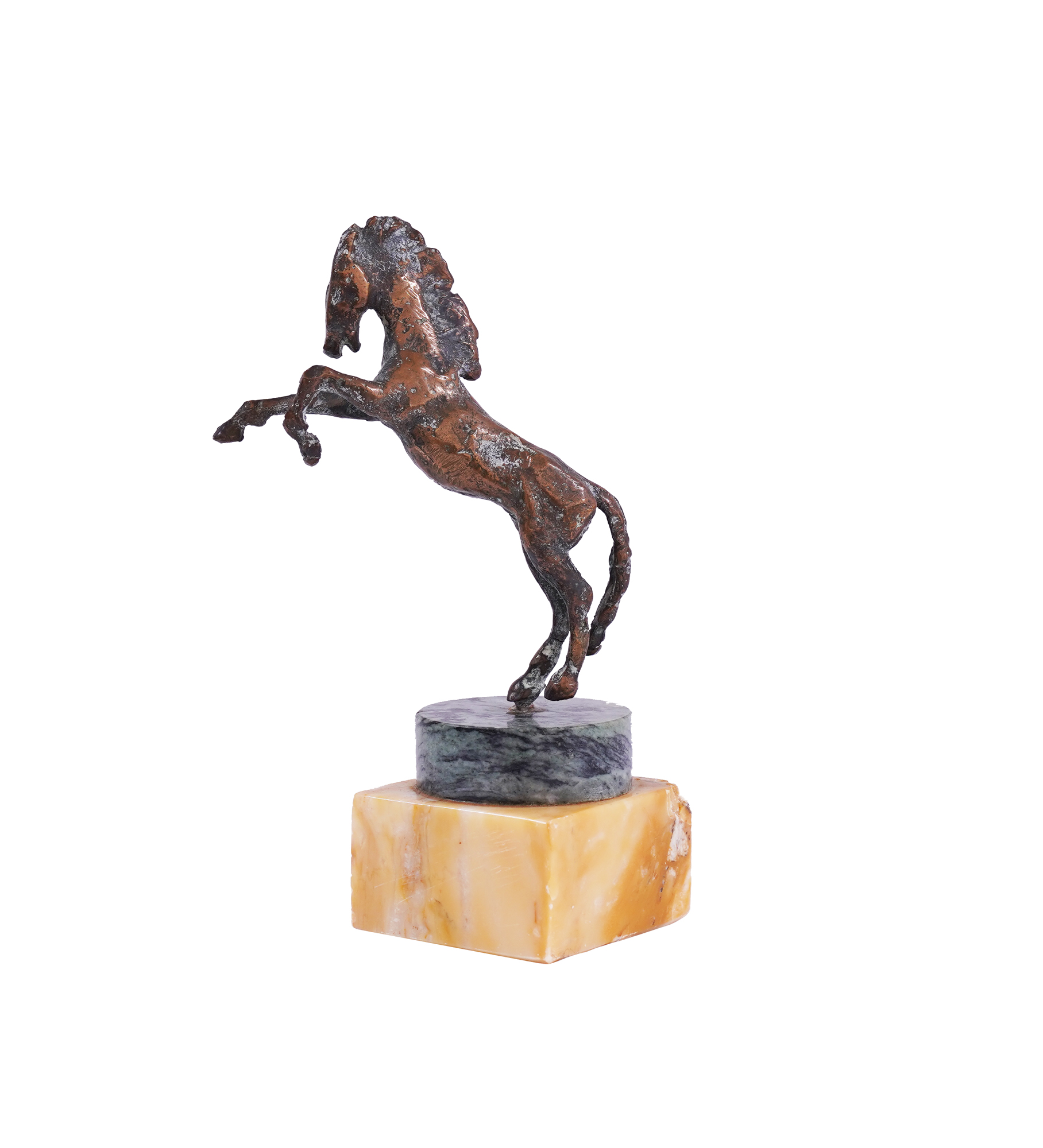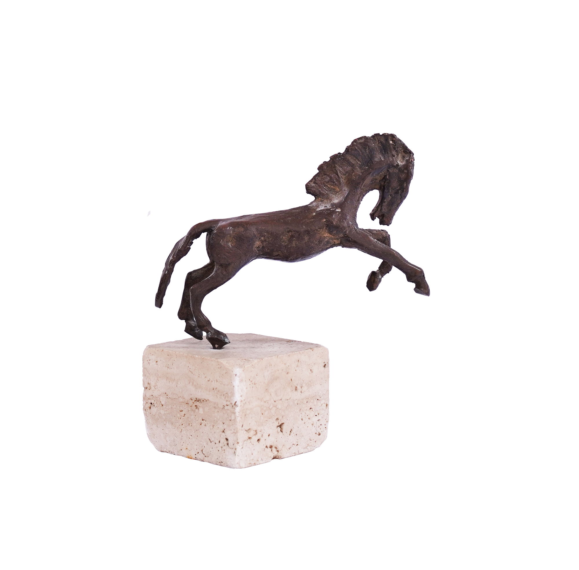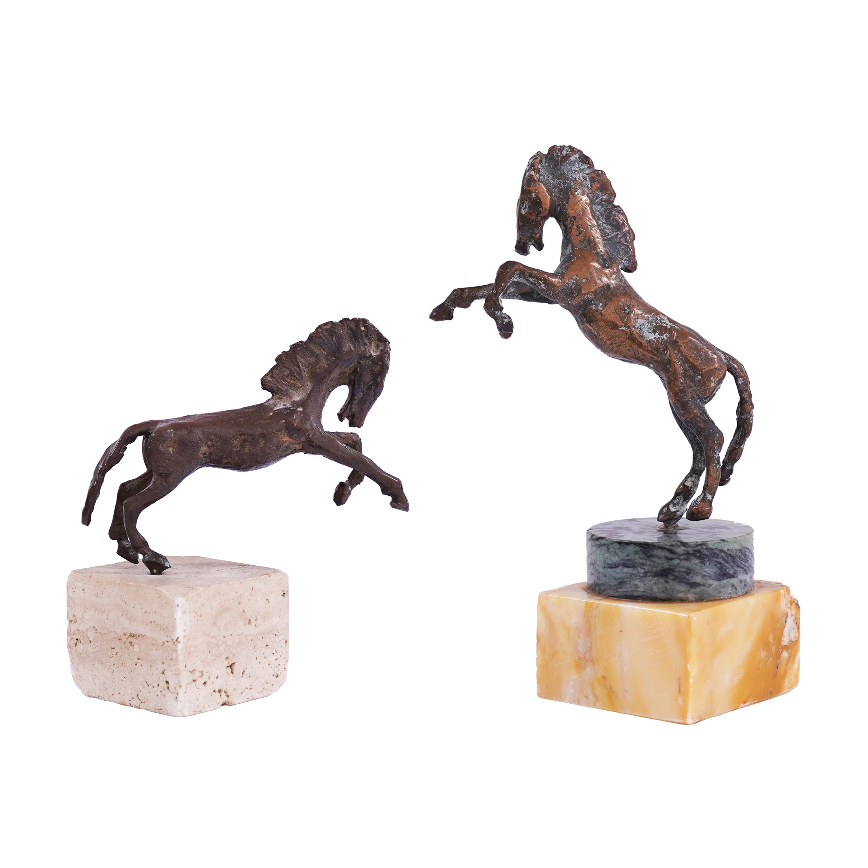Asen Peykov is a great sculptor who worked from the 1920s to the 1960s. Most of his life was spent in the eternal city of Rome. There he developed his talent and ideas, and left a rich legacy not only of his sculptural works and his collection of paintings, but also the memory of a creator who inspired many people. The period of the 1960s was a turning point in Peikov's life. It is from that time that his most famous and perhaps his biggest project dates - the sculpture of Leonardo da Vinci, which greets arrivals at Rome's Fuimcino airport. And at the end of the decade, Asen Peykov returned to Bulgaria (for the first time in 31 years), when a competition for a monument to Khan Asparuh was announced. The sculptor begins work on the assigned subject. He created the project "The Heroic Cavalry of Khan Asparukh", which is a multi-figure composition with horsemen led by Khan Asparukh. The work was not realized and Peykov received only an incentive award from the Bulgarian jury. Based on this information, we can assume that the two small sculptures presented in the lot with the title "Allure" are highly likely to have been part of the corresponding project of Asen Peykov. (A.M.)