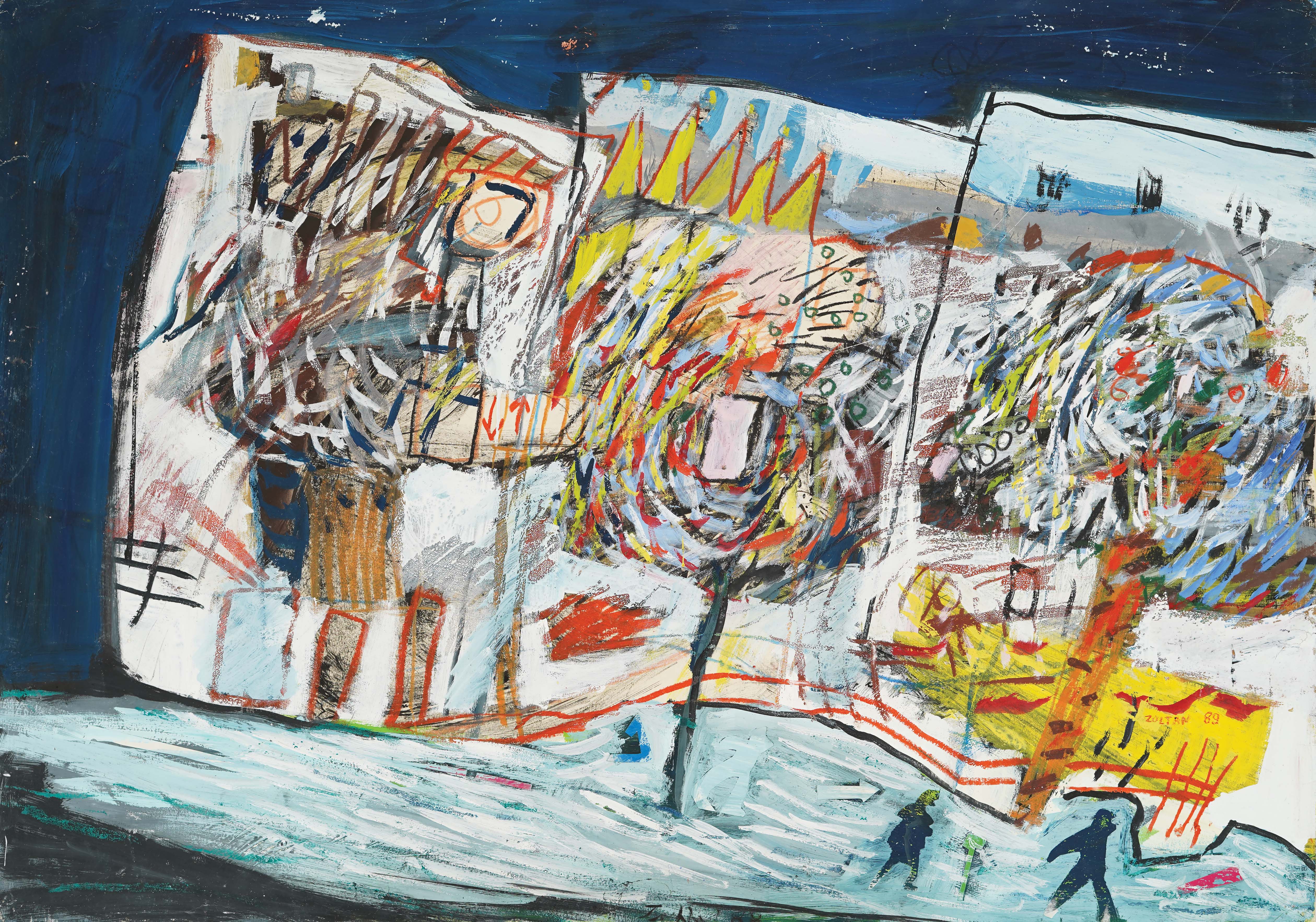 signirano i datirano dolje desno, crvenom, "Zoltan (19)89."; signirano inicijalima i datirano dolje u sredini, crnom, "Z. N. (19)88."