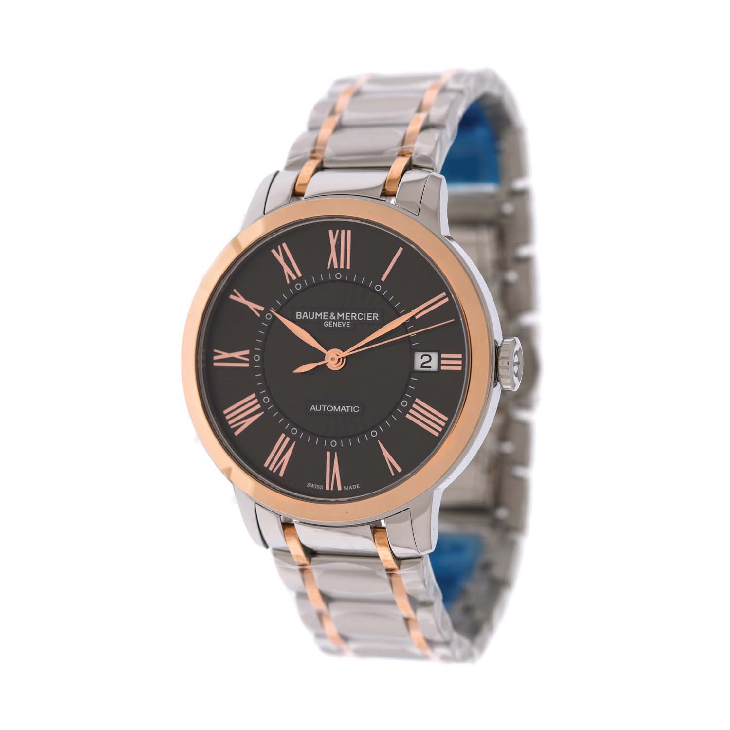 Baume&Mercier Classima gold-plated steel wrist watch for ladies, new, reference 10296. Automatic movement, caliber ETA 2892-A2. Gray dial, Roman numeral hour markers, date register at 3 o'clock. Original gold-plated steel bracelet with deployant clasp. Accessories: original box, warranty card.