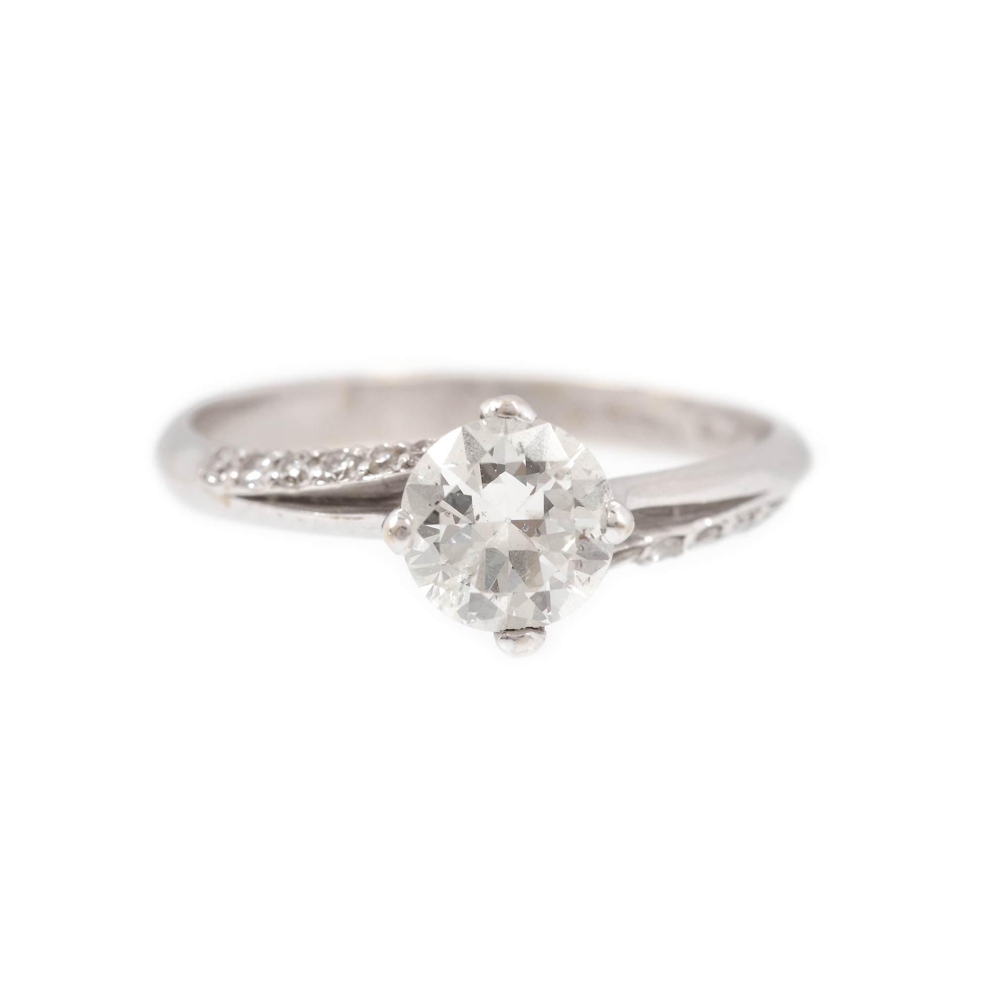 8. Inel din aur alb, decorat central cu un diamant și pavaj de briliante