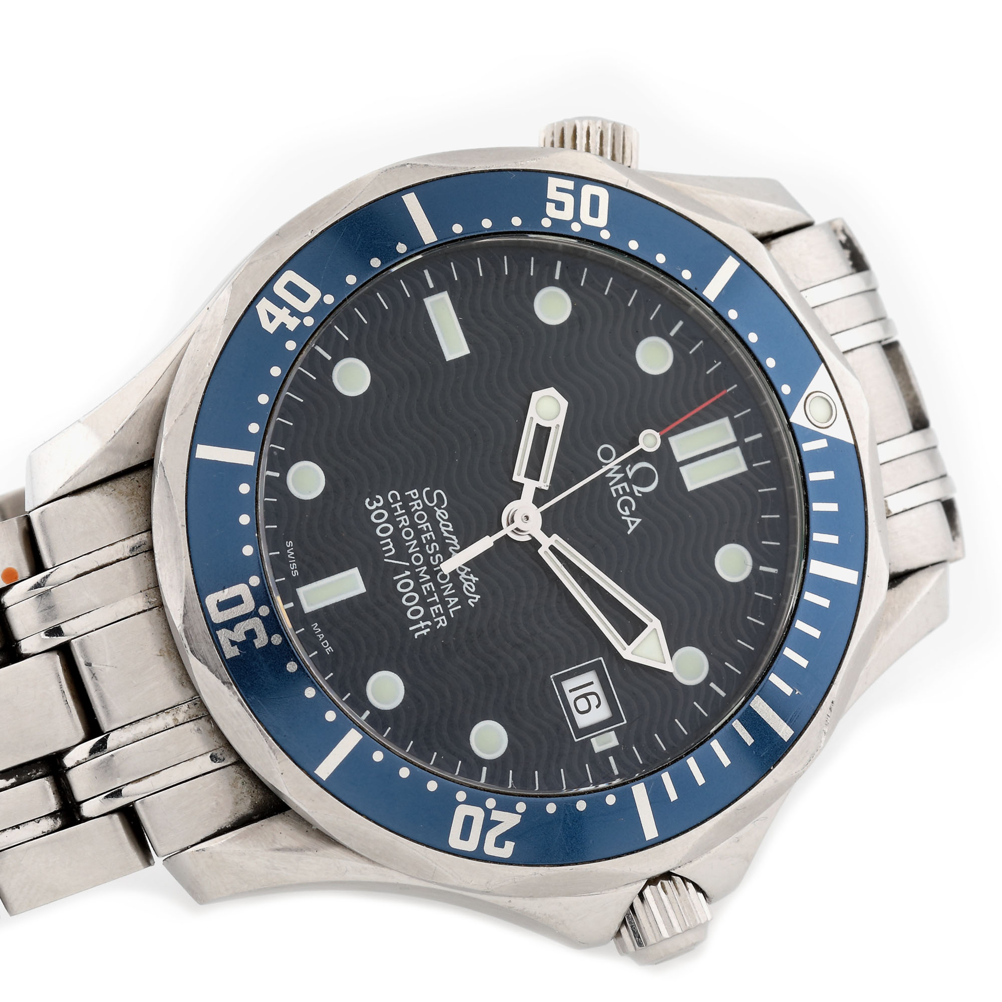 Ceas Omega Seamaster Professional, din oțel, de mână, bărbătesc, referință 2531.80, mecanism automatic. Cadran de culoare bleumarin, decorat în ”wave pattern”, indici orari luminiscenți și bezel rotativ, unidirecțional. Brățară și sistem de închidere tip deployant din oțel inoxidabil, originale.