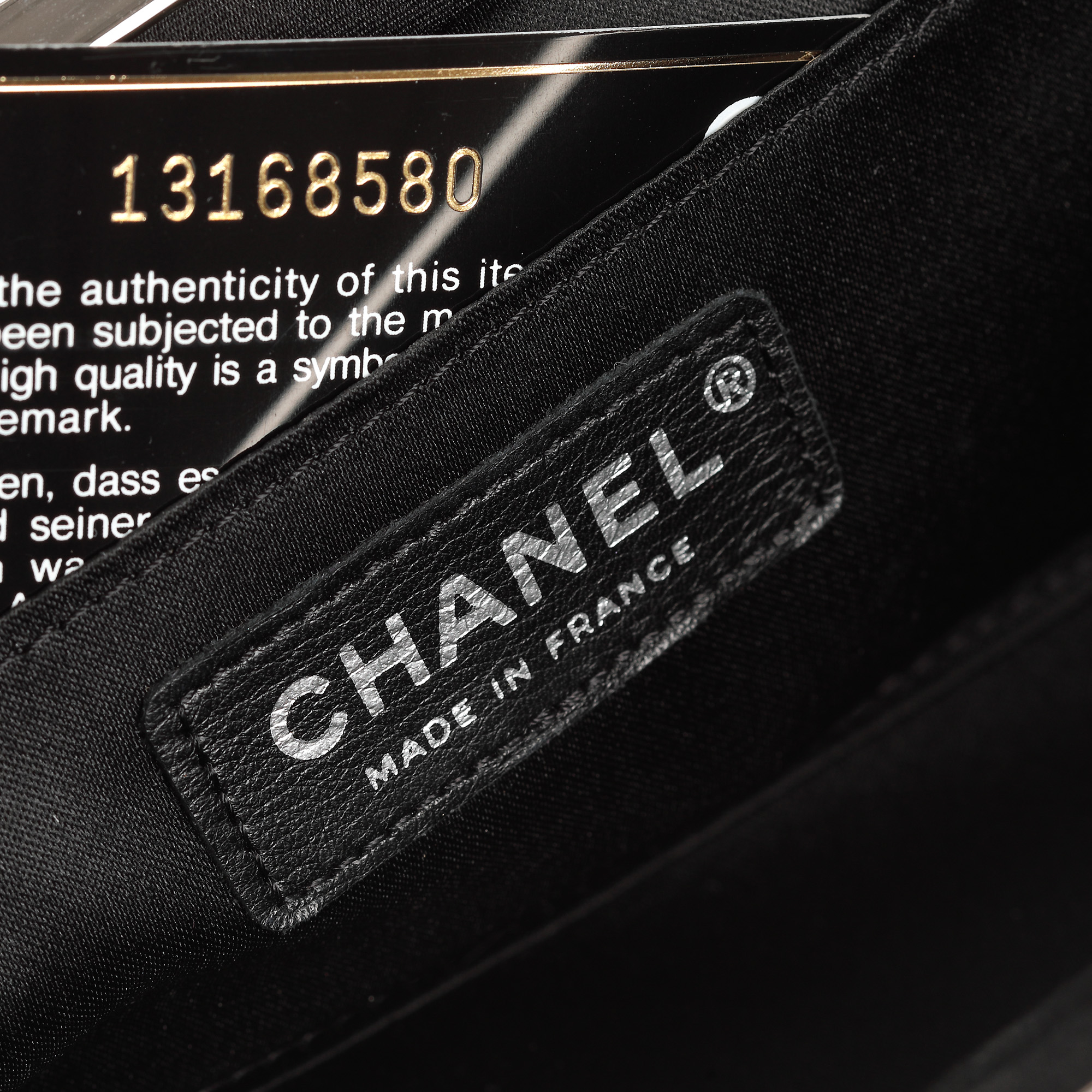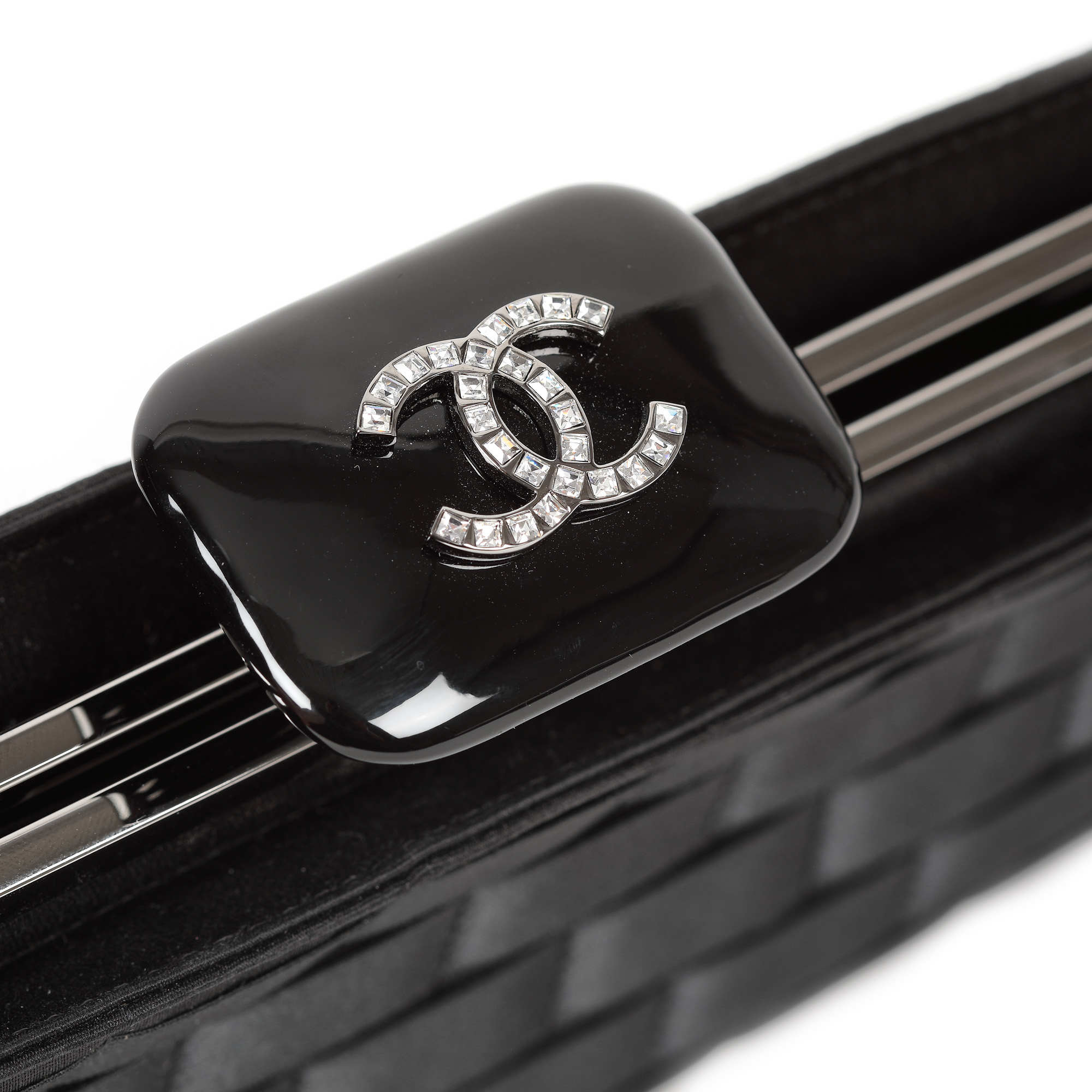 6. Clutch Chanel, din satin, de culoare neagră, însoțit de card de autenticitate si husă originală [2009]