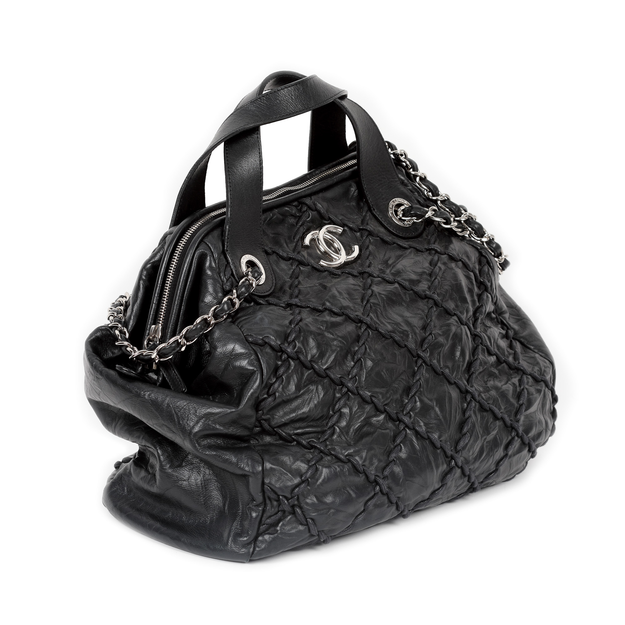 10. ”Ultra Stitch Bowling Bag” - geantă Chanel, din piele matlasată, de culoare neagră, însoțită de card de autenticitate și husă originală [2011]