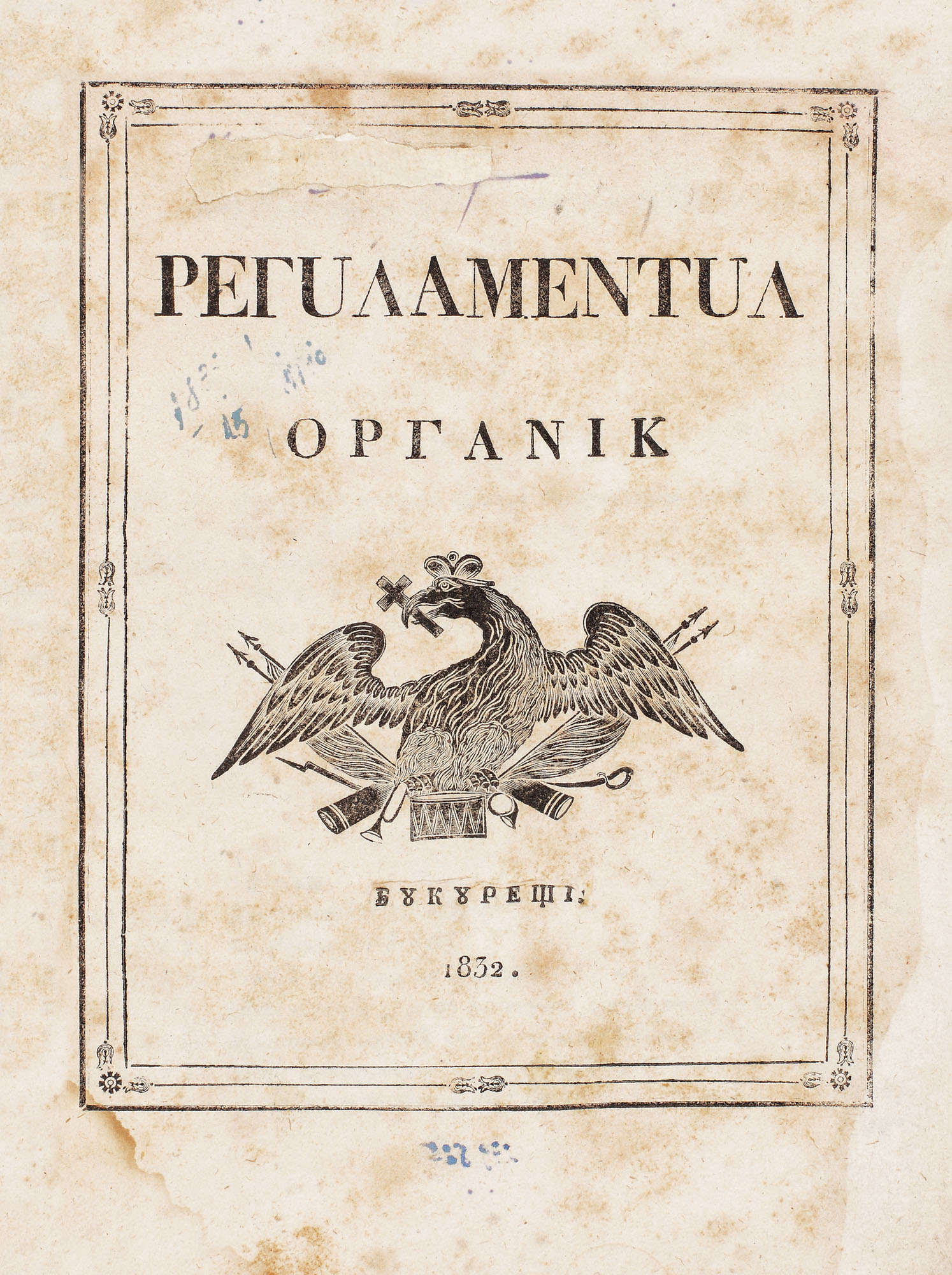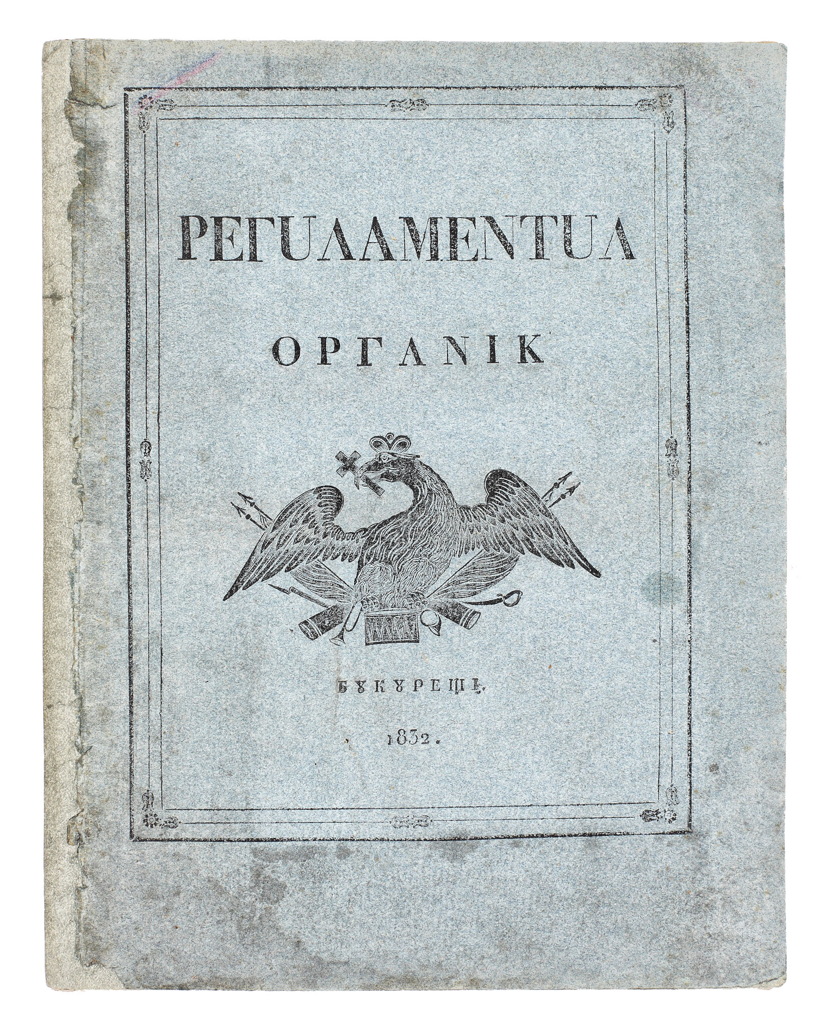 27. "Regulamentul Organic al Țării Românești", București, 1832, cu coperta originală