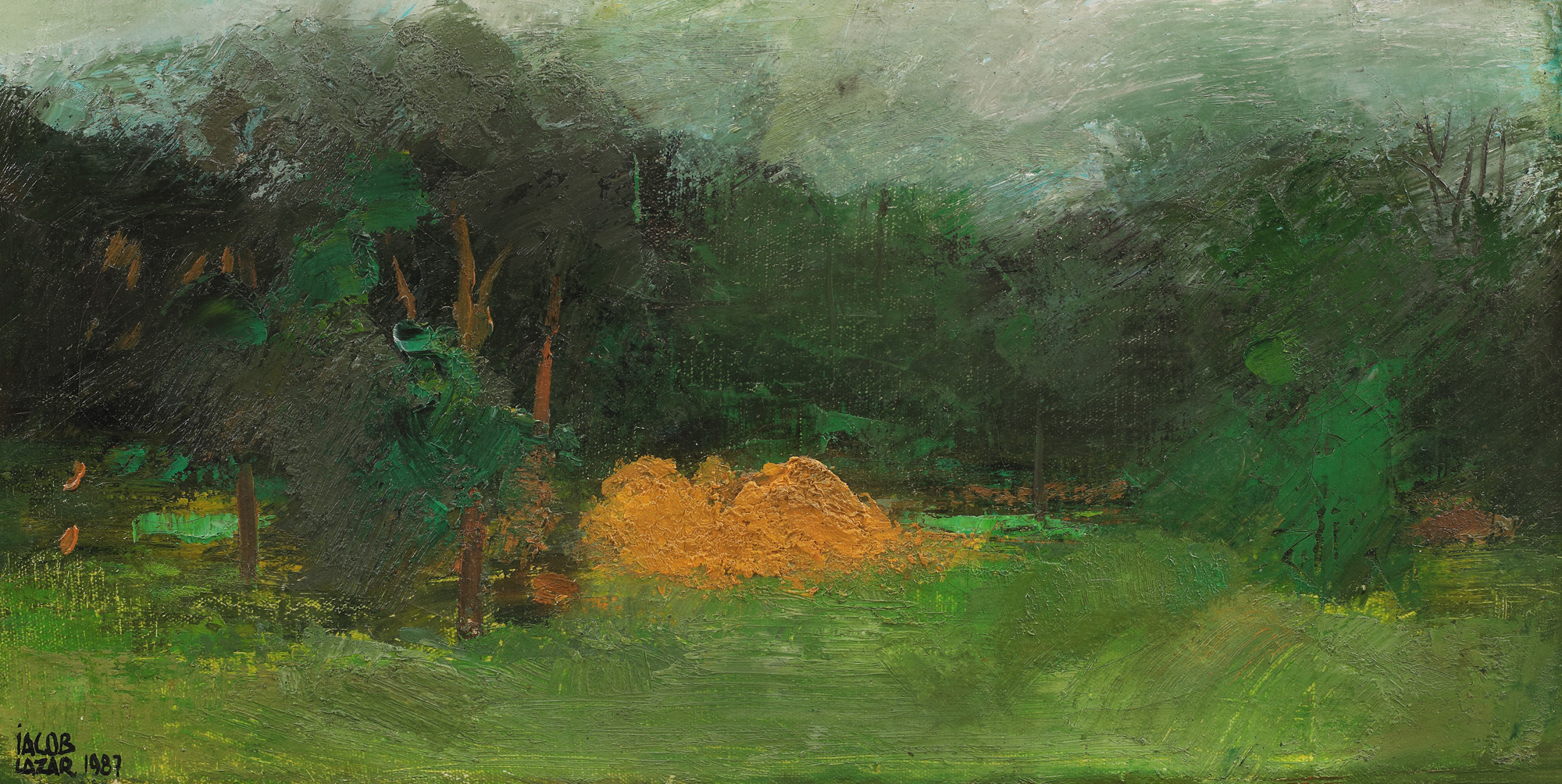 semnat și datat stânga jos, cu negru, ”IACOB LAZĂR, 1987”