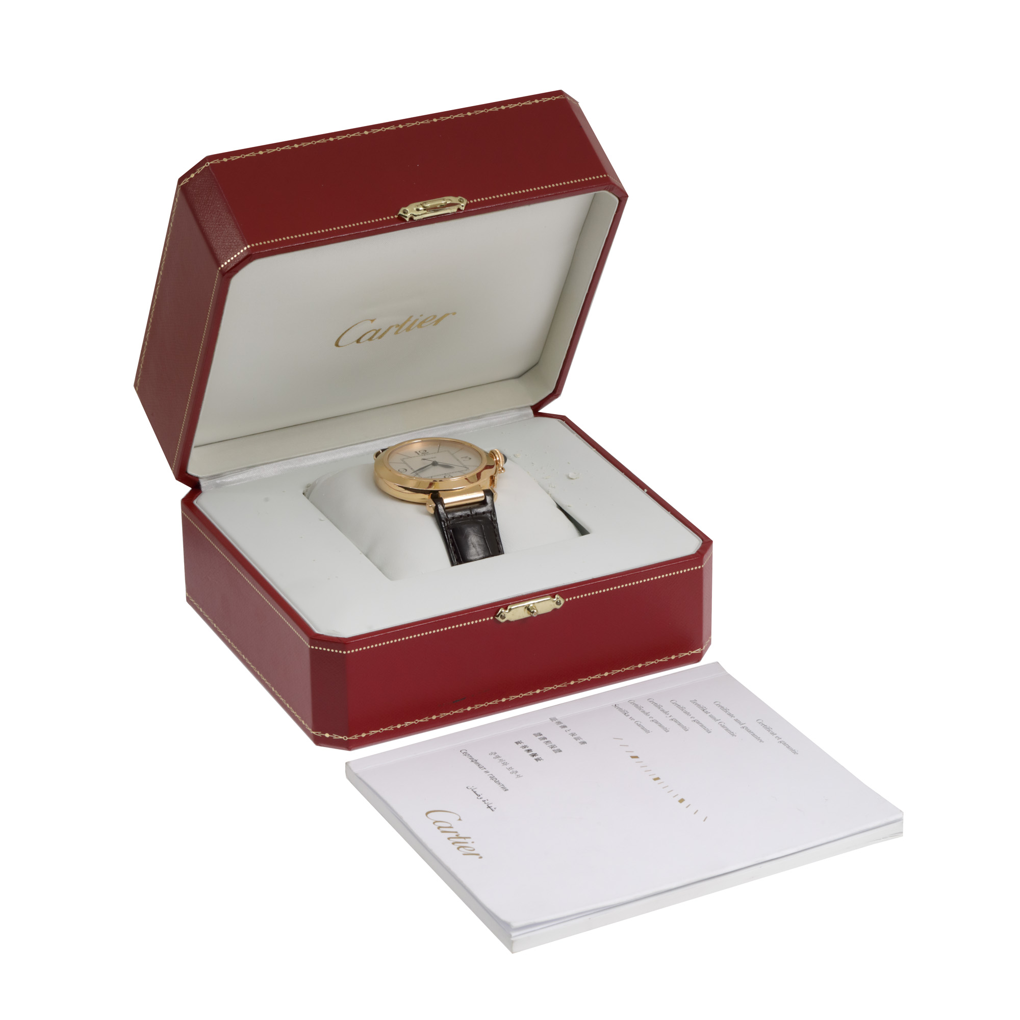 34. Ceas Cartier Pasha, din aur, de mână, bărbătesc, însoțit de cutia originală și broșură garanție [2010]