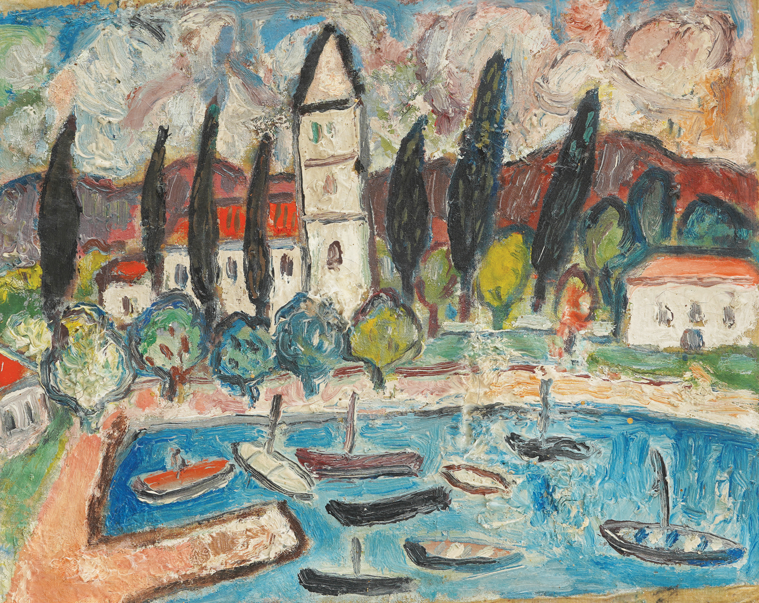 19. Harbor with Church and Cypress Trees (Slano) [1960-ih]