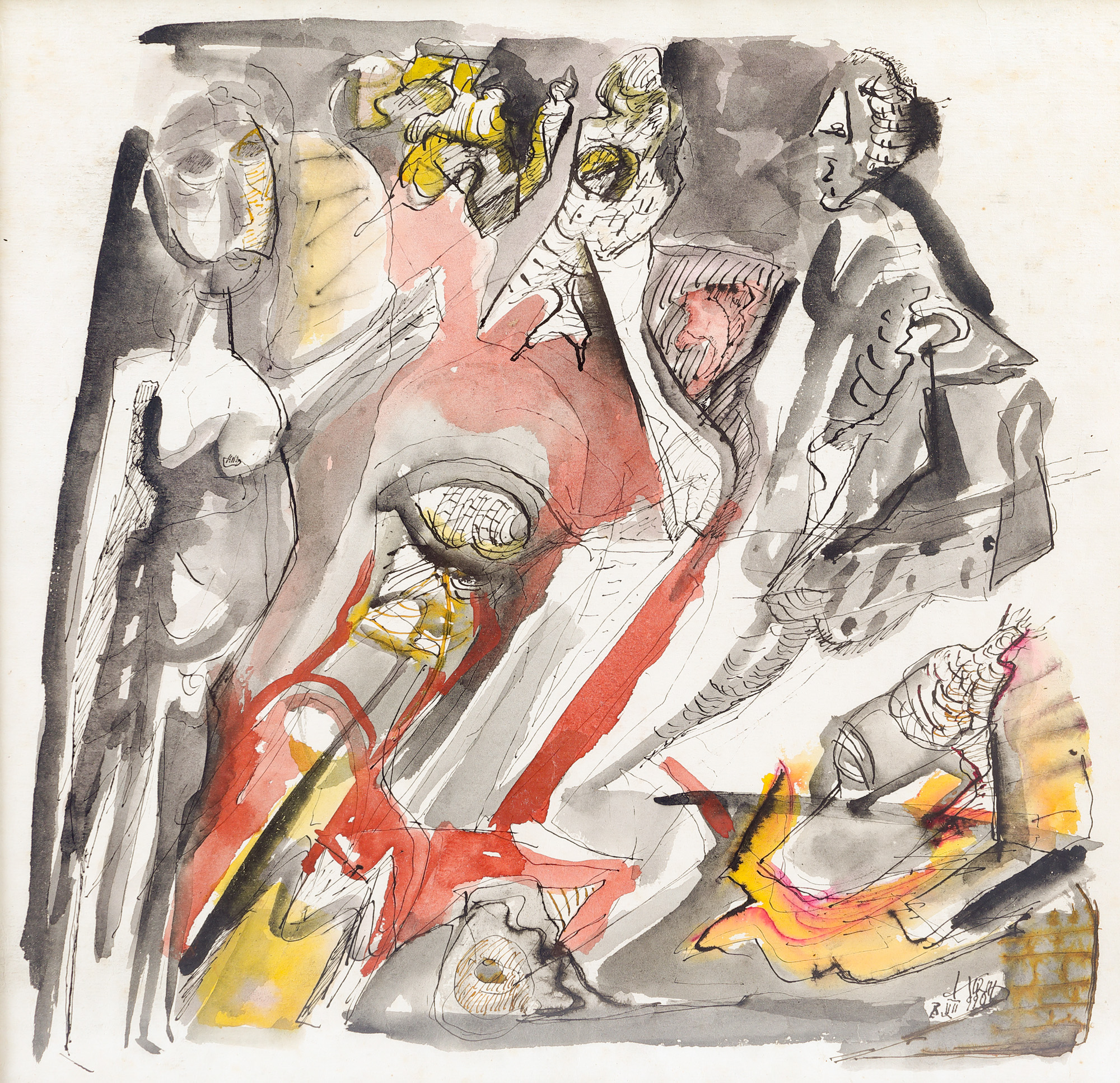 acuarelă şi tuş pe hârtie