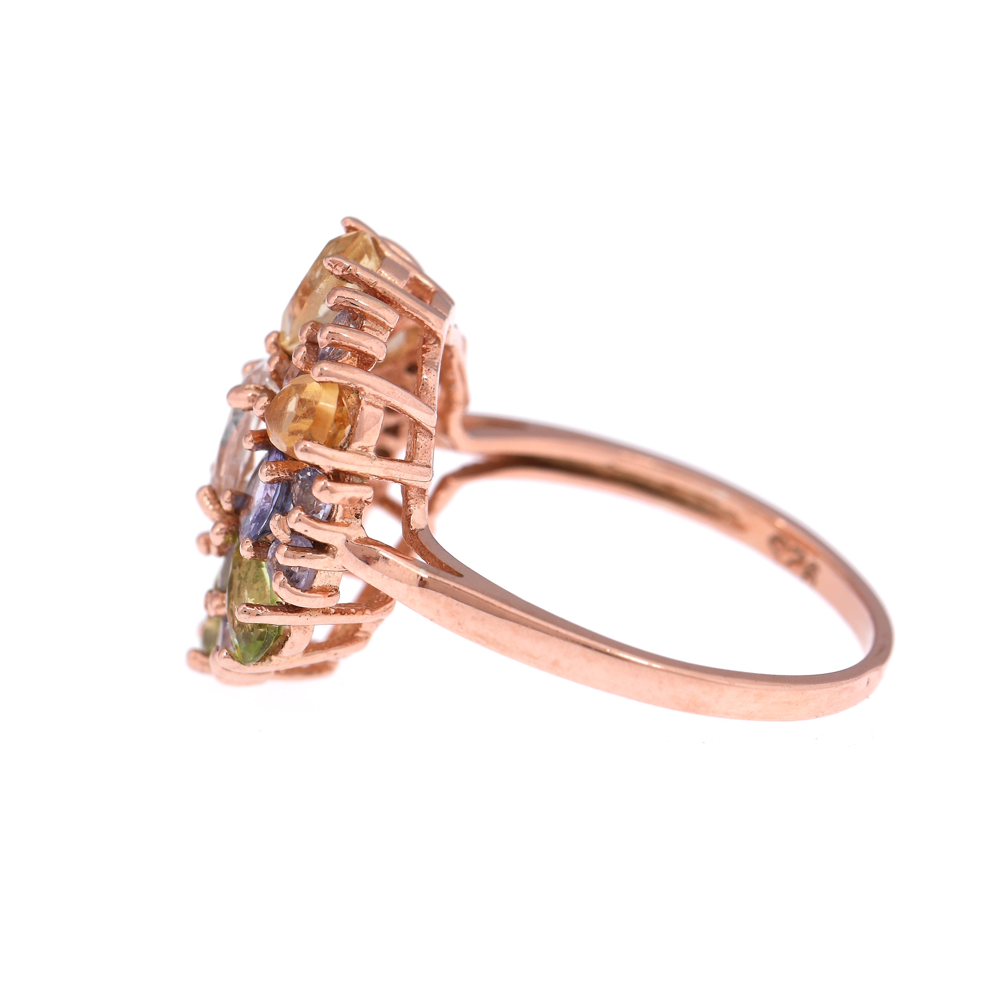 23. Inel din argint aurit cu aur roz, ornat cu mix de pietre semi-prețioase