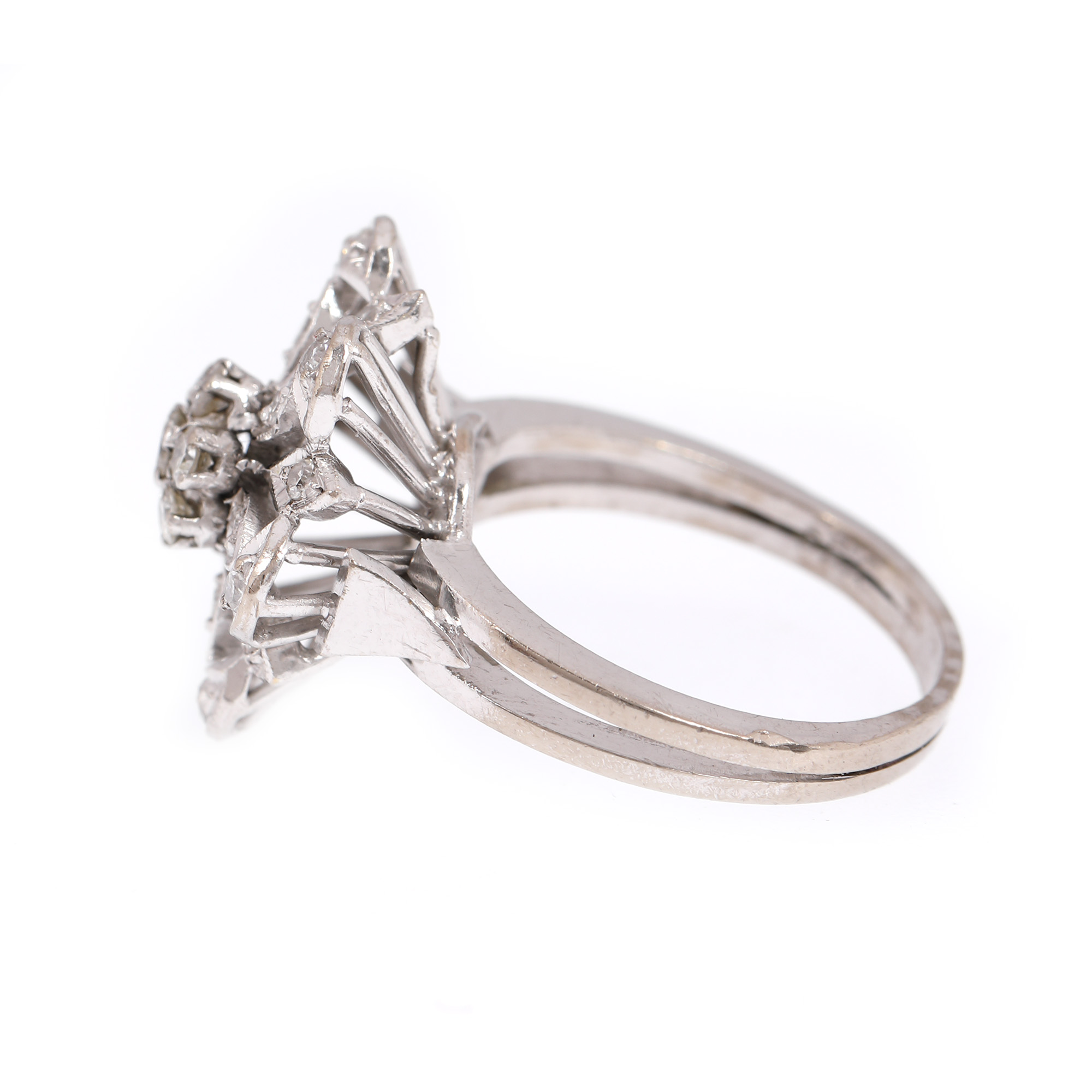 54. Inel din aur, decorat cu floare stilizată din diamante