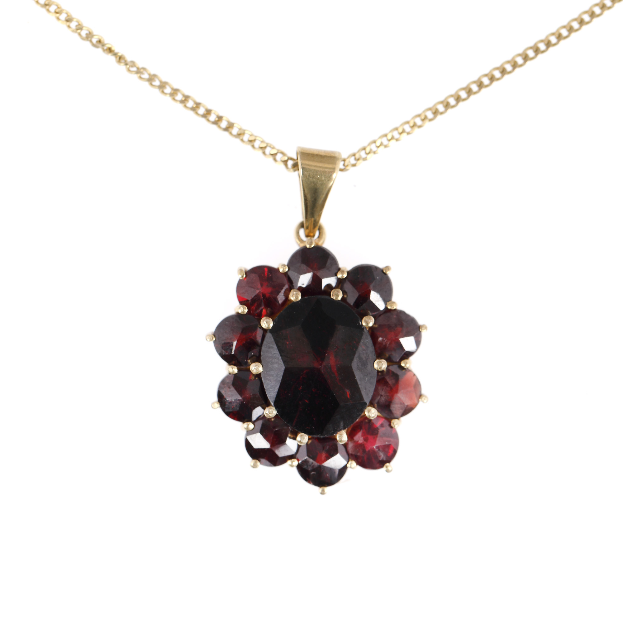 55. Lanț cu pandantiv din aur, decorat cu granate