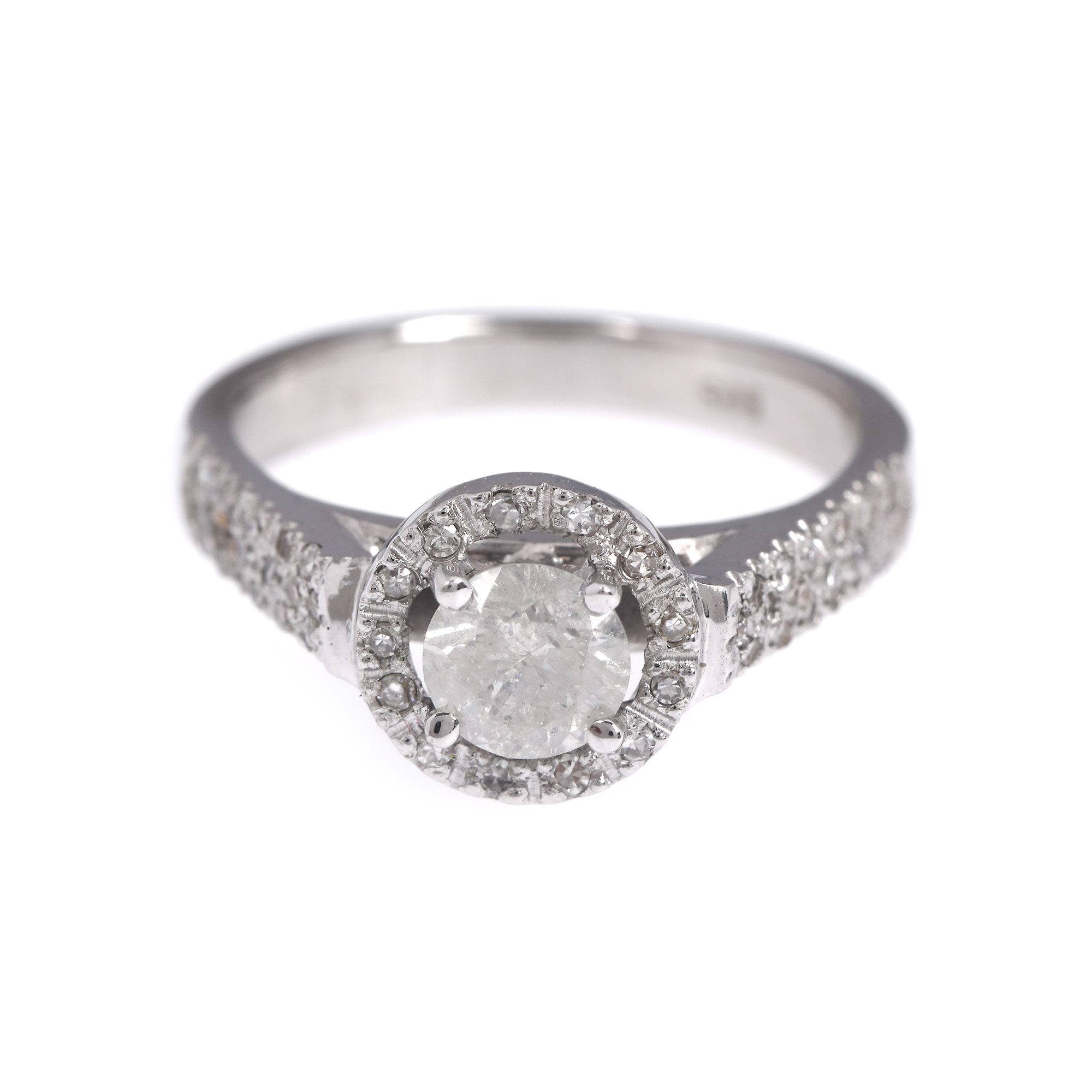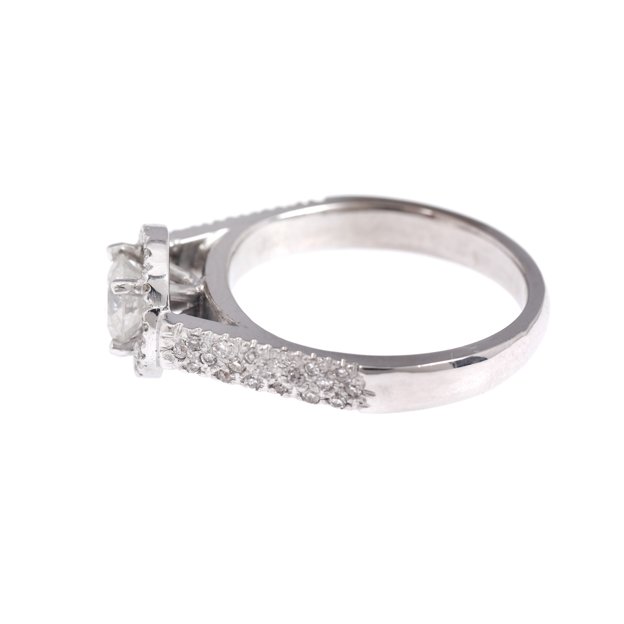 1 diamant rotund briliant, culoare I-J, claritate I3, cca. 0,62 ct. și 51 diamante (1 rotund briliant, 50 single cut), culoare H-J, claritate VS2-I2, cca. 0,27 ct.