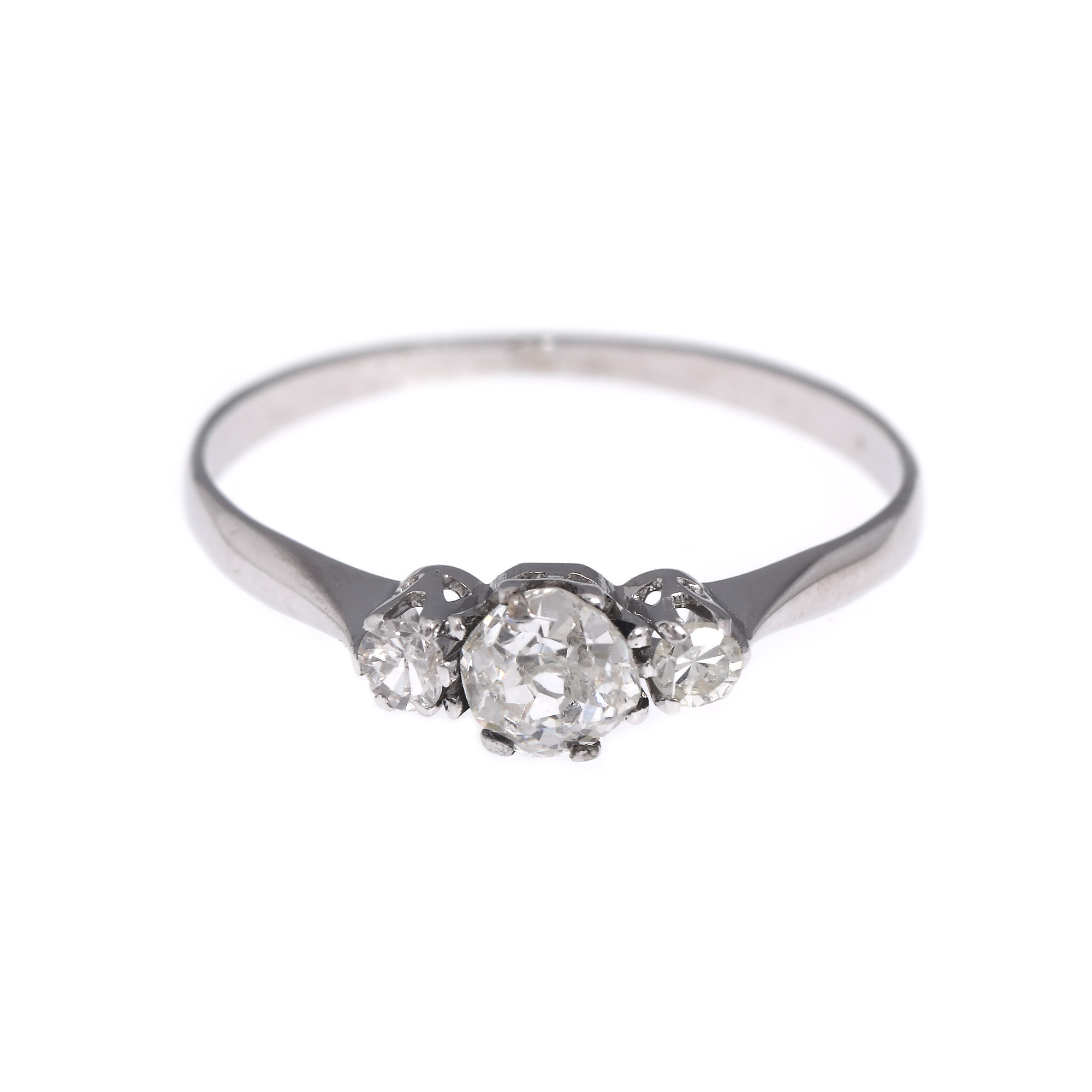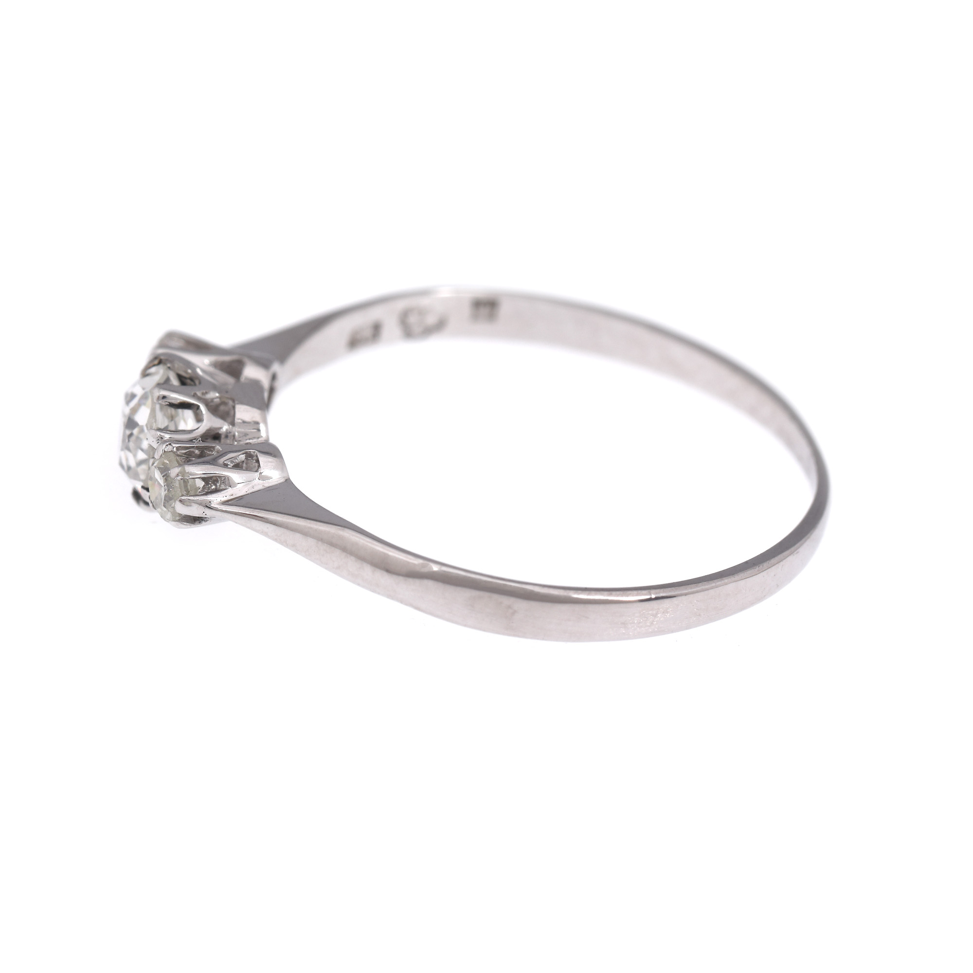 1 diamant old mine cut, culoare I-J, claritate VS2, cca. 0,28 ct. și 2 diamante single cut, culoare G, I, claritate I1, cca. 0,12 ct.