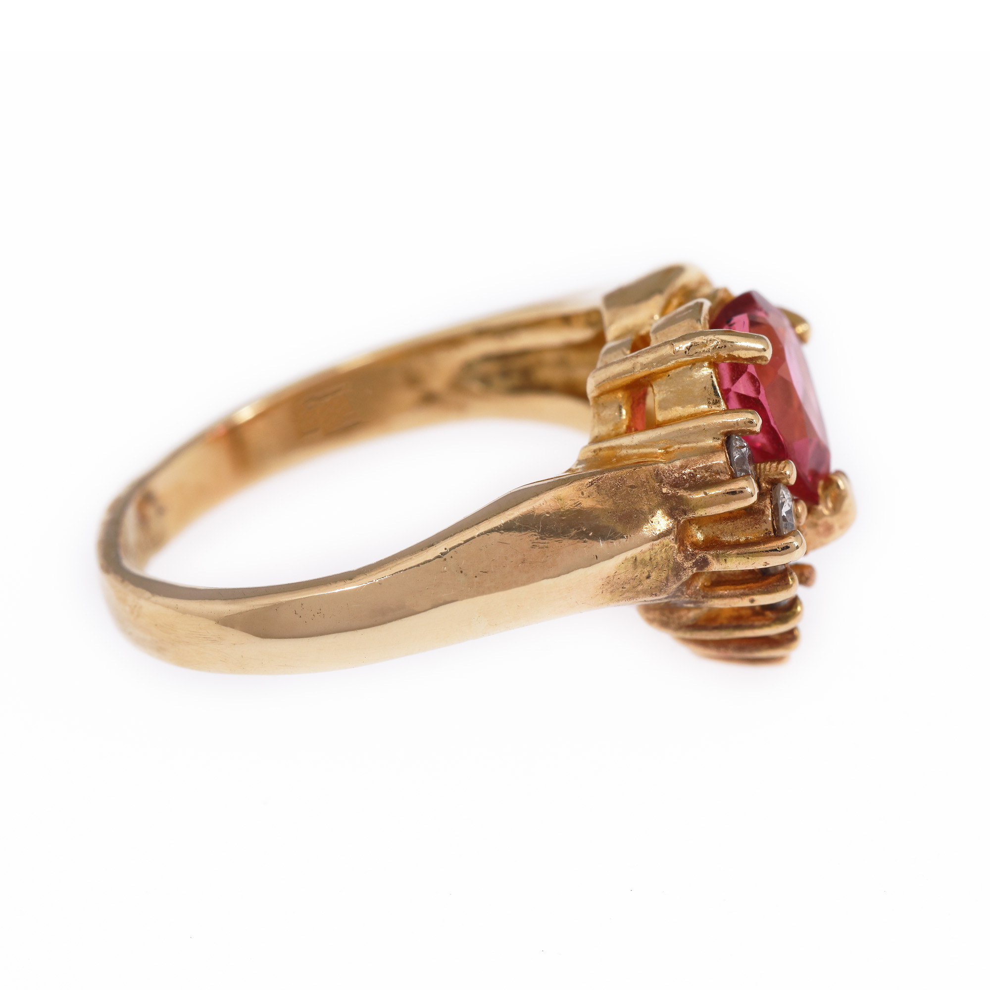 54. Inel din aur, decorat cu turmalină inimă anturată de diamante