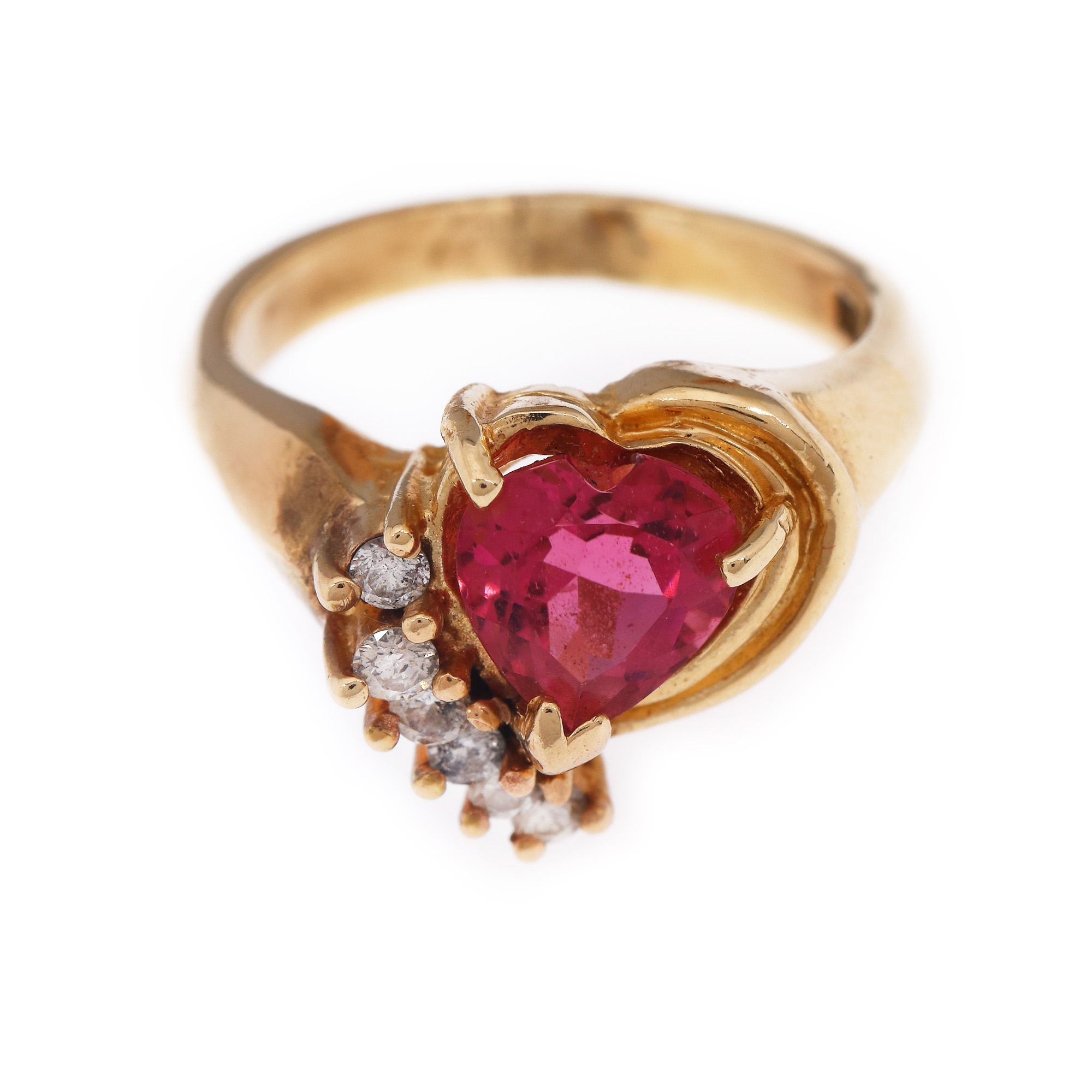 1 turmalină inimă fațetată, culoare roz, claritate eye-clean, cca. 1,60 ct. și 6 diamante rotunde briliant, culoare N-O, claritate I1-I2, cca. 0,23 ct.