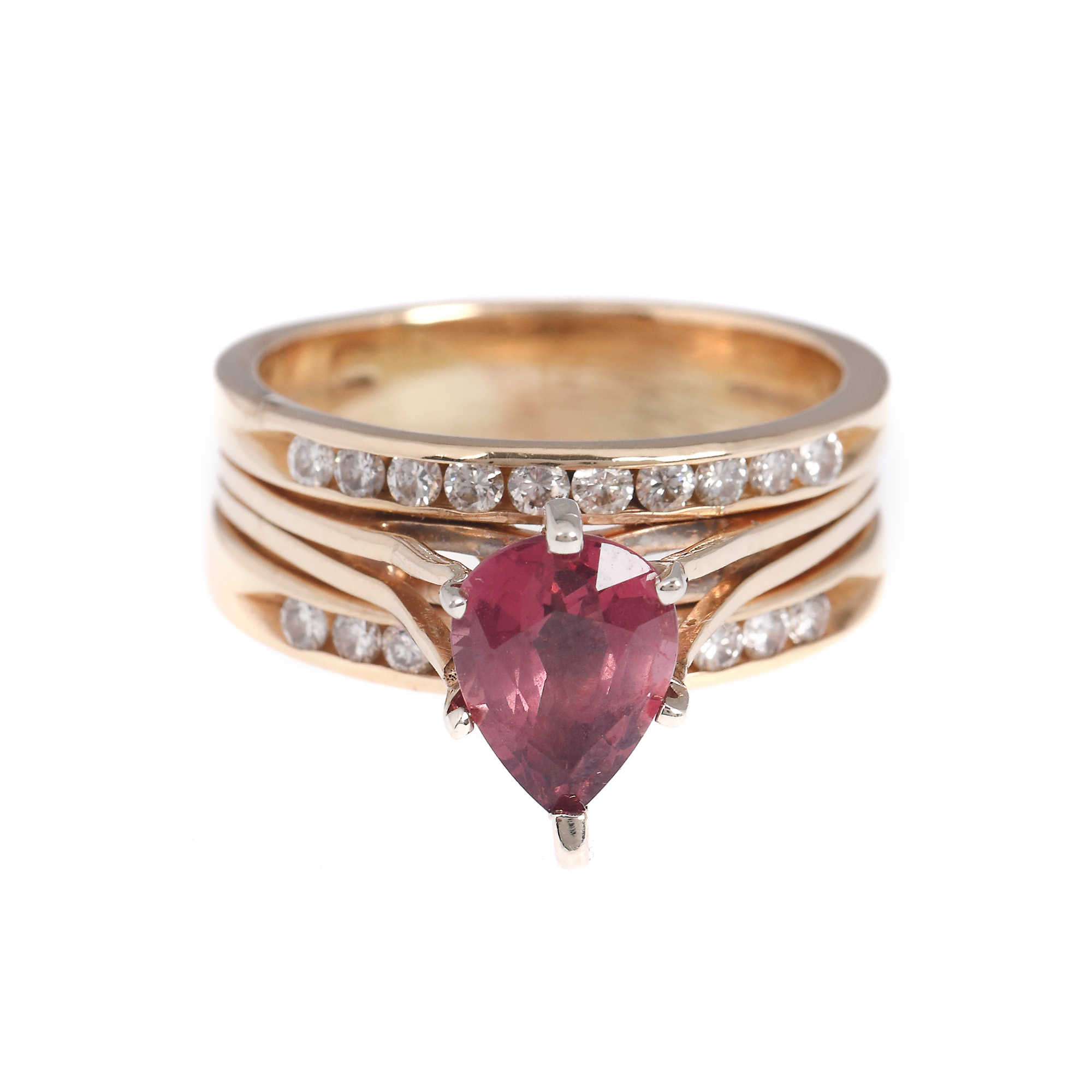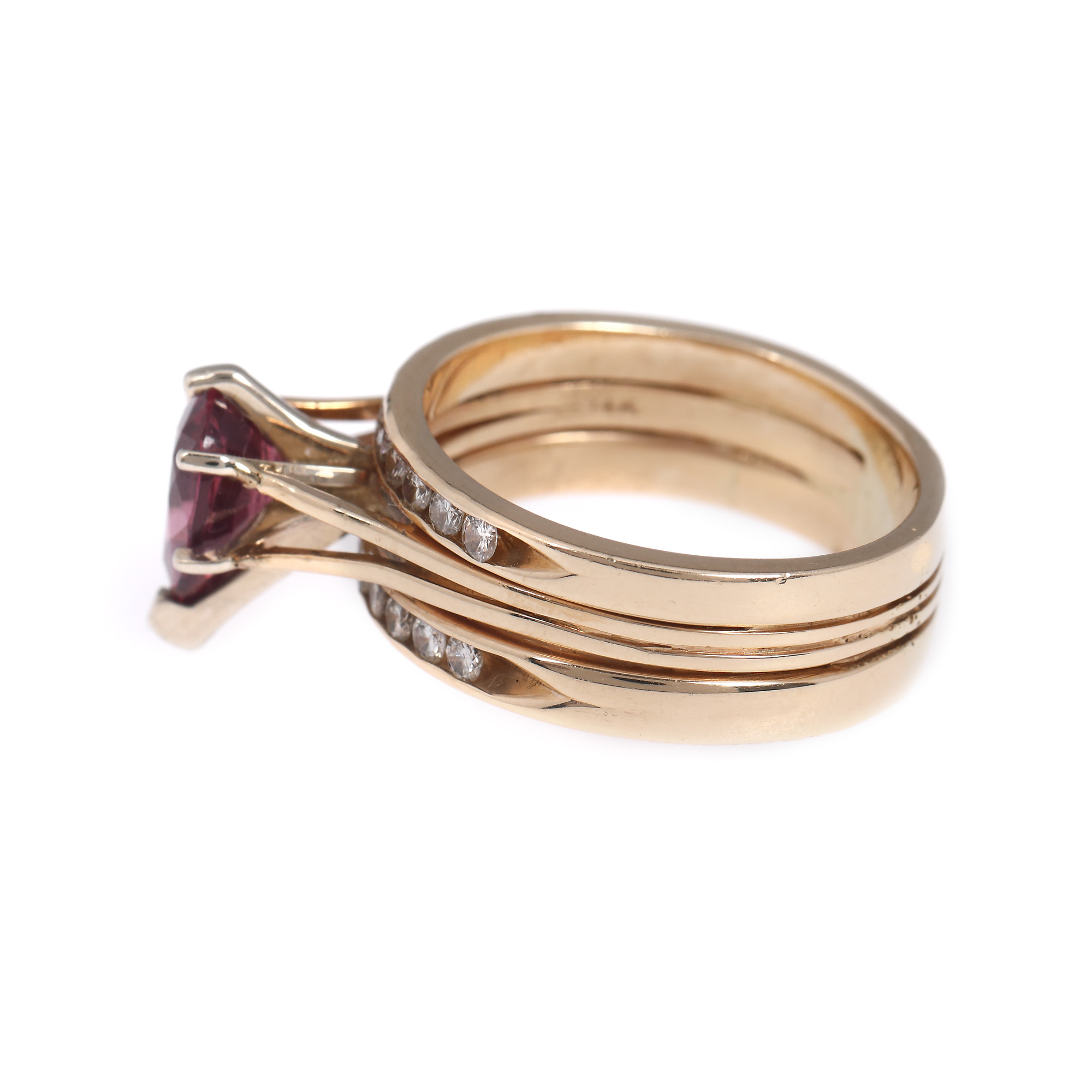 52. Inel din aur, ornat cu turmalină roz și diamante
