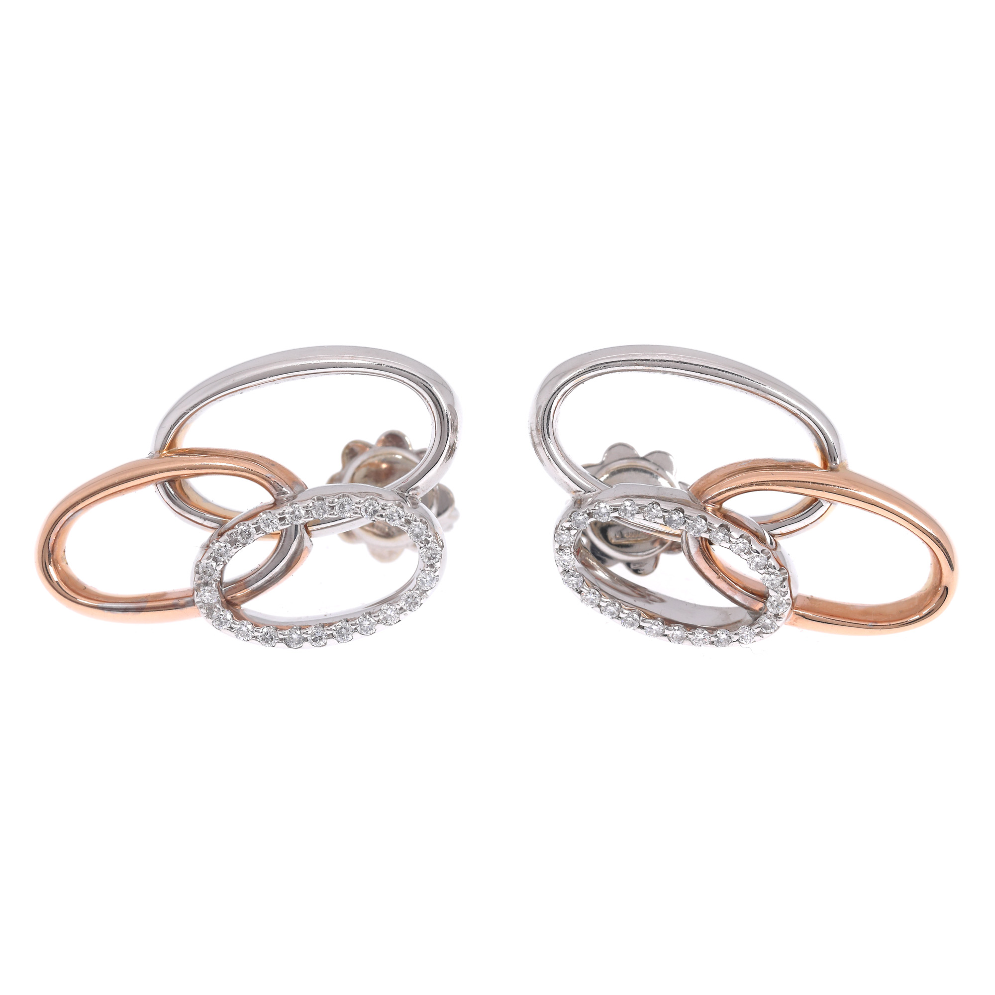 48. Pereche de cercei din aur în două culori, decorată cu diamante