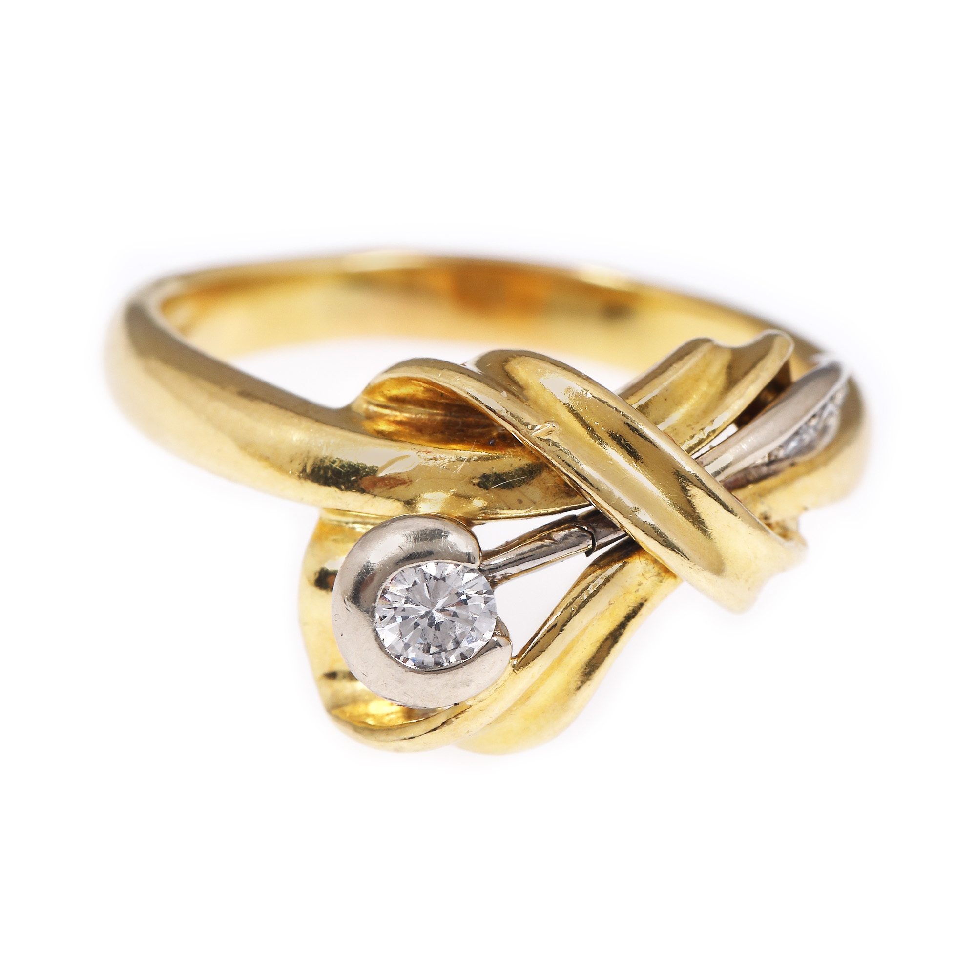 33. Set Damiani din aur în două culori, format din inel și pereche de cercei, ornat cu briliante
