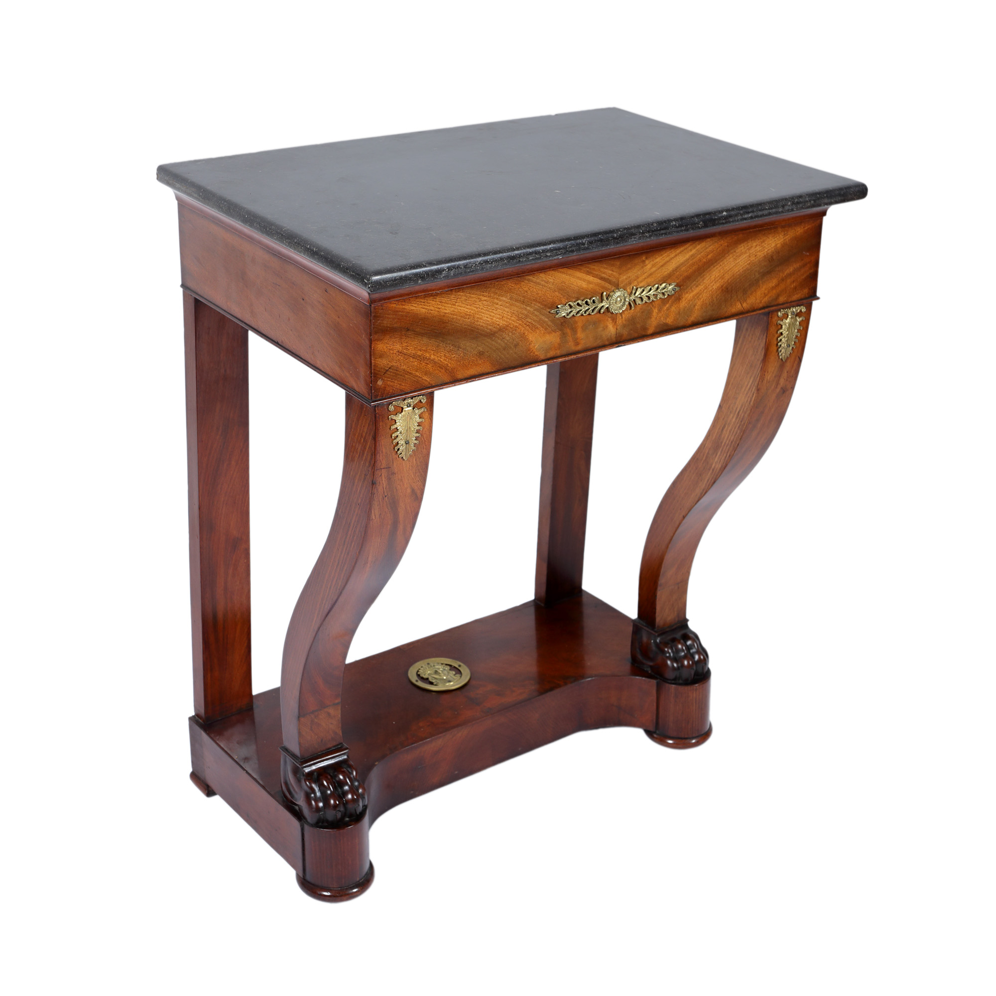 60. Consolă Empire, cu blat din marmură neagră, începutul sec. XX