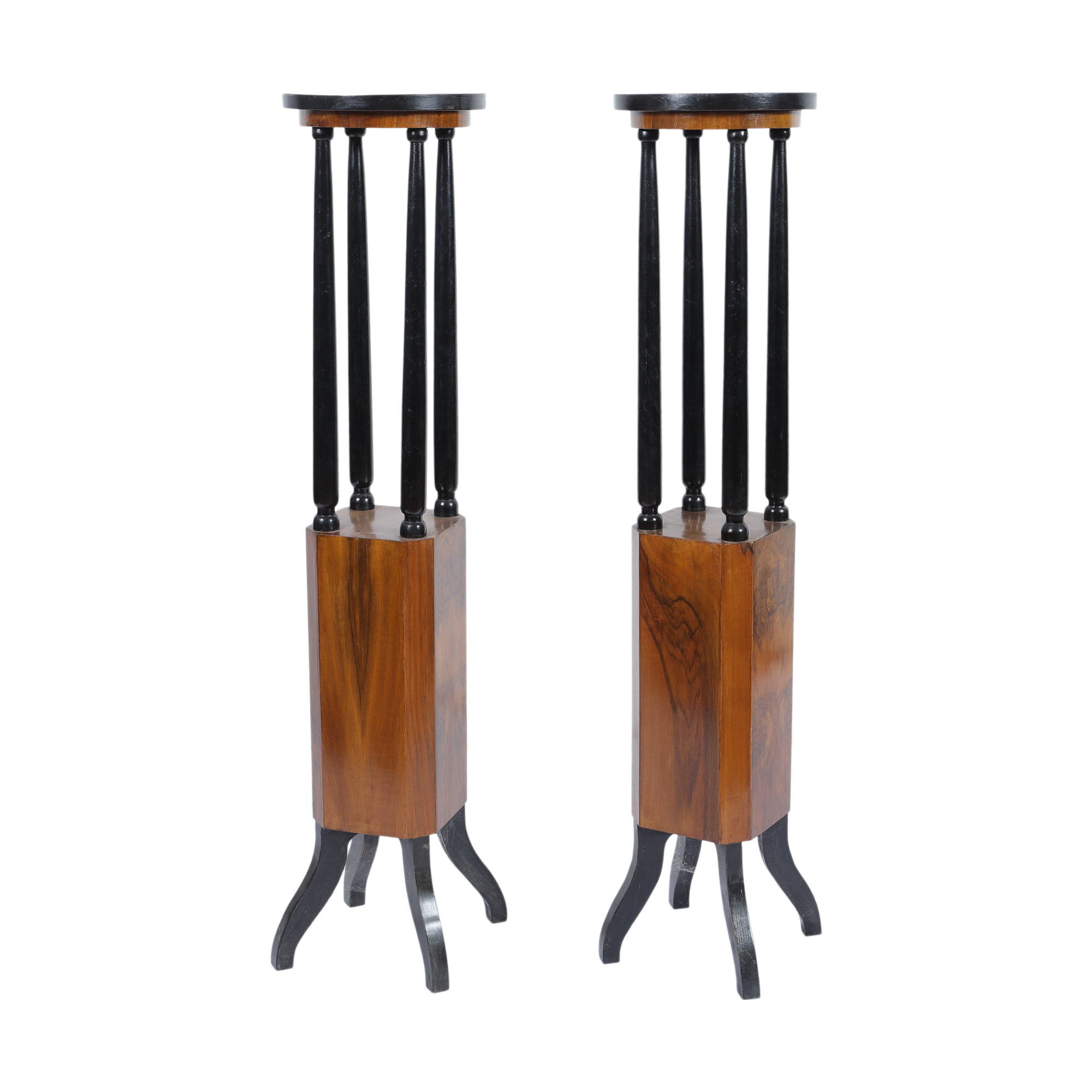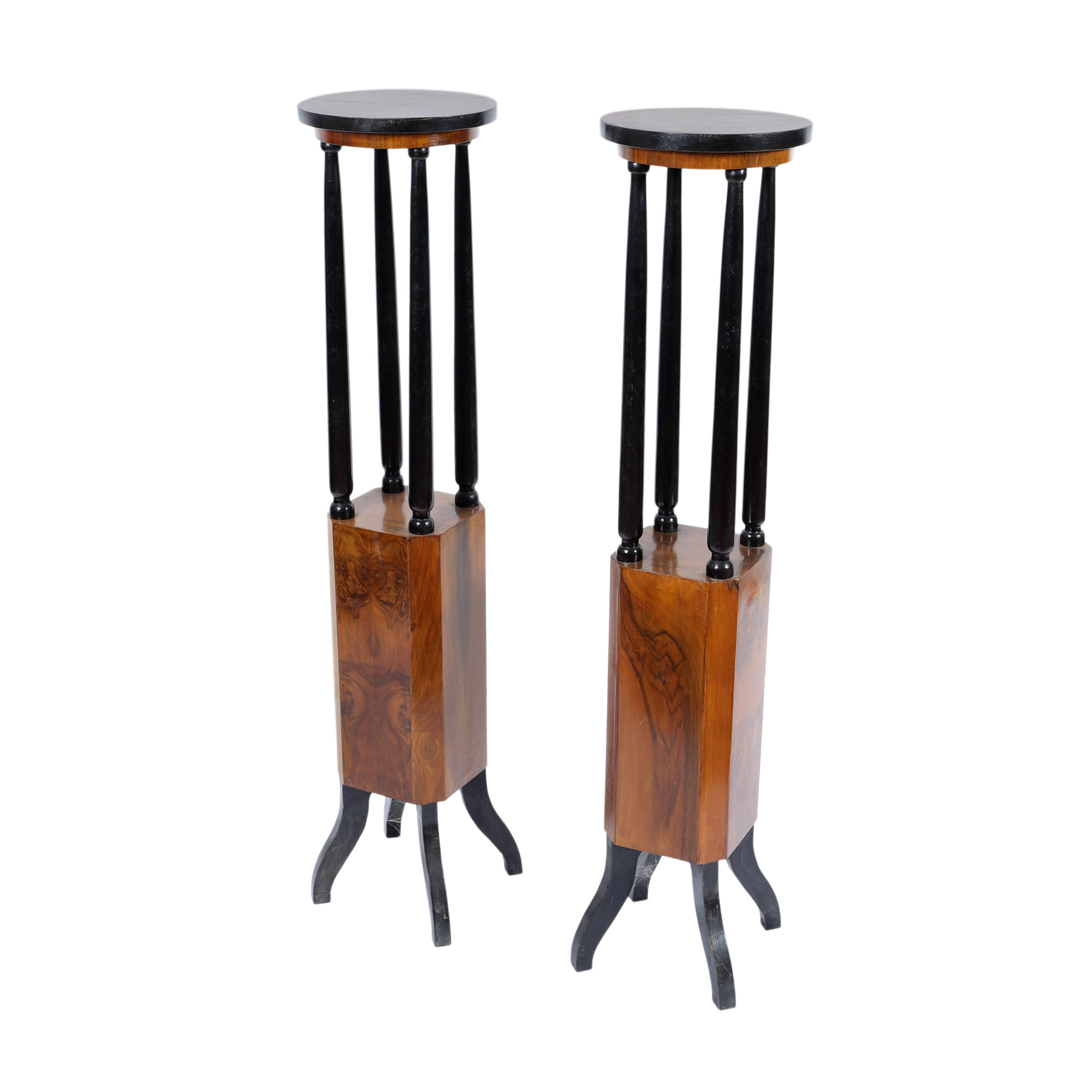 43. Lot format din două piedestale Art Deco, din lemn ebenizat și furniruit, cca. 1920-1930