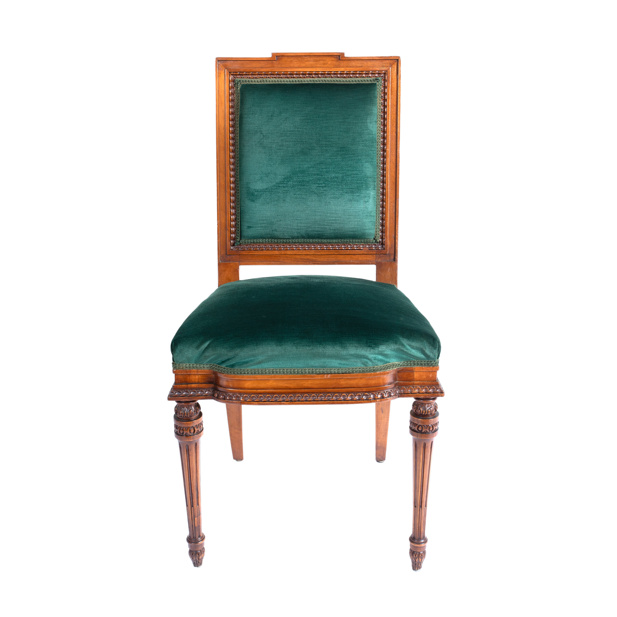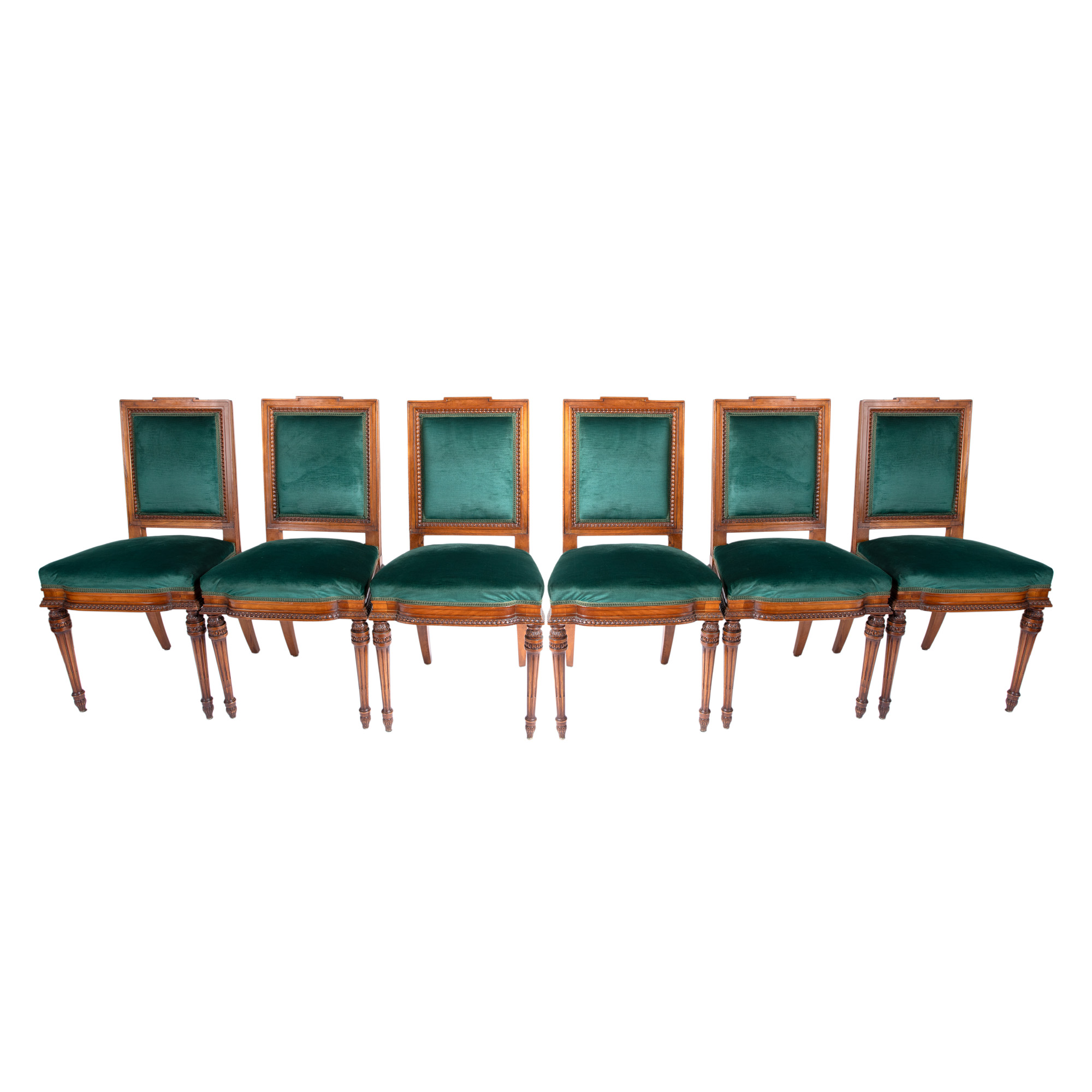 57. Lot format din șase scaune Louis XVI, din lemn de nuc, prima jumătate a sec. XX