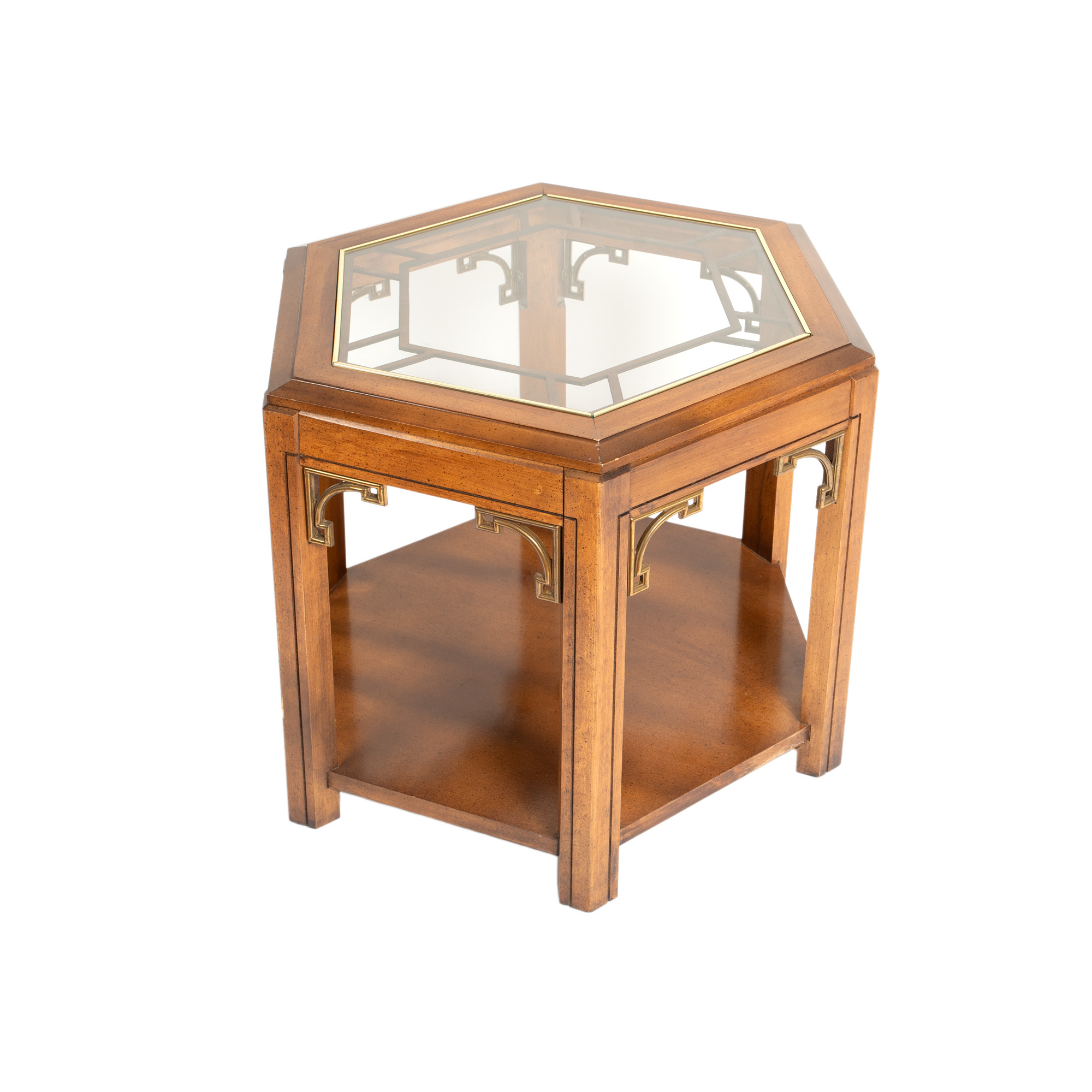 15. Masuță hexagonală în stil Mid-Century Modern, decorată cu elemente din alamă, de inspirație asiatică