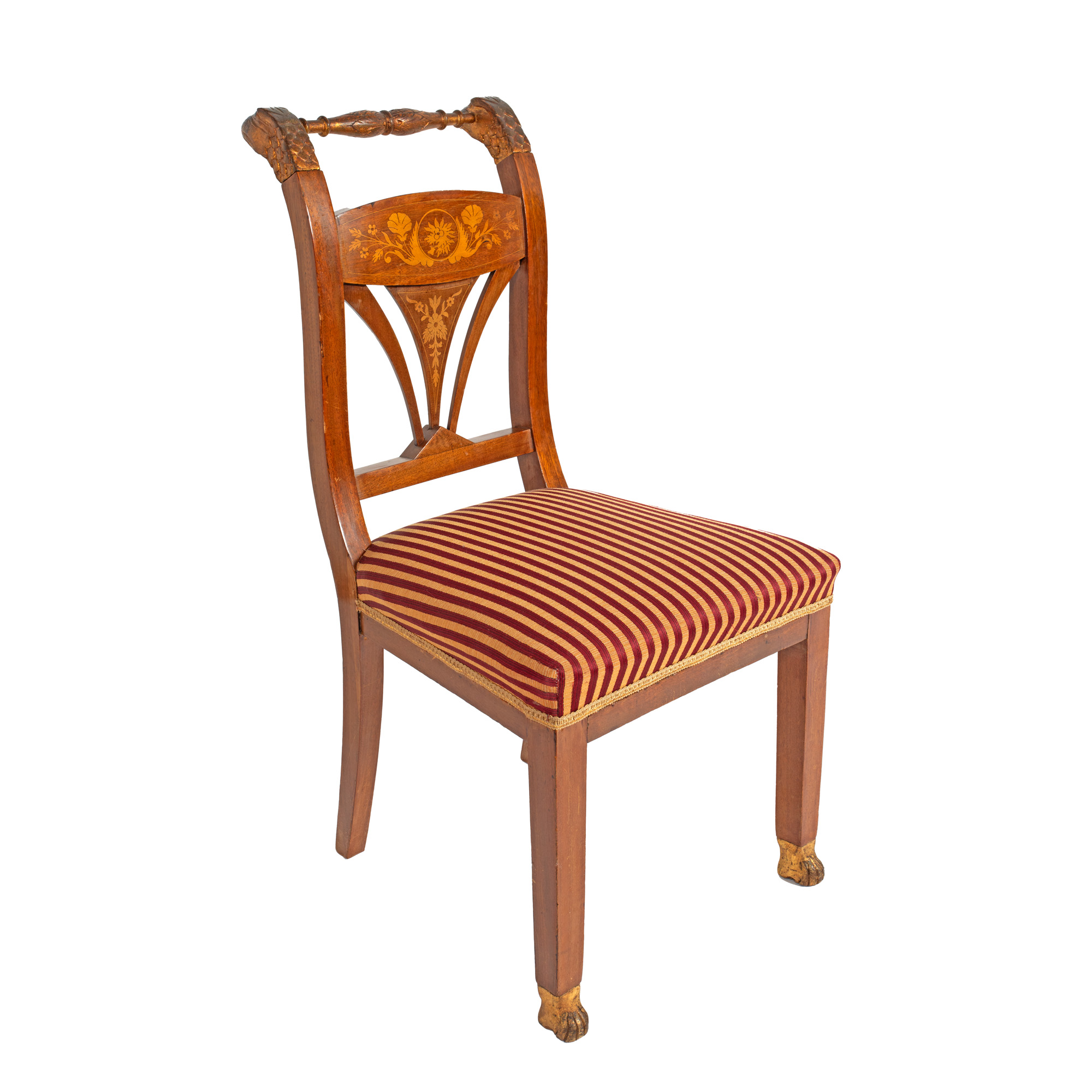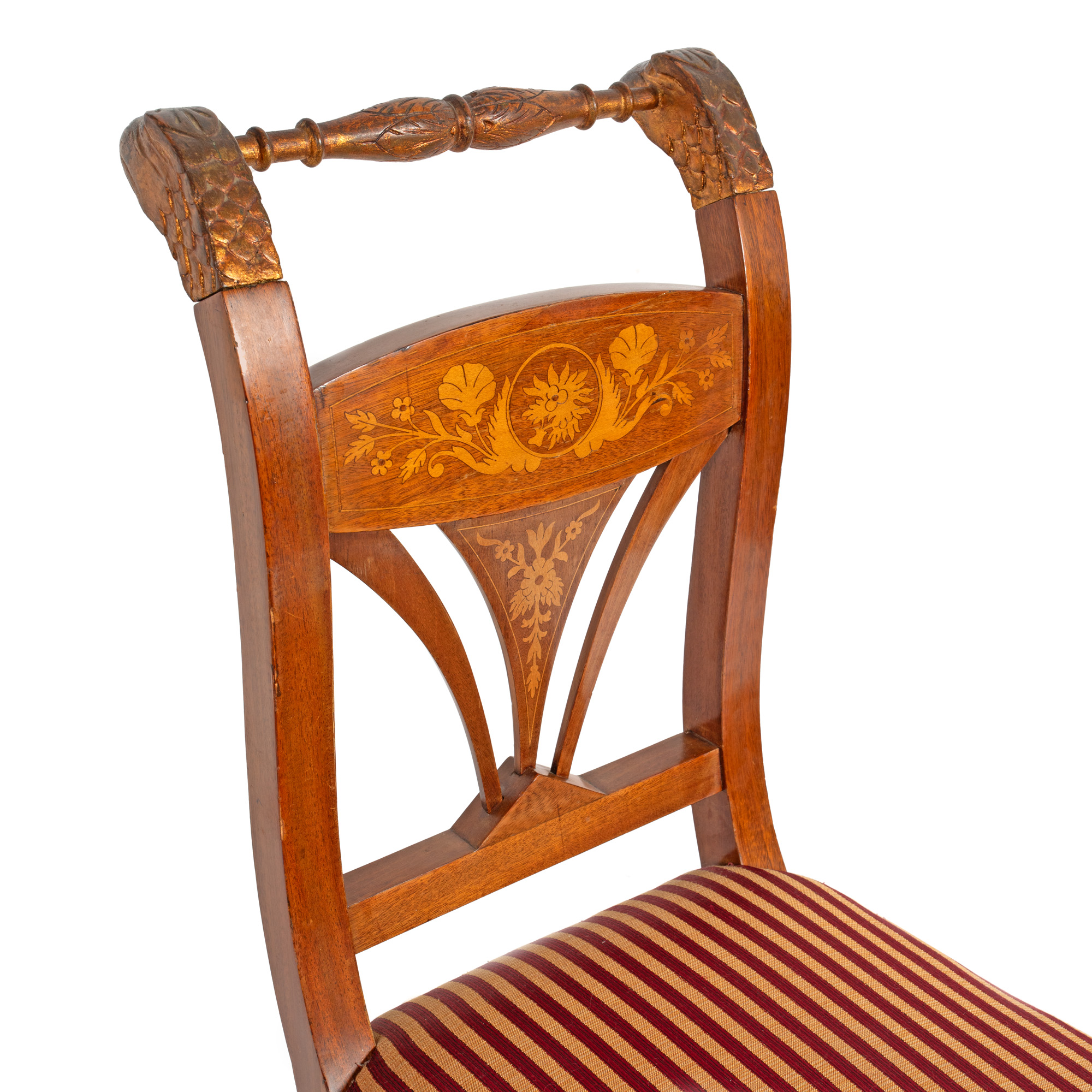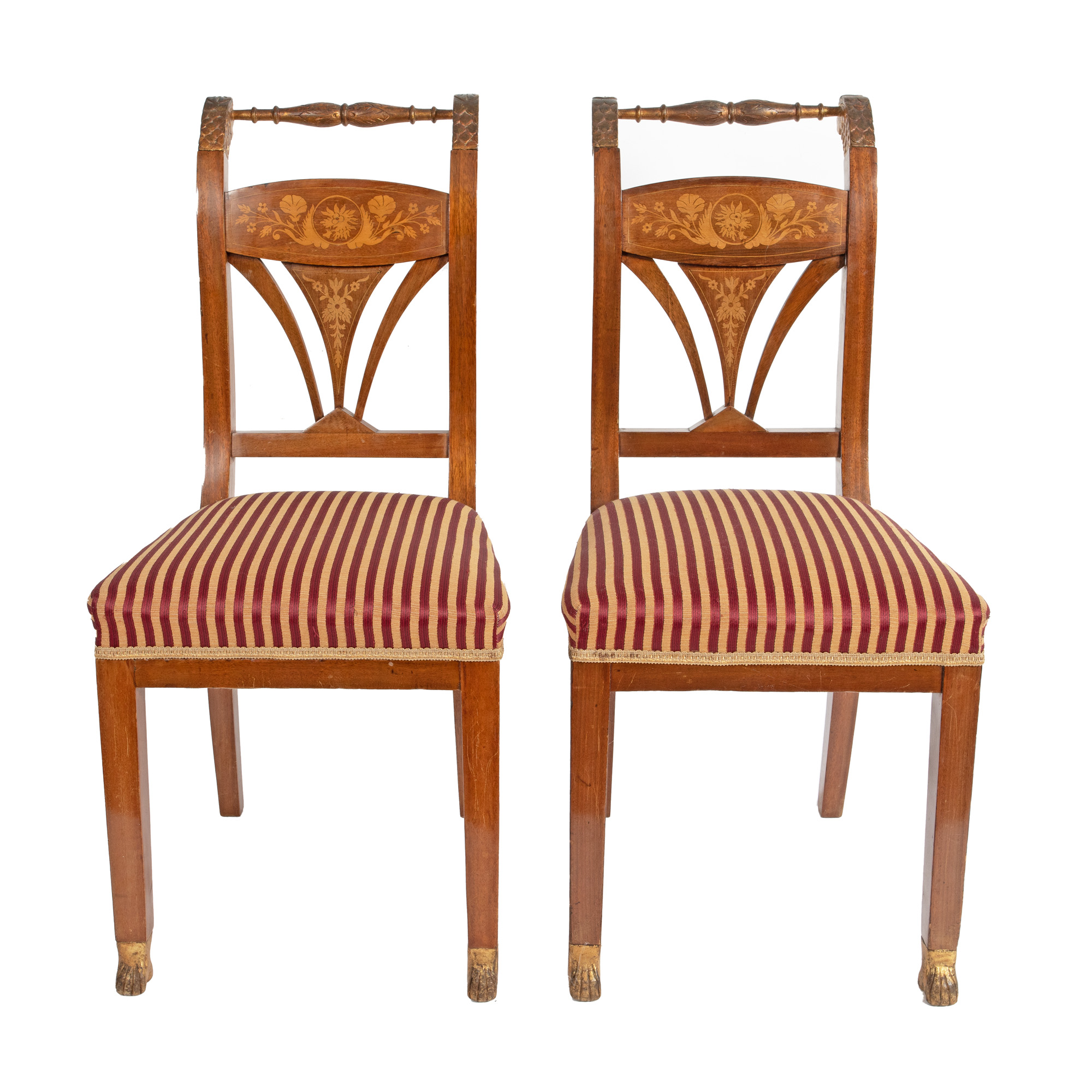 50. Pereche de scaune în manieră Empire, marchetate cu lauri și maci, prima jumătate a sec. XX
