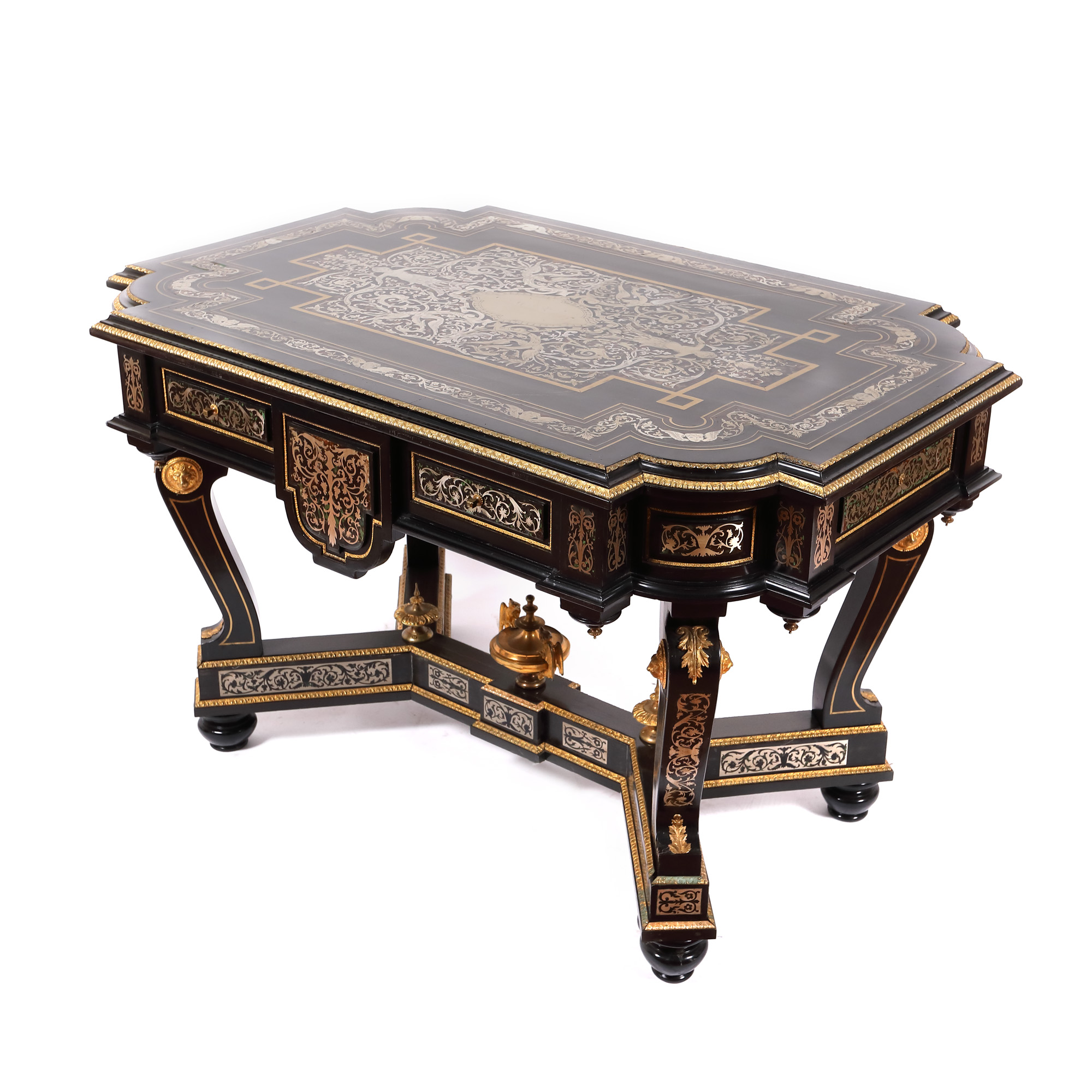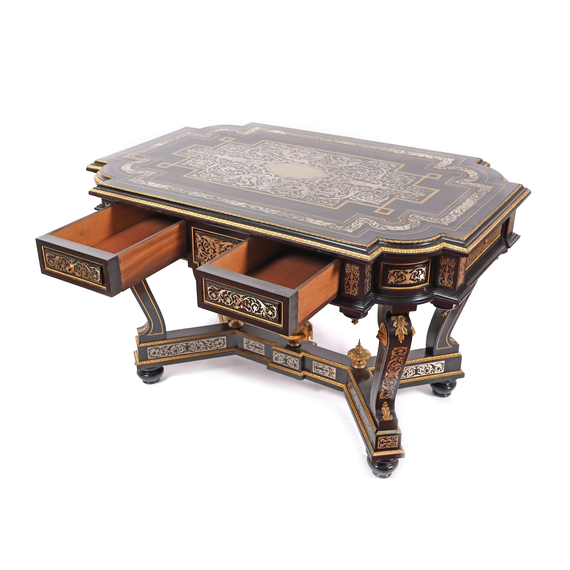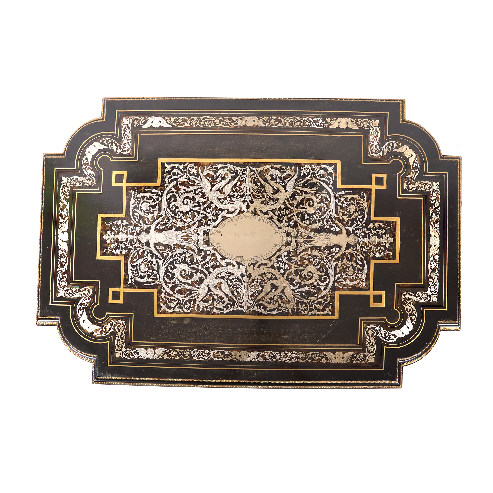 32. Birou tip Boulle în stil Napoleon al III-lea, decorat cu intarsii și decorațiuni din bronz, sfârșitul sec. XIX