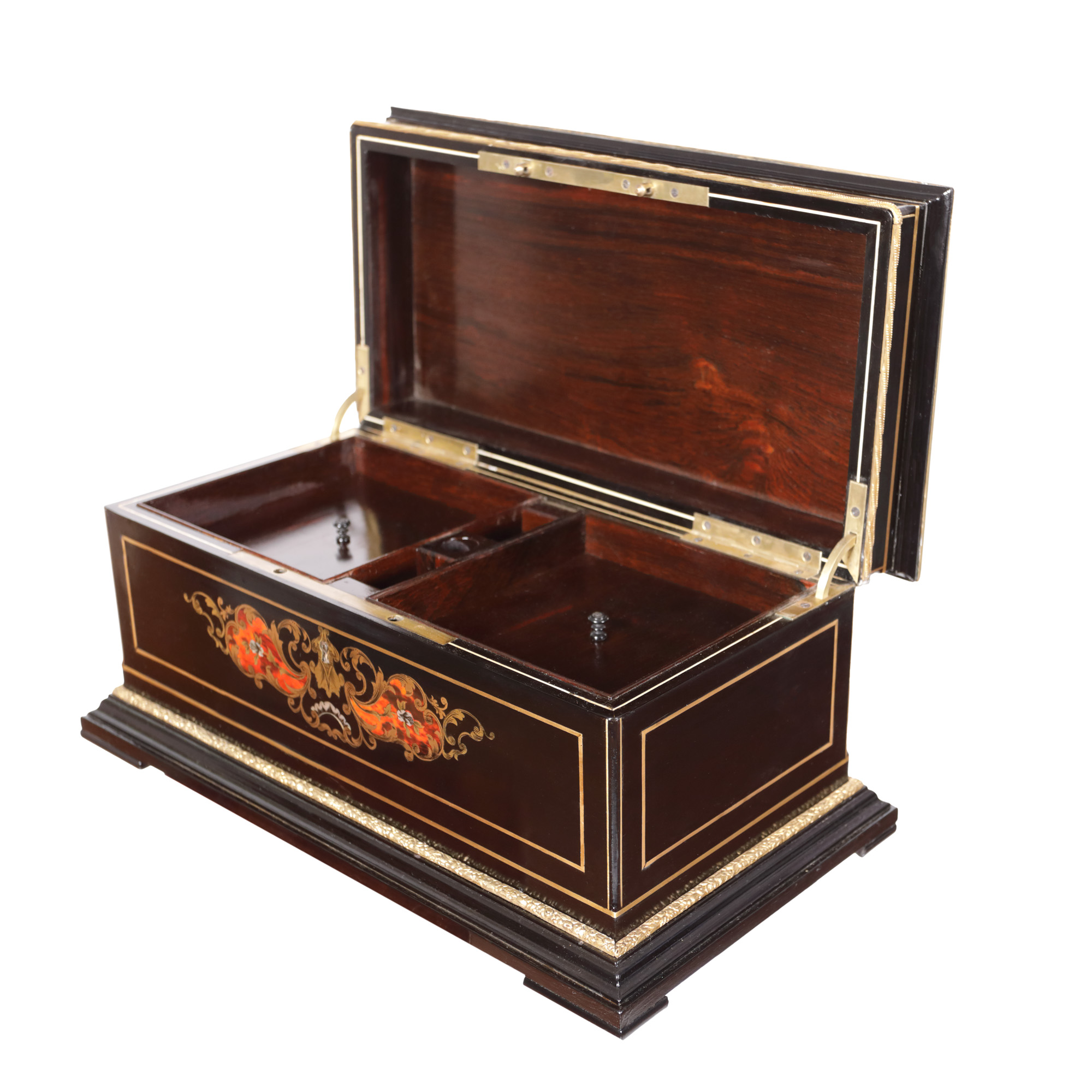 40. Casetă din lemn în stil Napoleon al III-lea, decorată cu buchete de flori policrome, începutul sec. XX