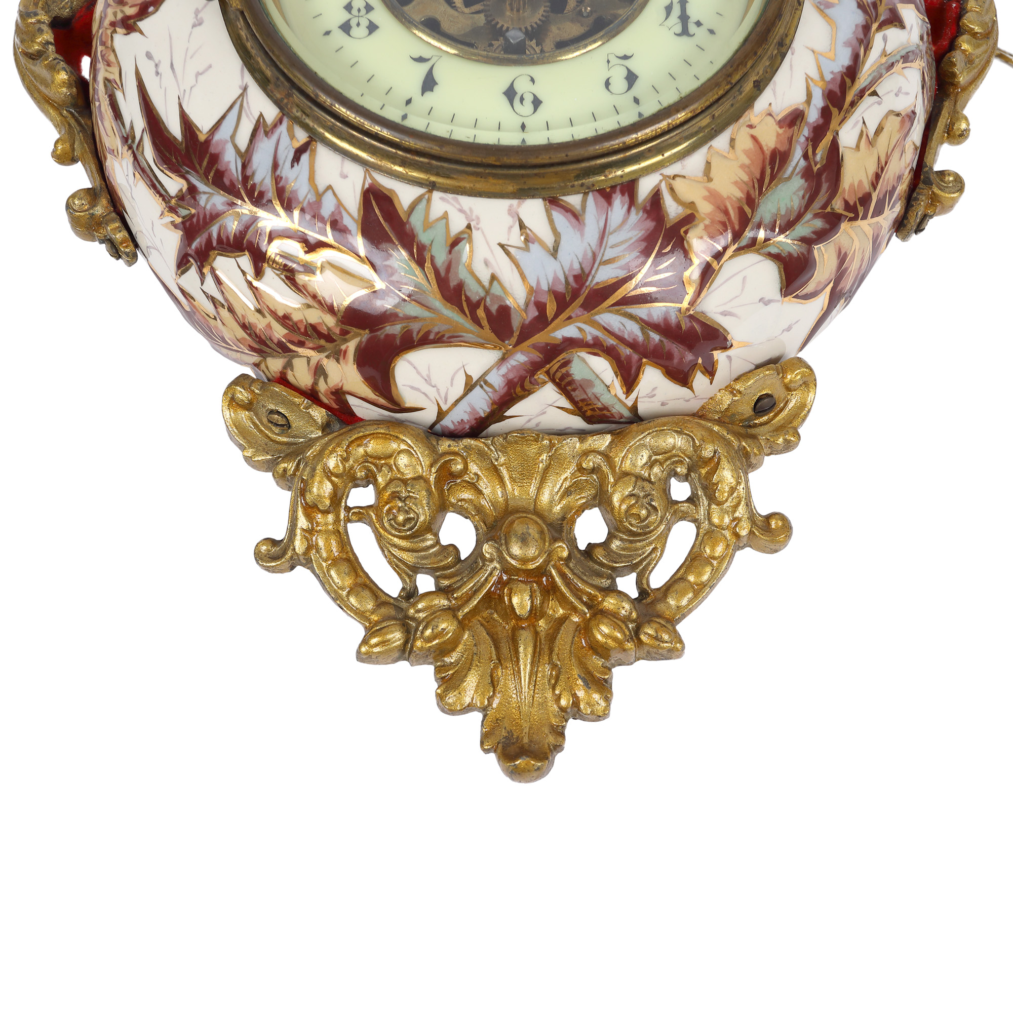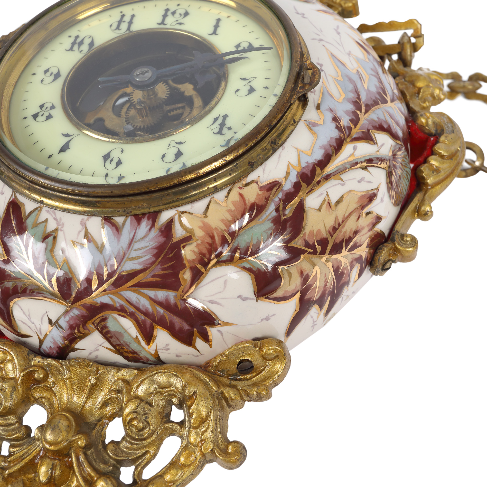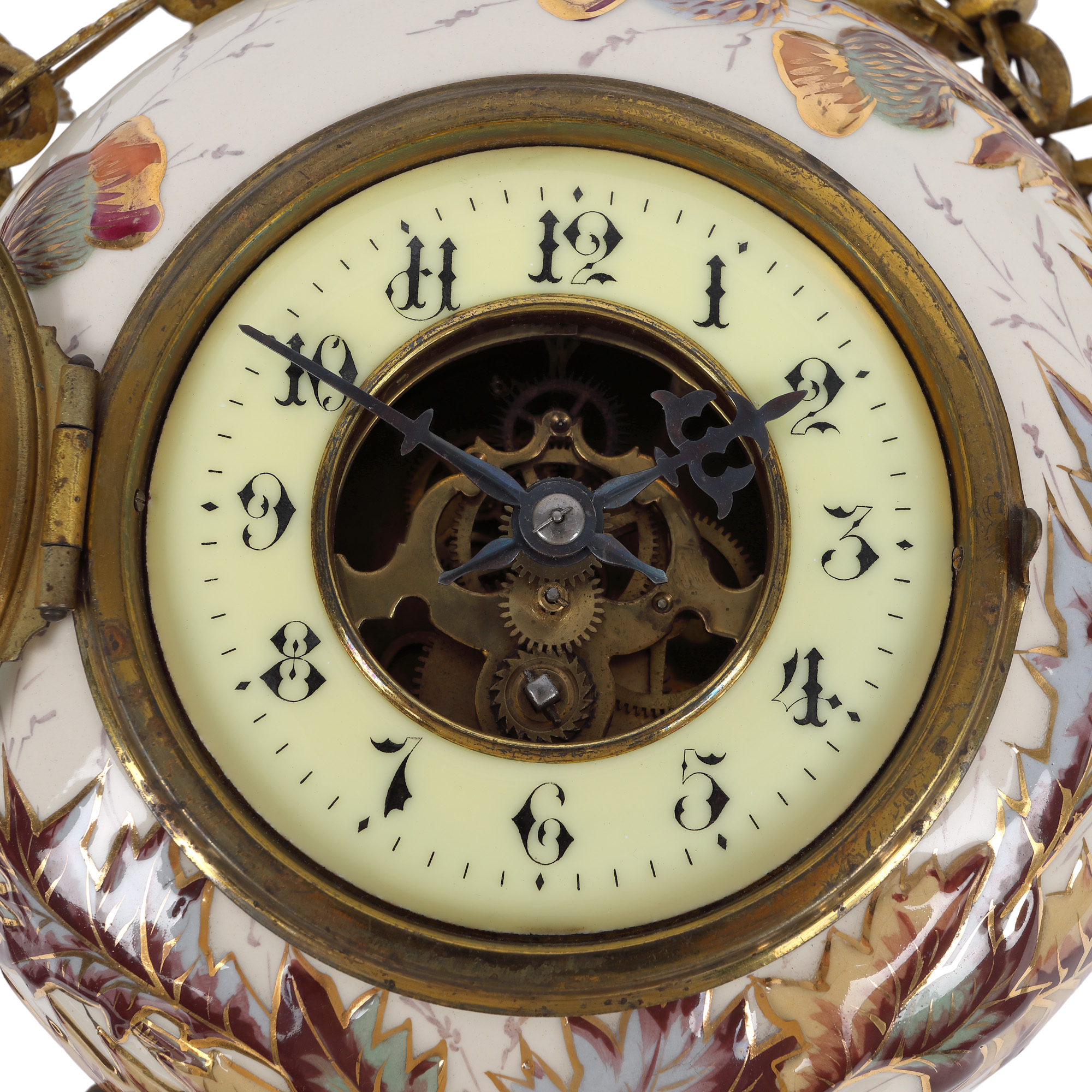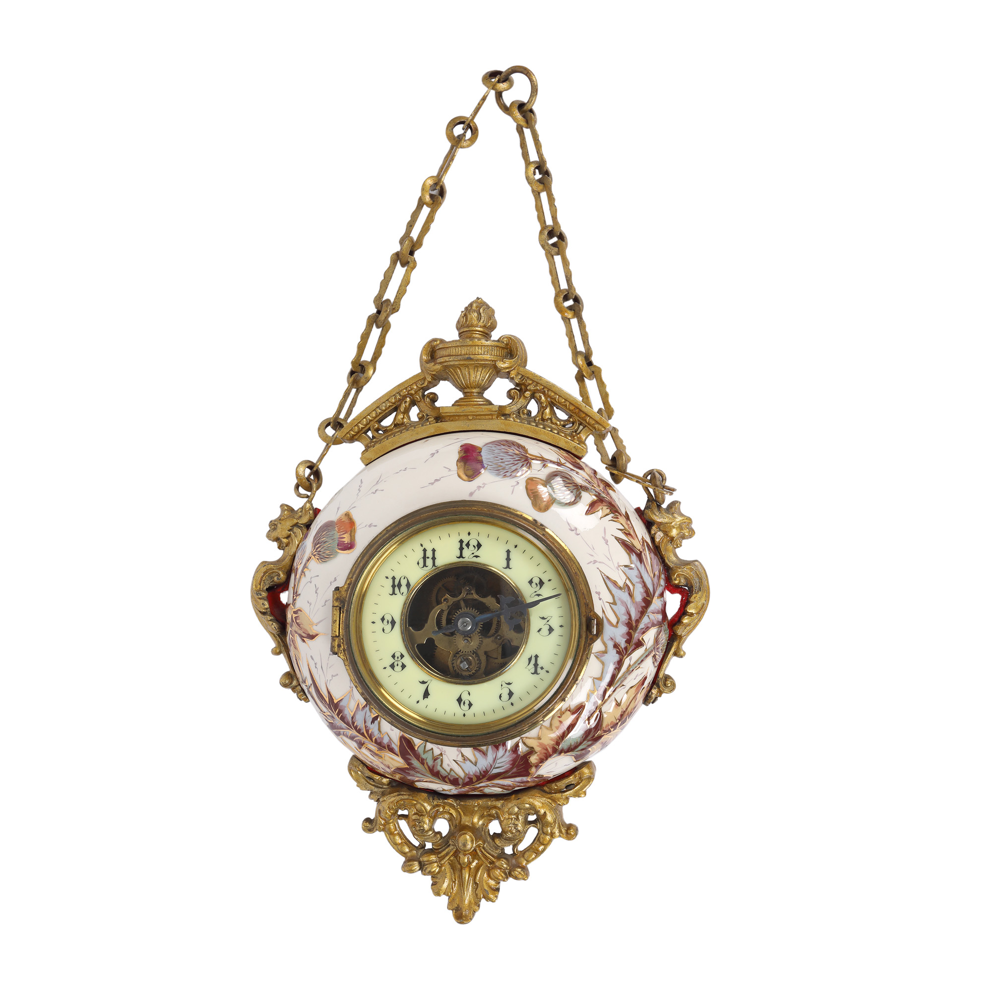 56. Ceas de perete din porțelan pictat și bronz, decorat cu ciulini, atelier Eugène Farcot, sfârșitul sec. XIX