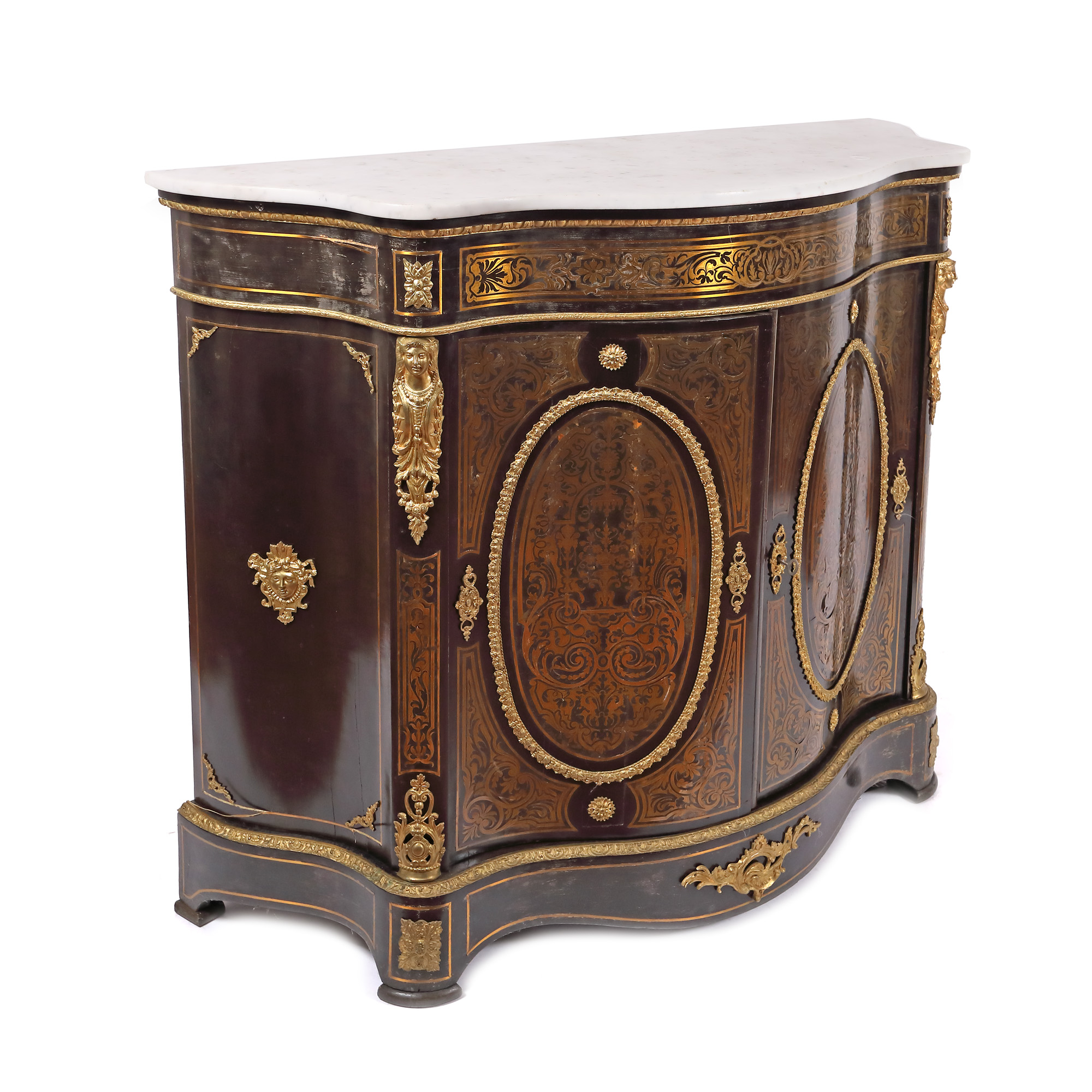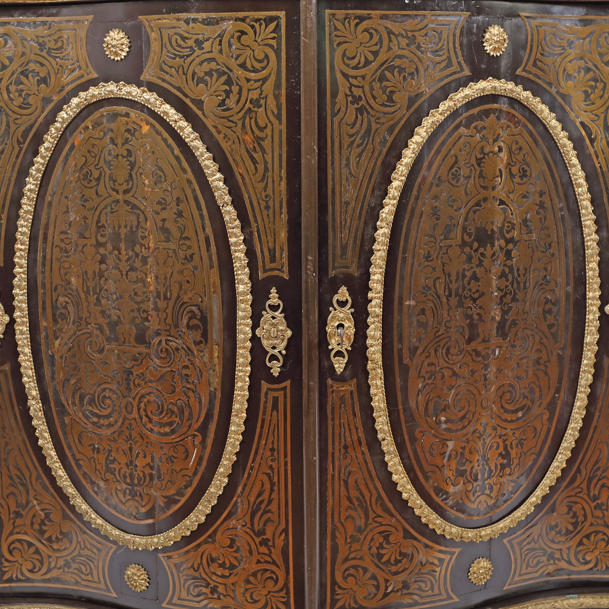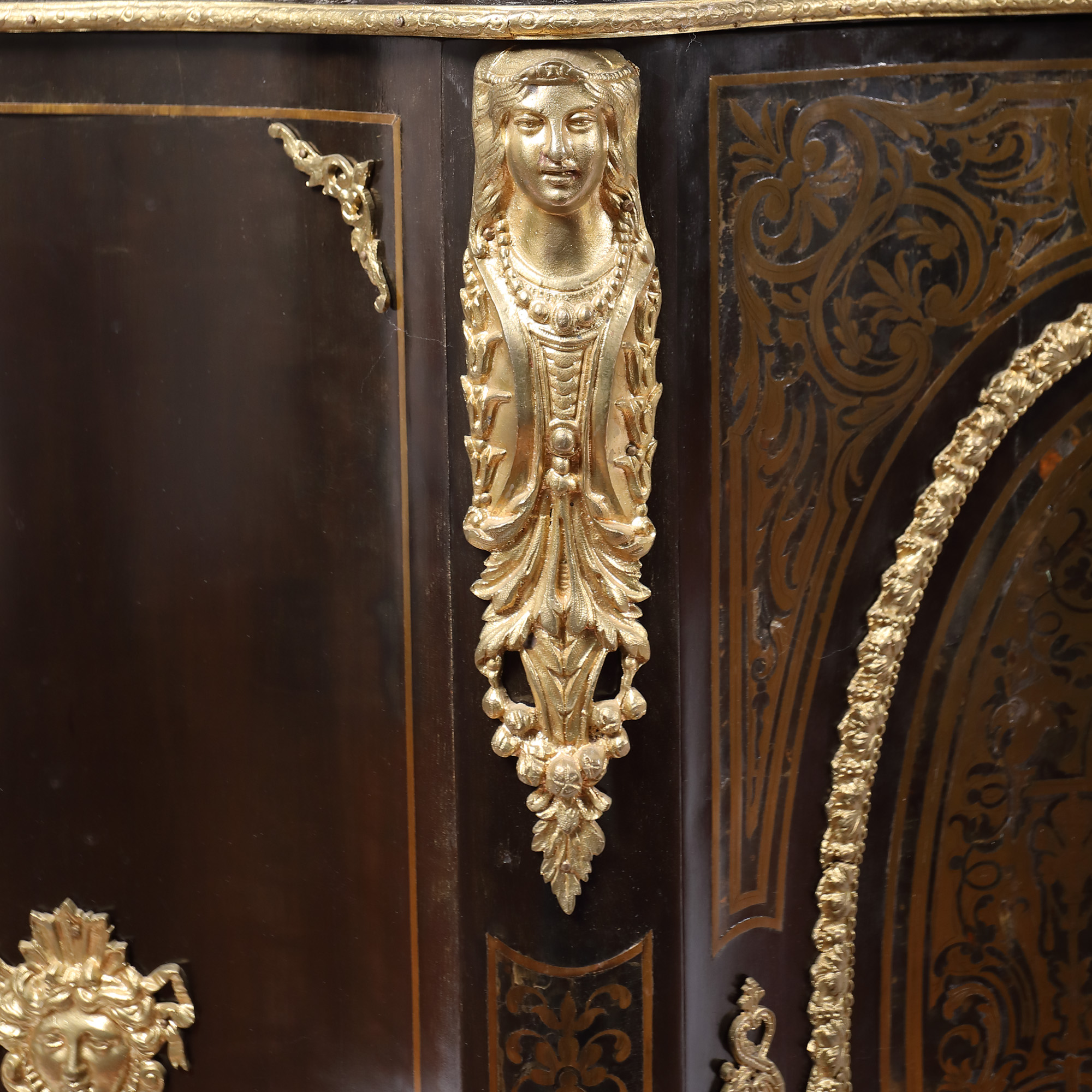 31. Comodă tip Boulle în stil Napoleon III, ornată cu intarsii și decorațiuni din bronz, sfârșitul sec. XIX