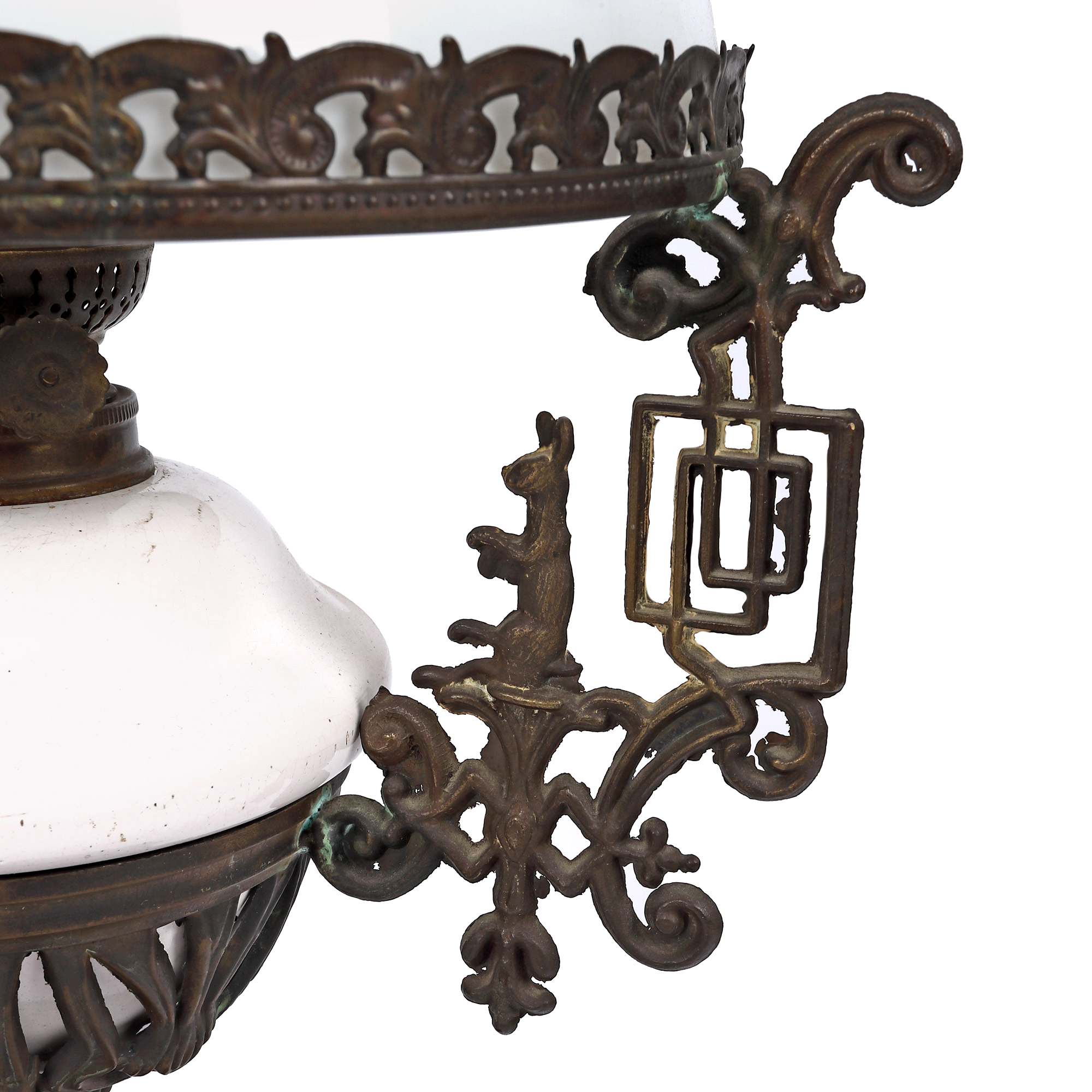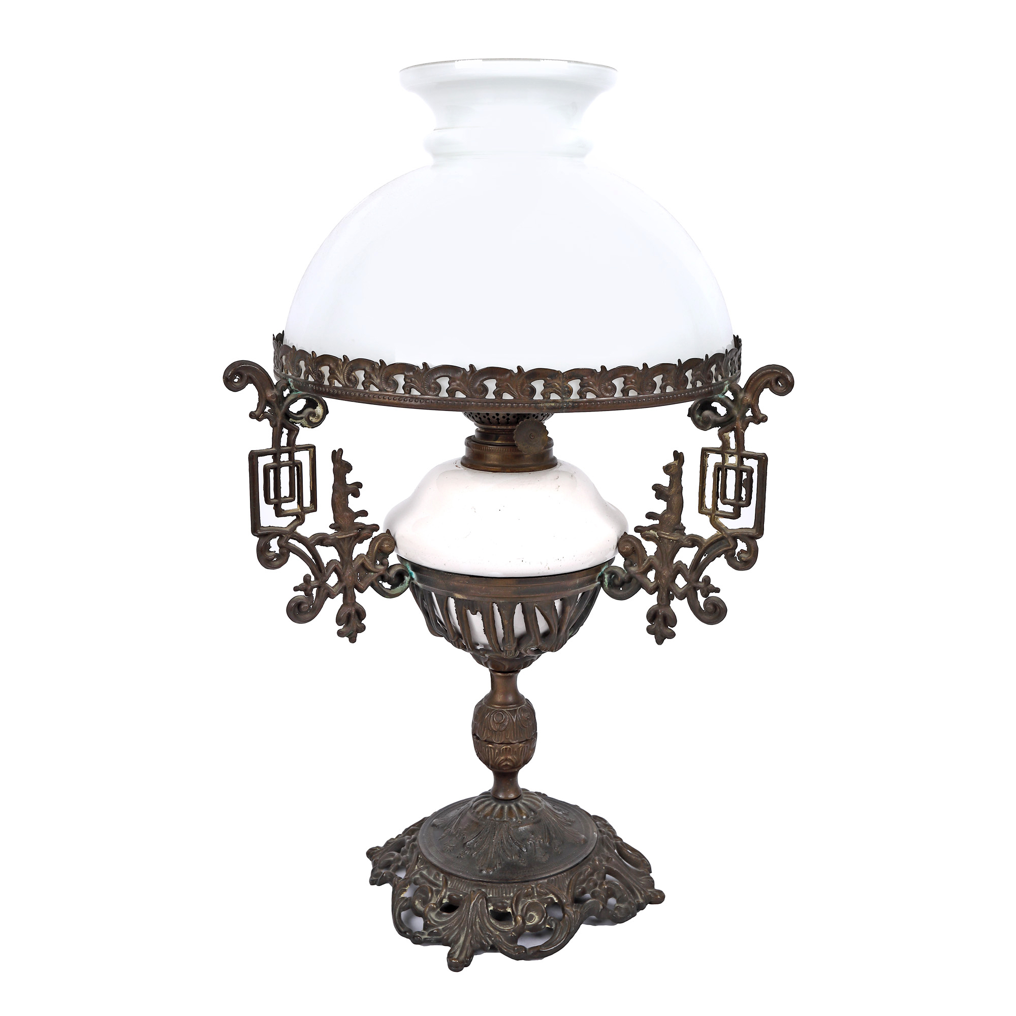 53. Lampă Belle Epoque, cu abajur din sticlă opalină