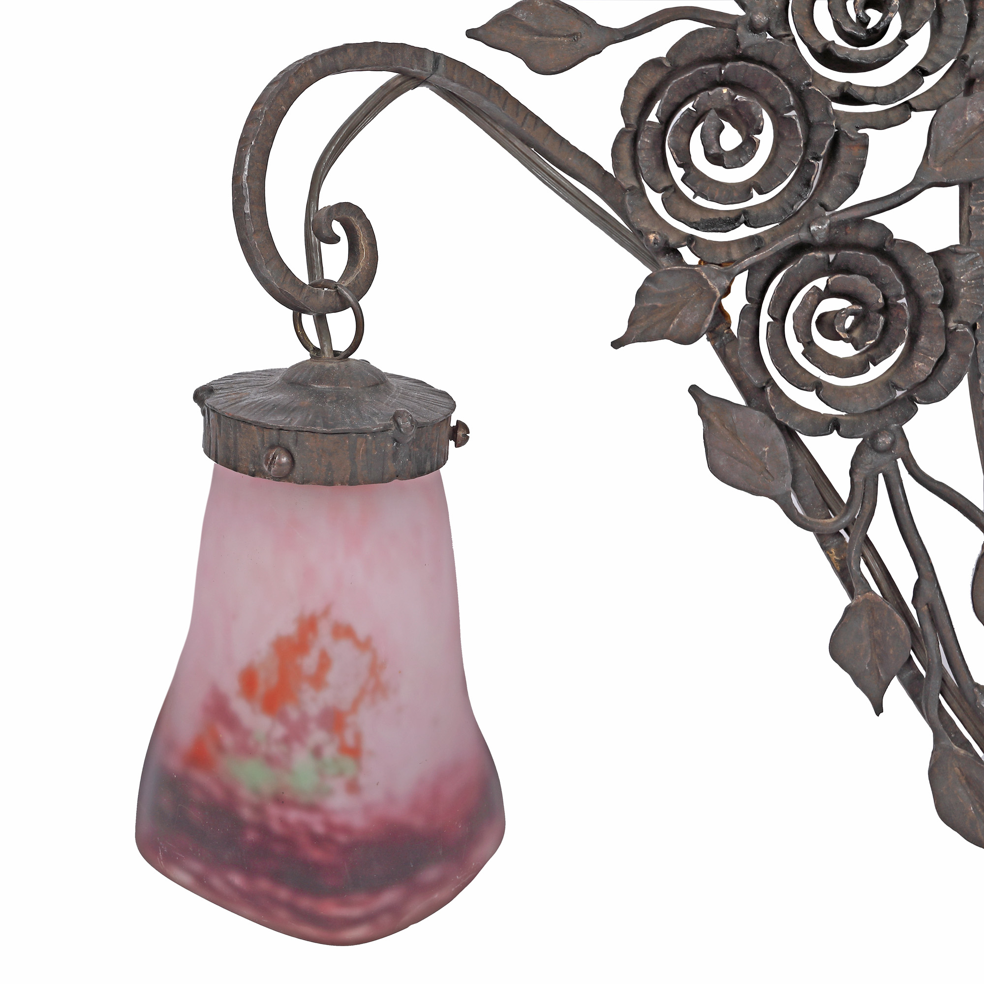 20. Oglindă Art Deco din fier forjat, cu aplice din sticlă Degué, cca. 1920-1940