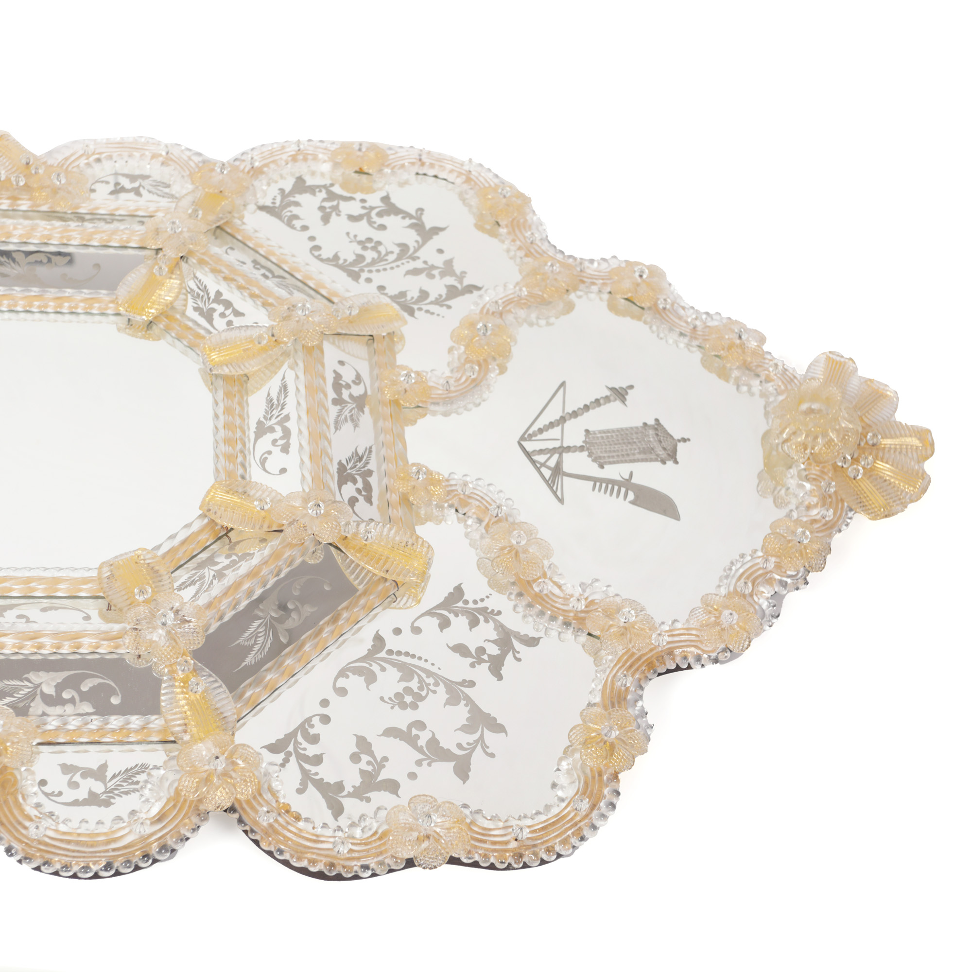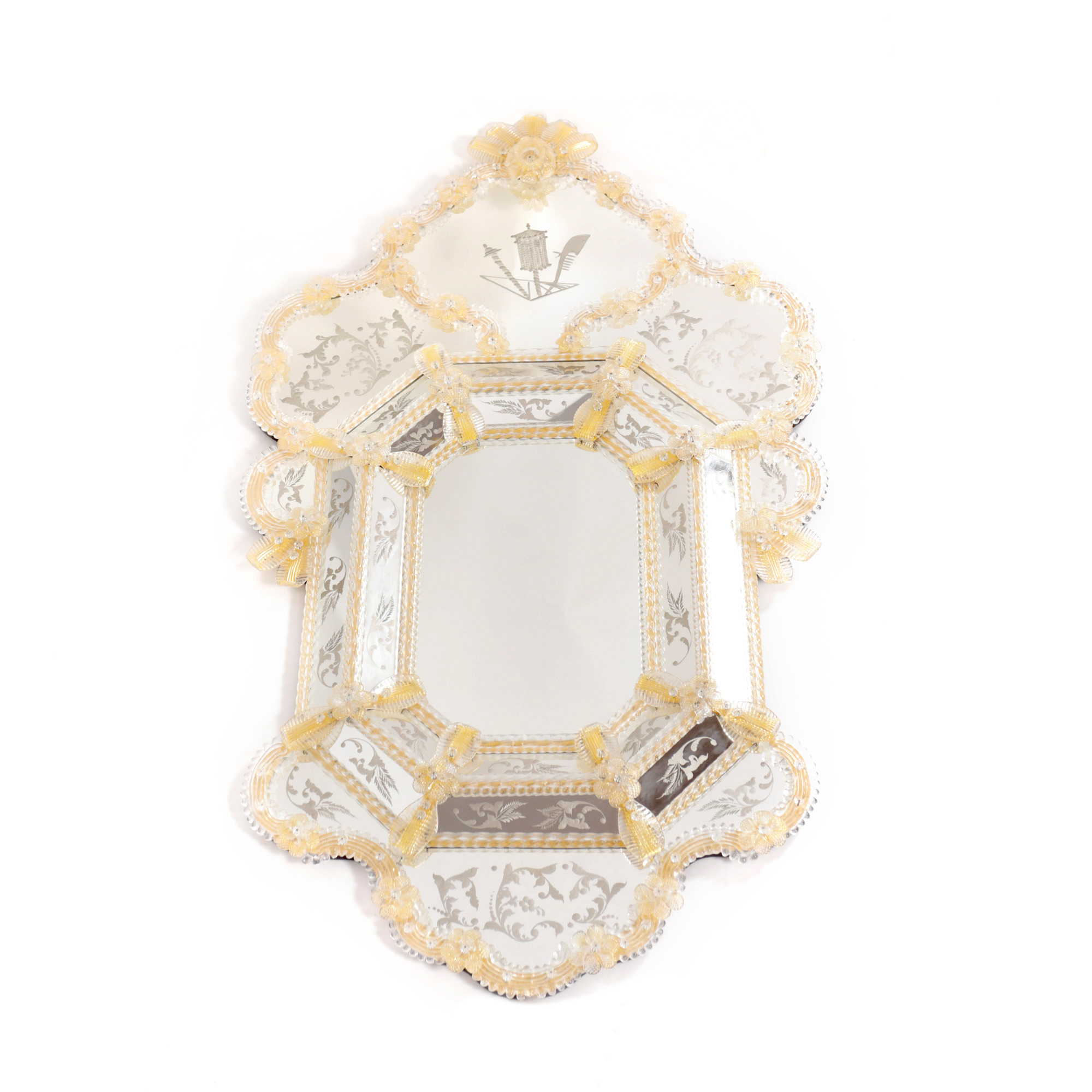 57. Oglindă venețiană de perete în manieră Neo-renaștere italiană, din sticlă Murano [A doua jumătate a sec. XX]