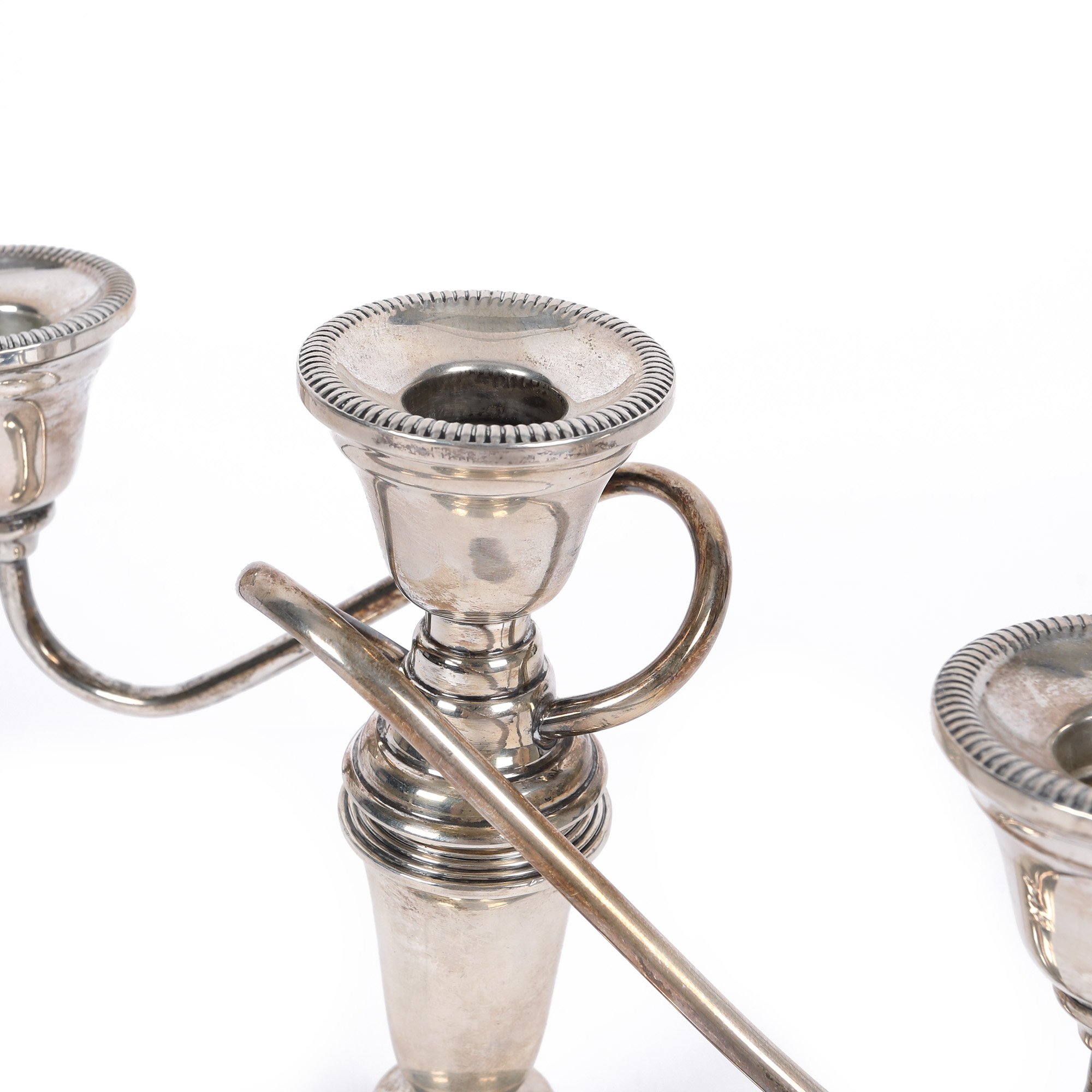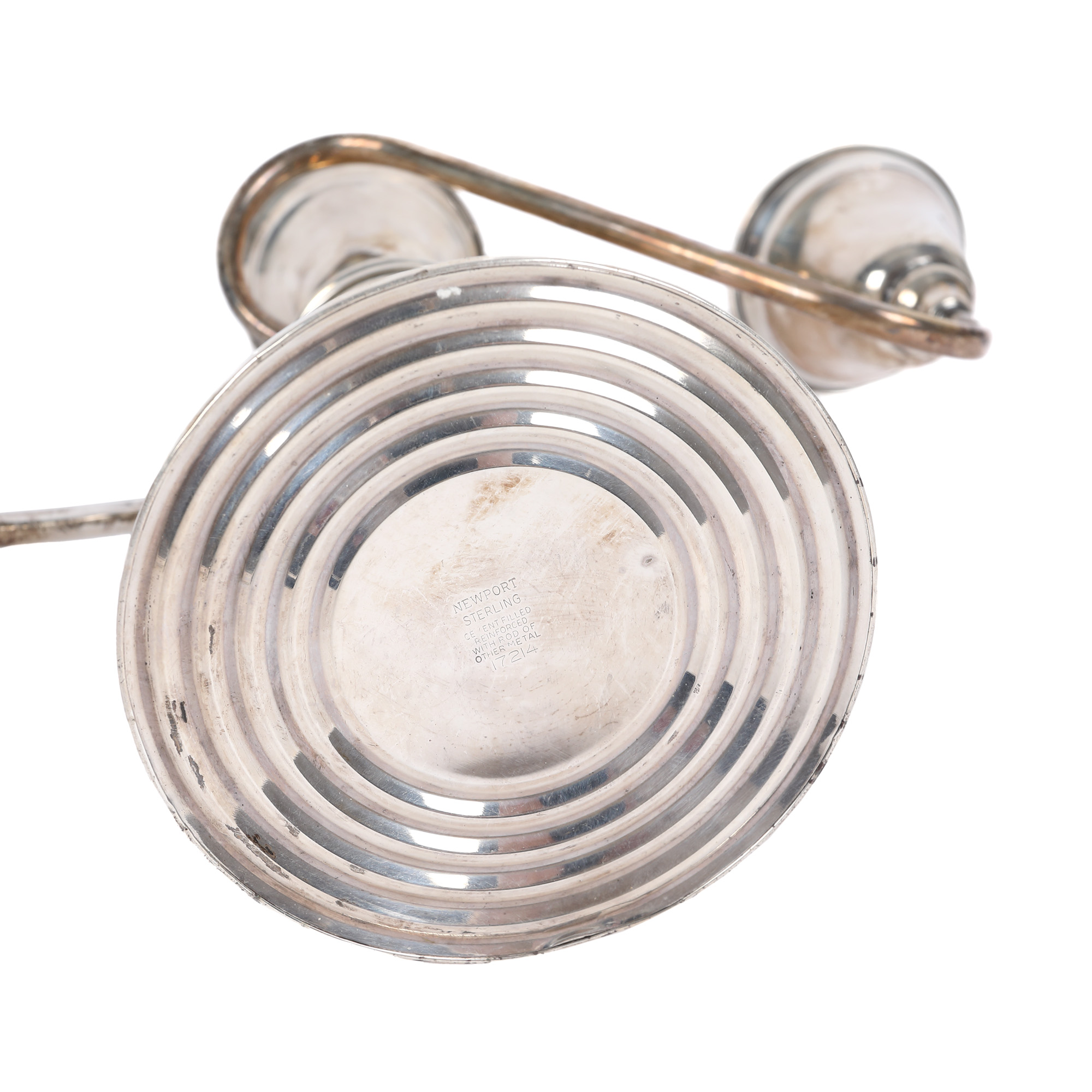 34. Pereche de sfeșnice Mid-Century din argint Newport, cu trei lumini [A doua jumătate a sec. XX]