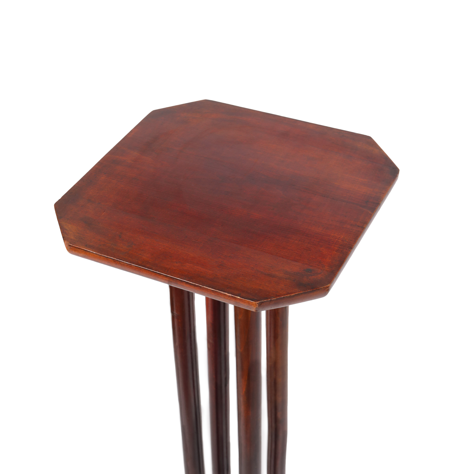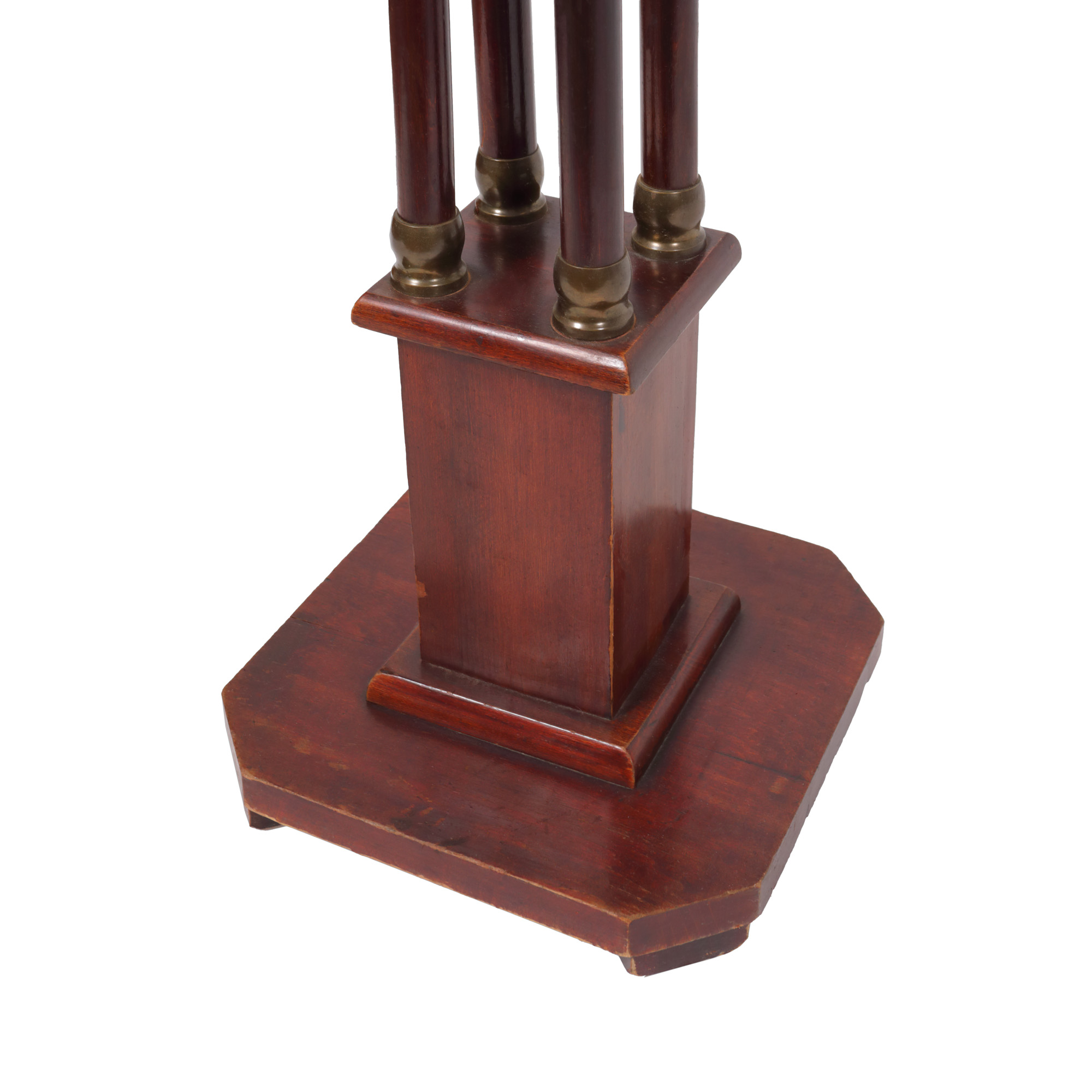 11. Piedestal Art Deco cu bază pătrat profilată, cu patru picioare colonete prinse în anouri din alamă, cca. 1930-1940