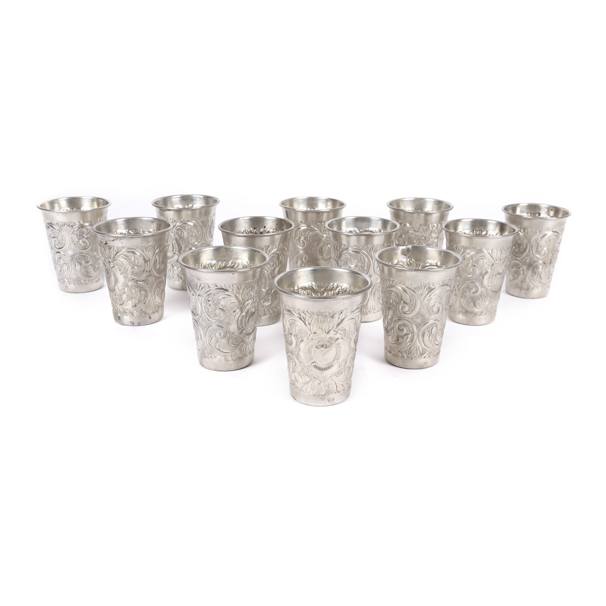 60. Set de 12 pahare din argint, decorat cu motive vegetale, prima jumătate a sec. XX