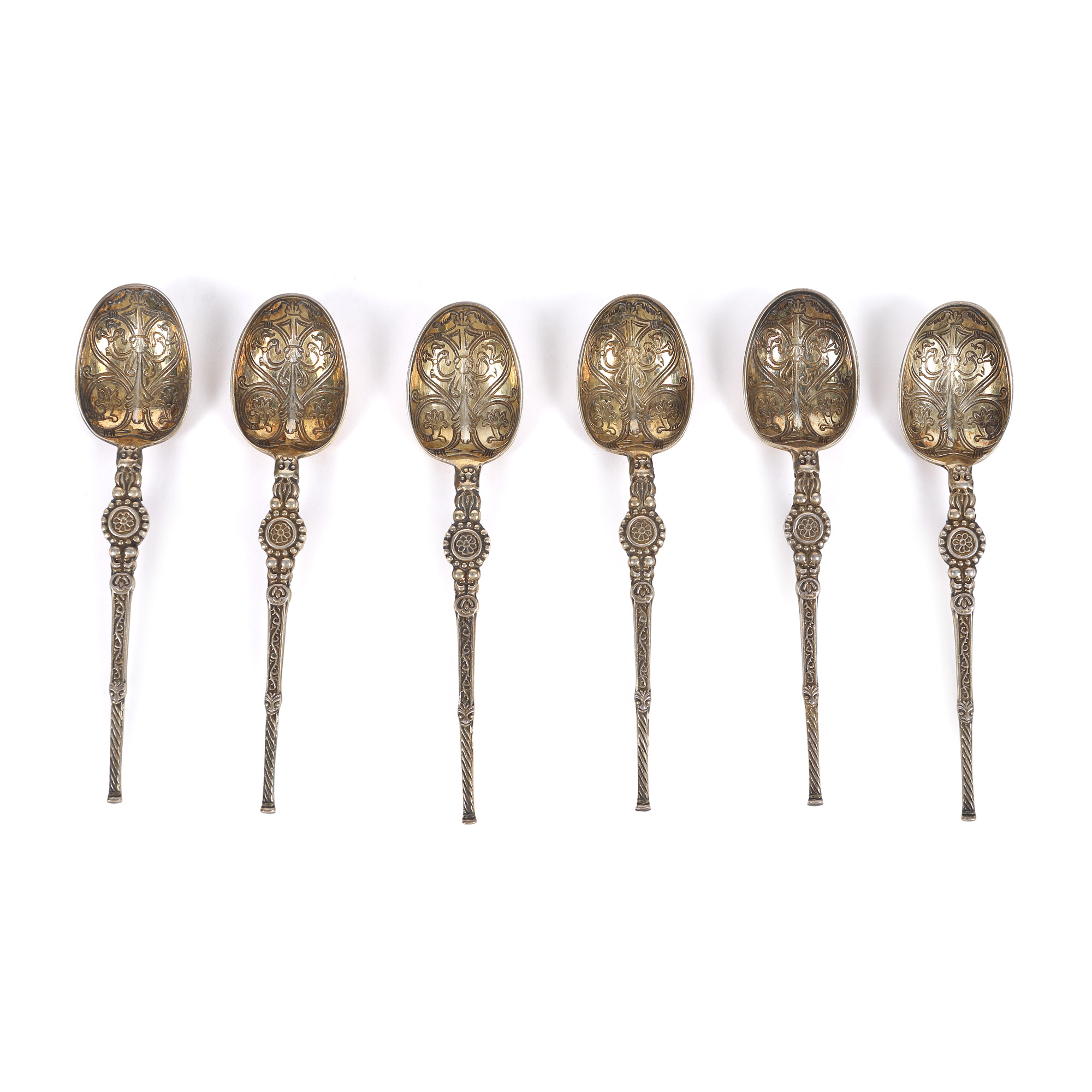 38. Set de șase lingurițe din argint aurit, atelier Barker Brothers Ltd, 1927, în cutie originală