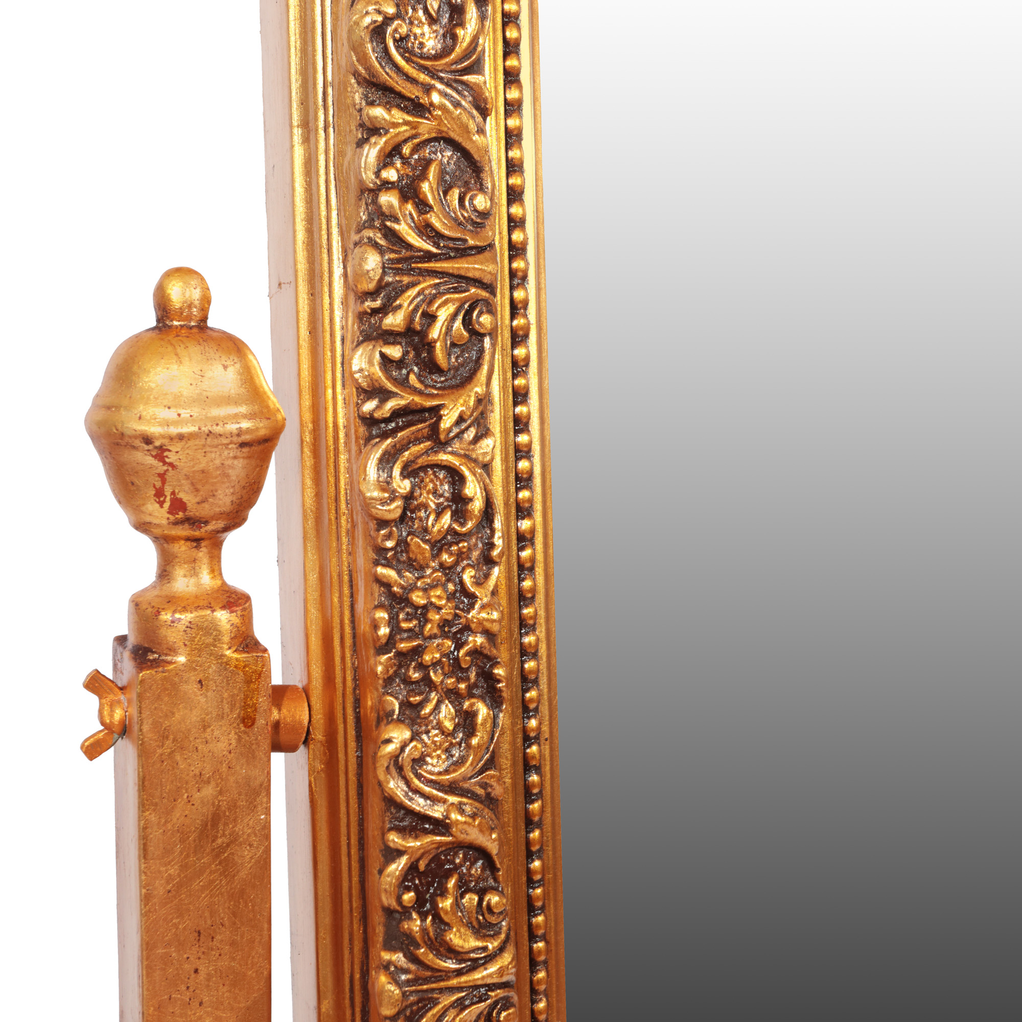 40. Oglindă tip Psyché, din lemn aurit, decorată cu motive vegetale și perlate [Sec. XX]