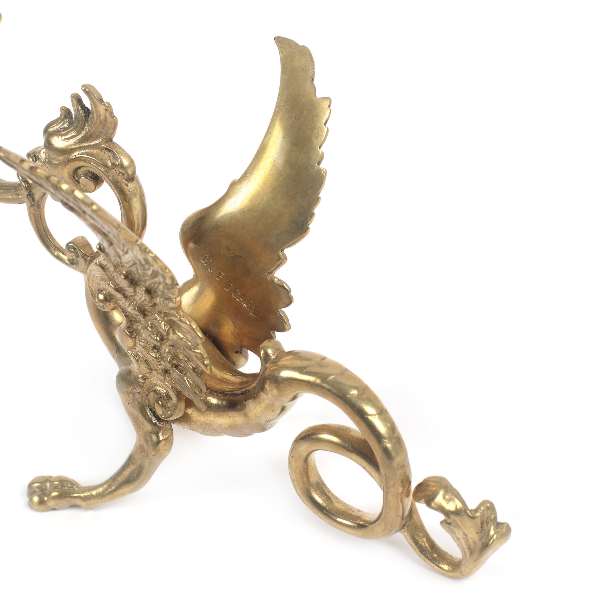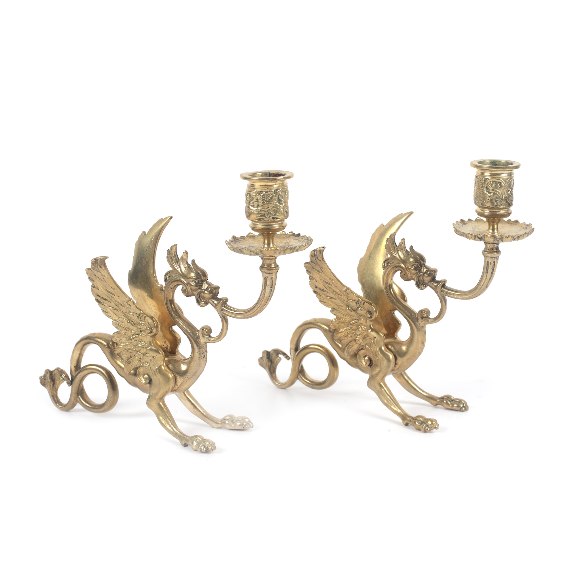 22. Pereche de sfeșnice Henri Picard din bronz aurit, în formă de grifon, cca. 1860