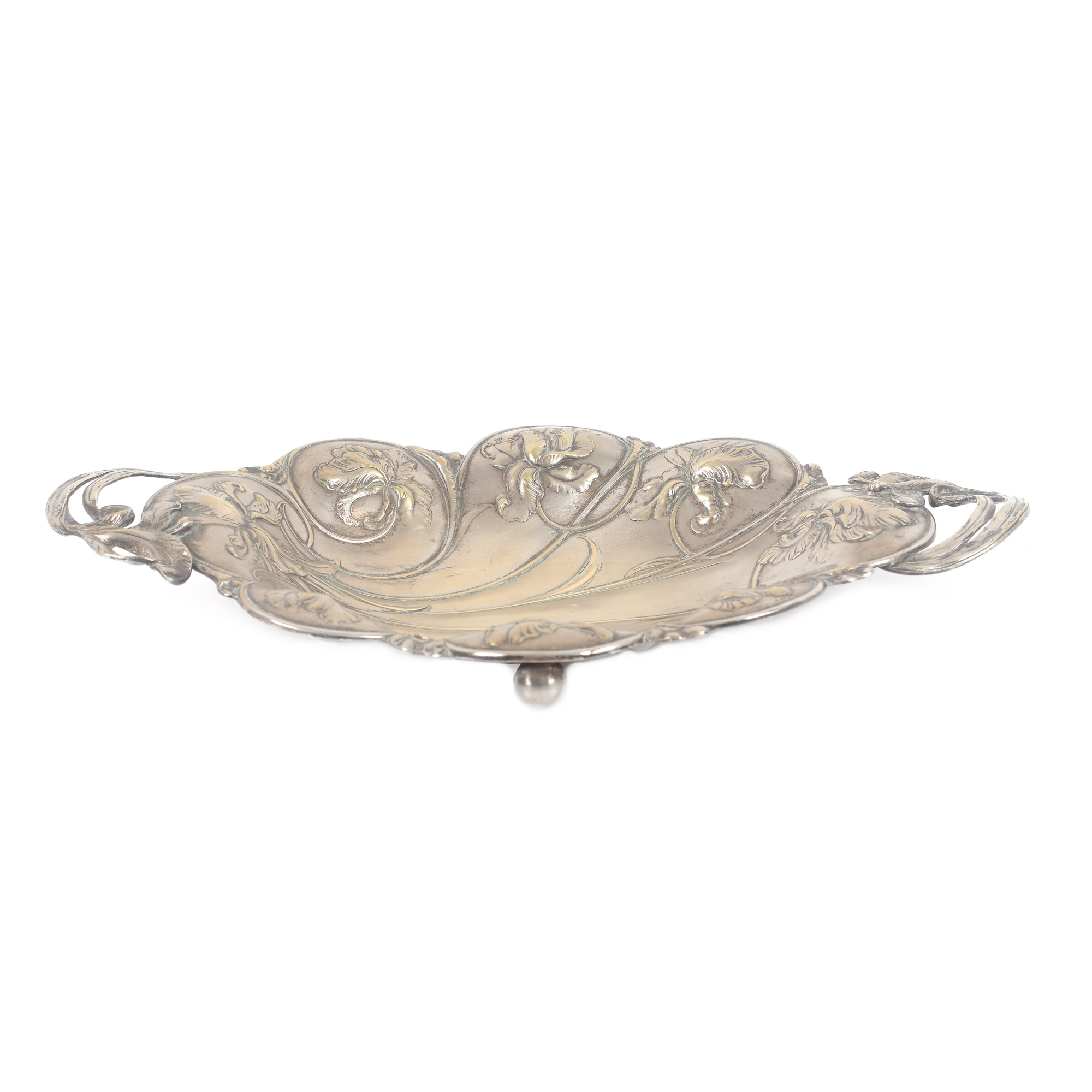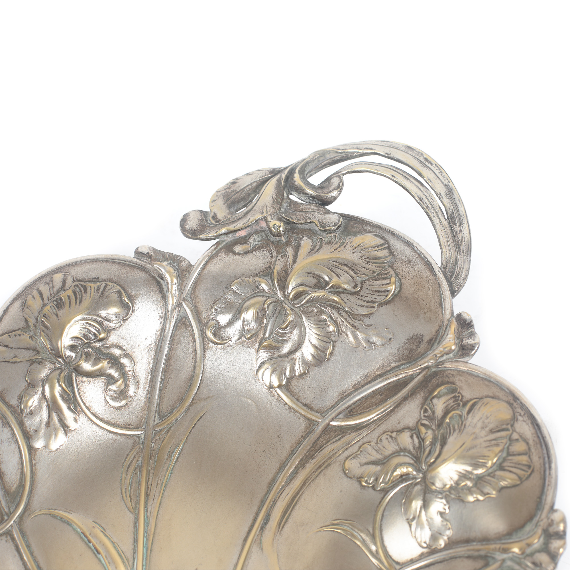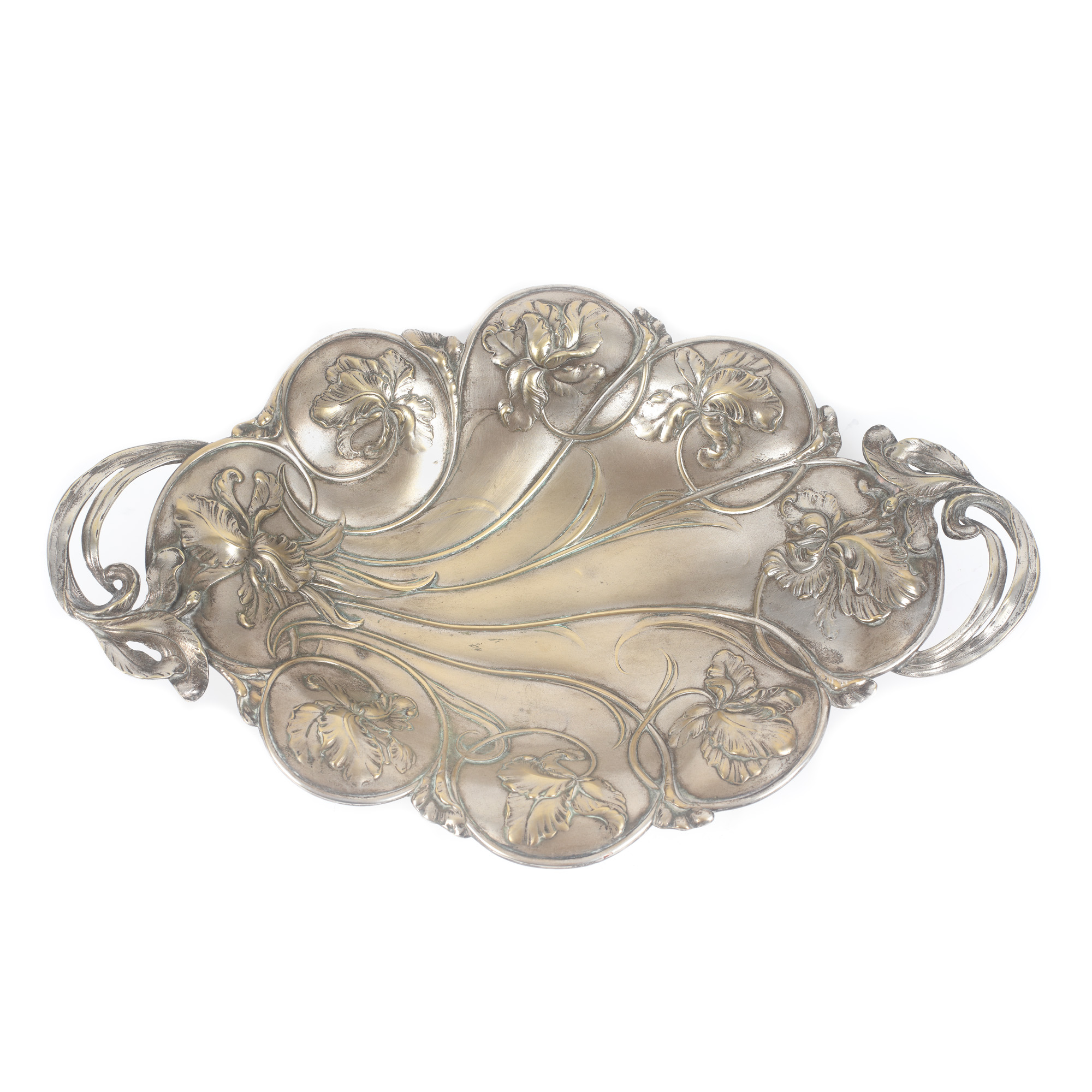 37. Platou Art Nouveau cu anse, decorat cu flori de iris, cca. 1900