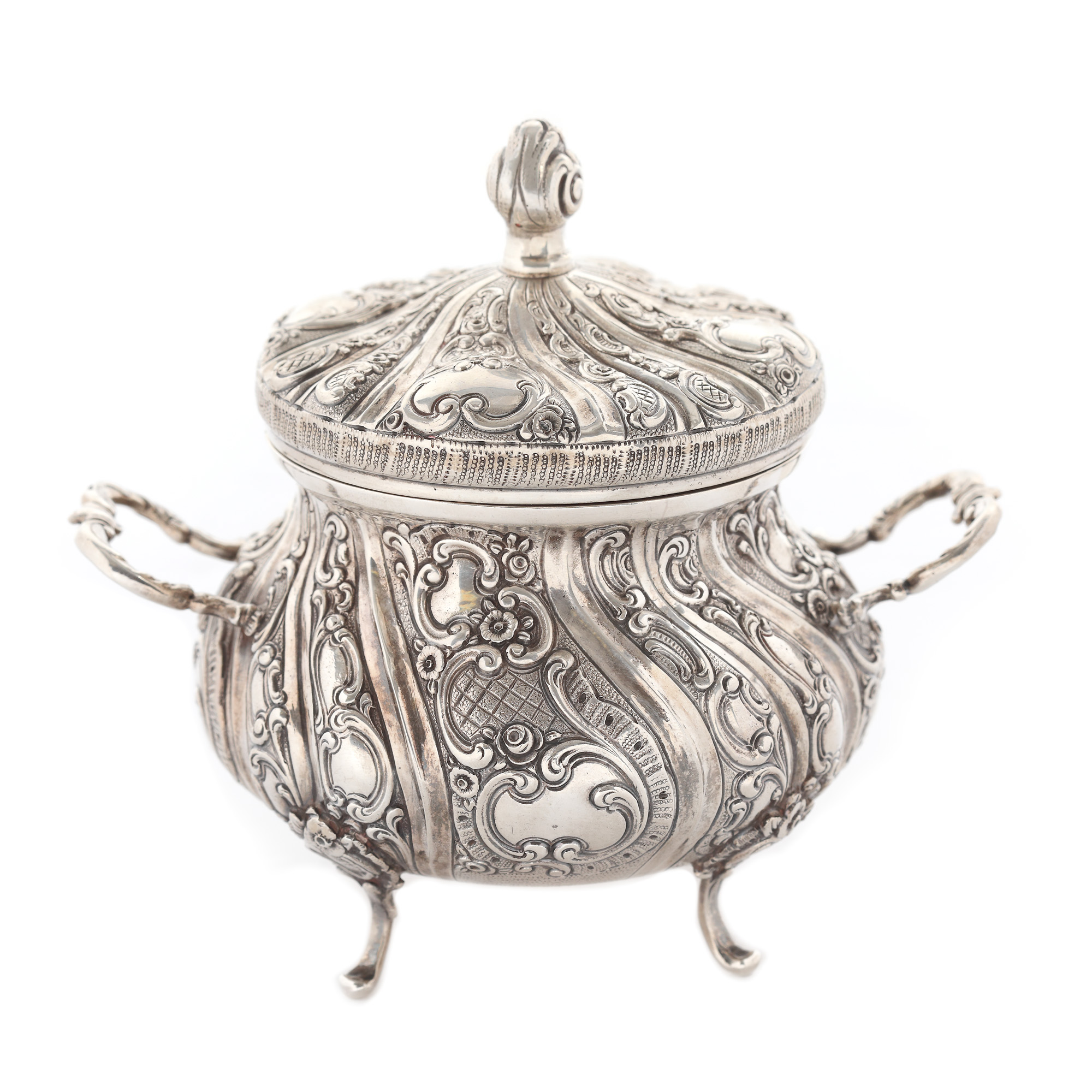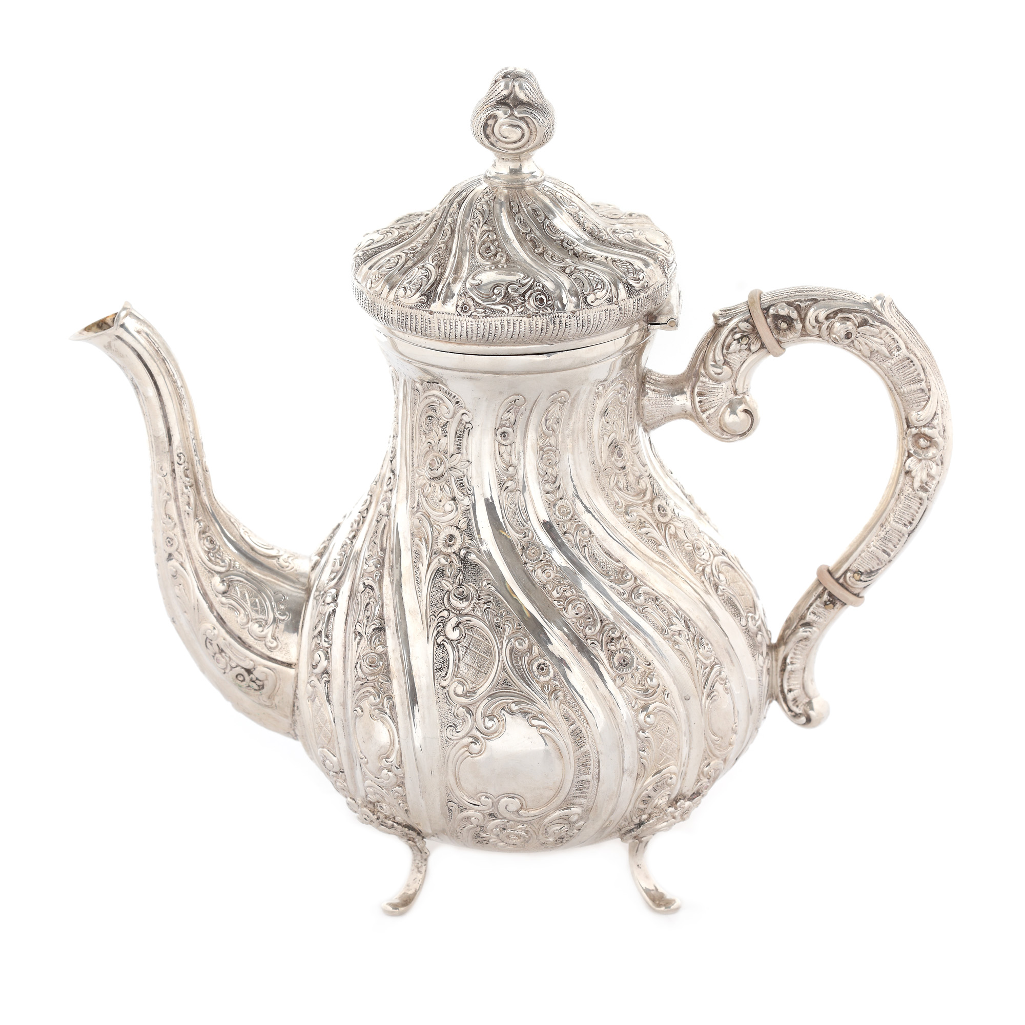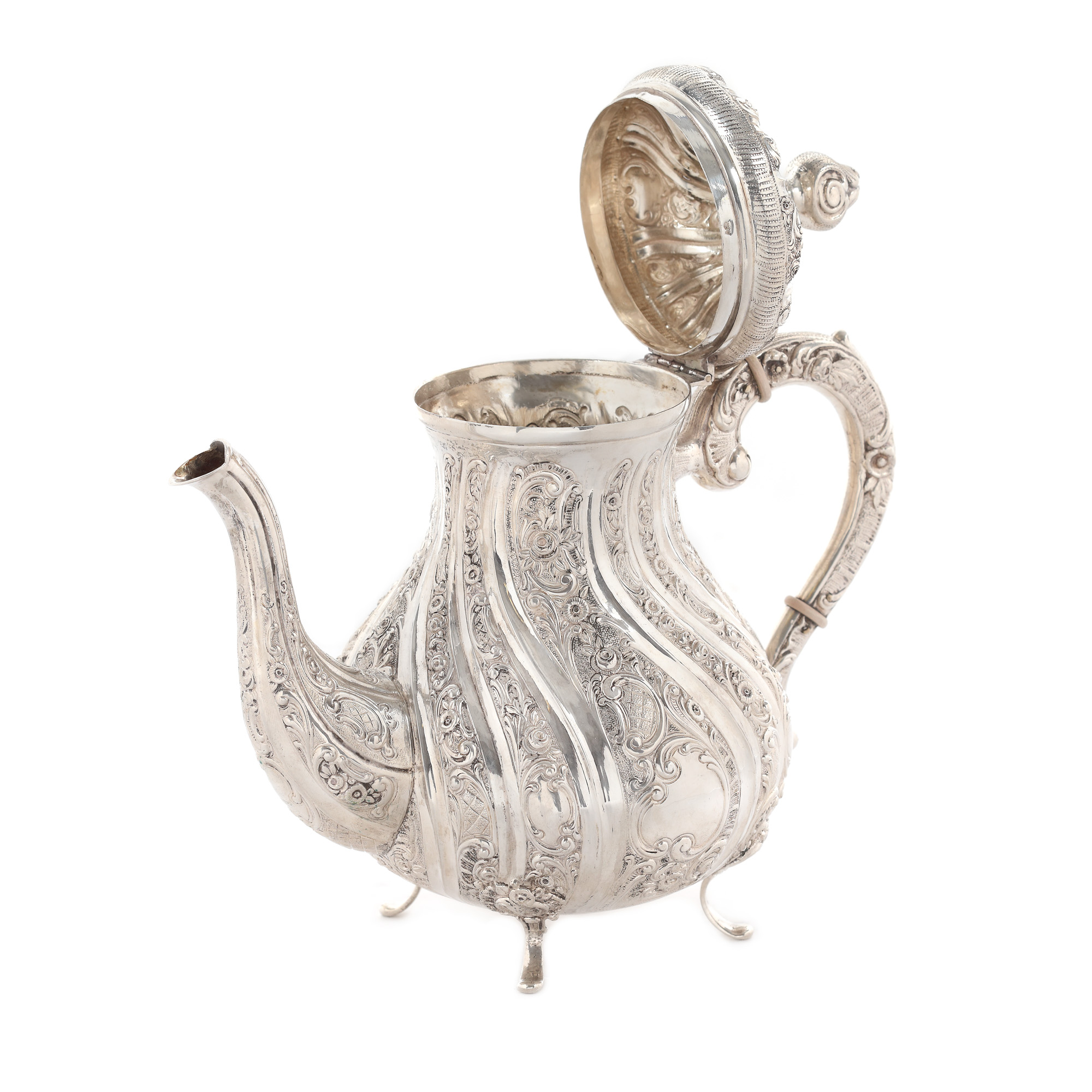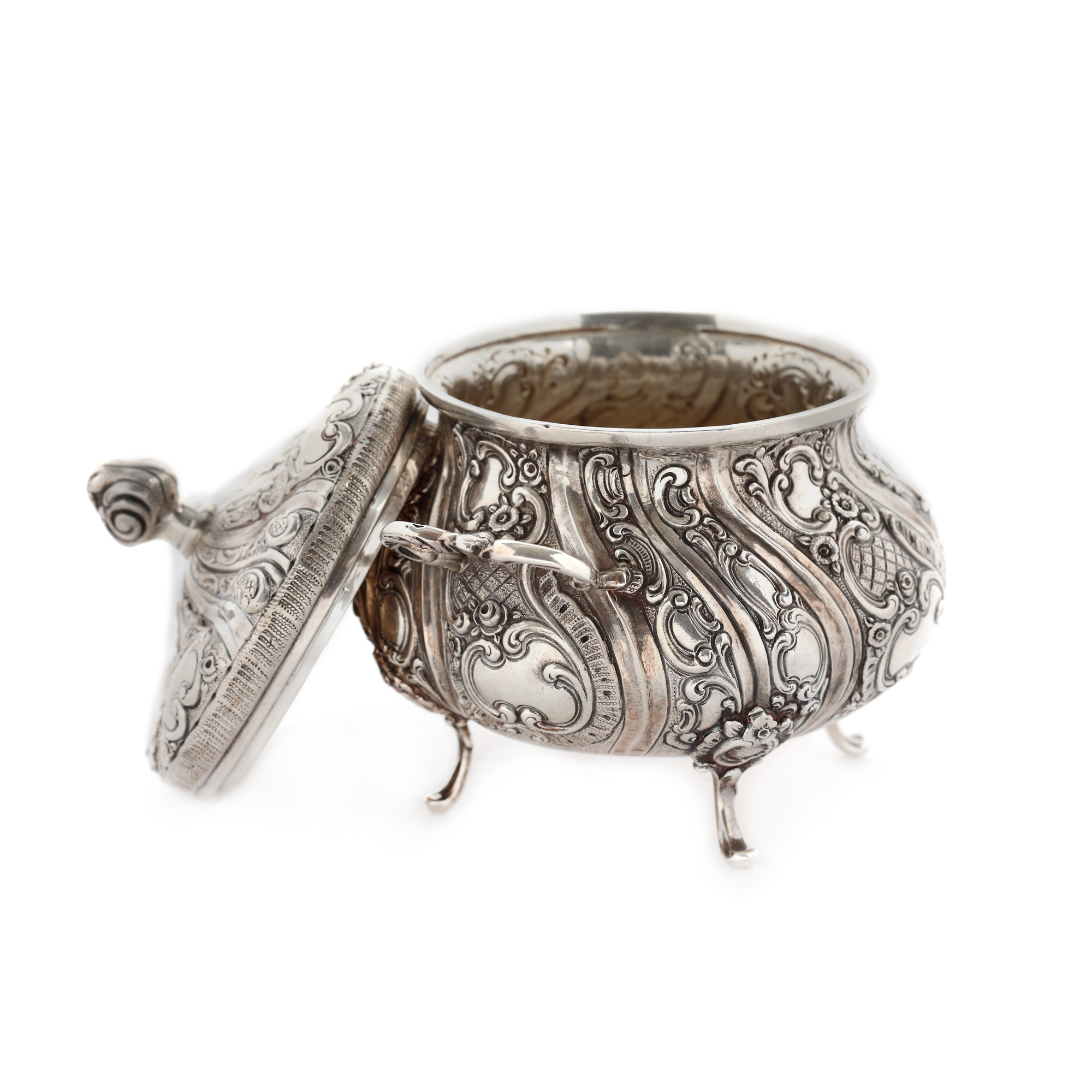 25. Set pentru ceai din argint, format din ceanic, zaharniță, letieră și tavă, prima jumătate a sec. XX